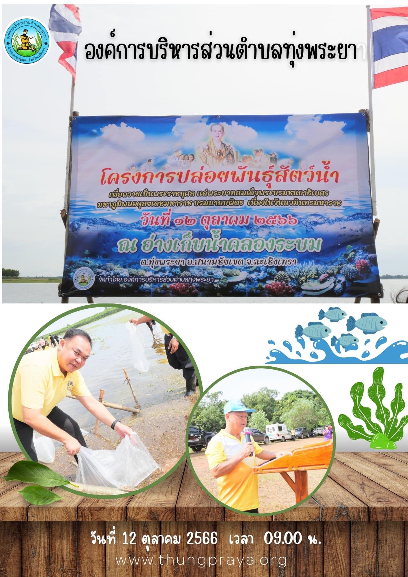 วันพฤหัสบดี ที่ 12 ตุลาคม 2566 เวลา 09.oo น. นายปรัชญา พิมพาแป้น นายอำเภอสนามชัยเขตเป็นประธานเปิดโครงการปล่อยพันธ์สัตว์น้ำ เพื่อถวายเป็นพระกุศลแด่พระบ...