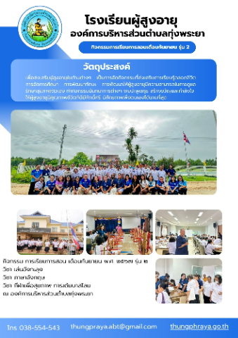 วันศุกร์ ที่ 13 กันยายน พ.ศ. 2567 โครงการโรงเรียนผู้สูงอายุตำบลทุ่งพระยา ประจำปีงบประมาณ พ.ศ.2567 กิจกรรม การเรียนการสอน เดือนกันยายน พ.ศ. 2567 รุ่น 2...