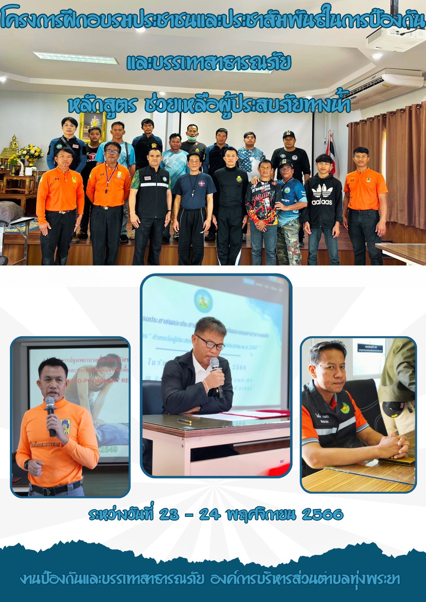 งานป้องกันและบรรเทาสาธารณะภัยสำนักปลัด องค์การบริหารส่วนตำบลทุ่งพระยา จัดกิจกรรมโครงการฝึกอบรมประชาชนและประชาสัมพันธ์ในการป้องกันและบรรเทาสาธารณภัย หล...