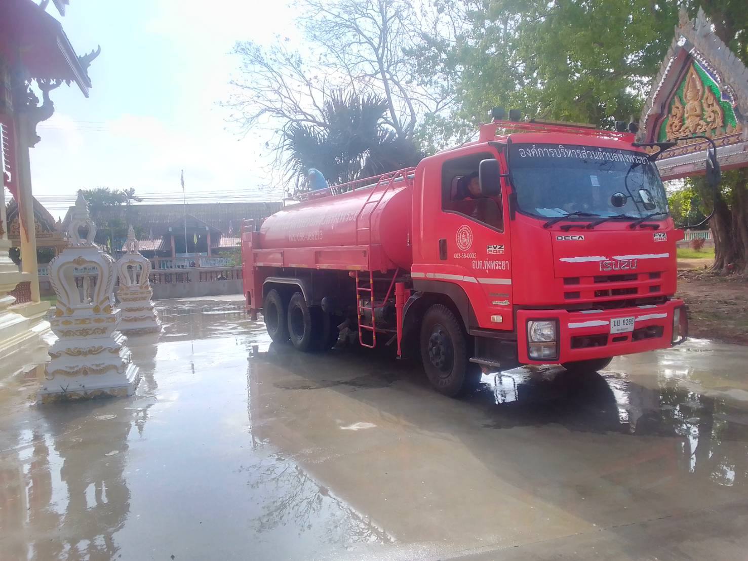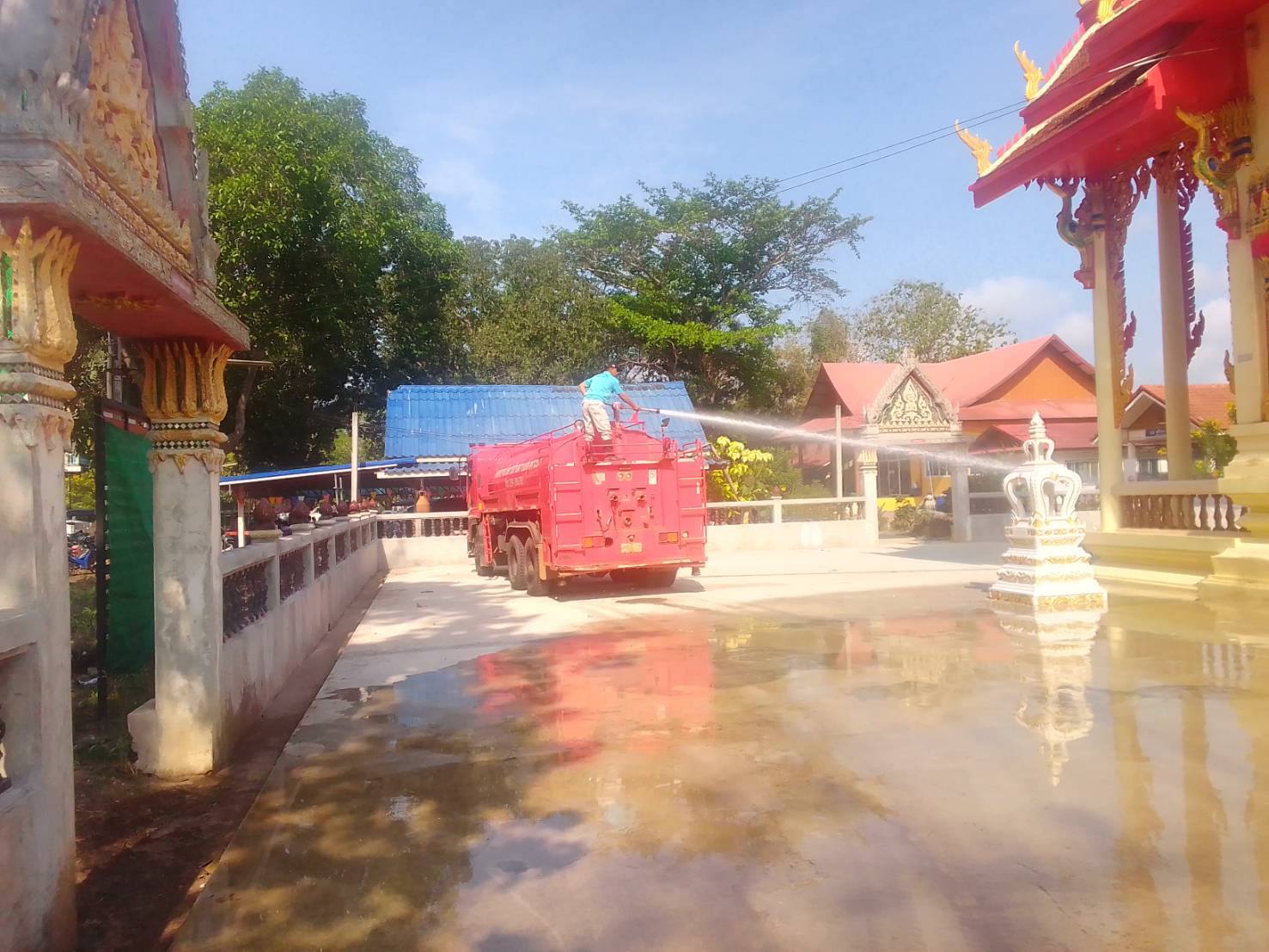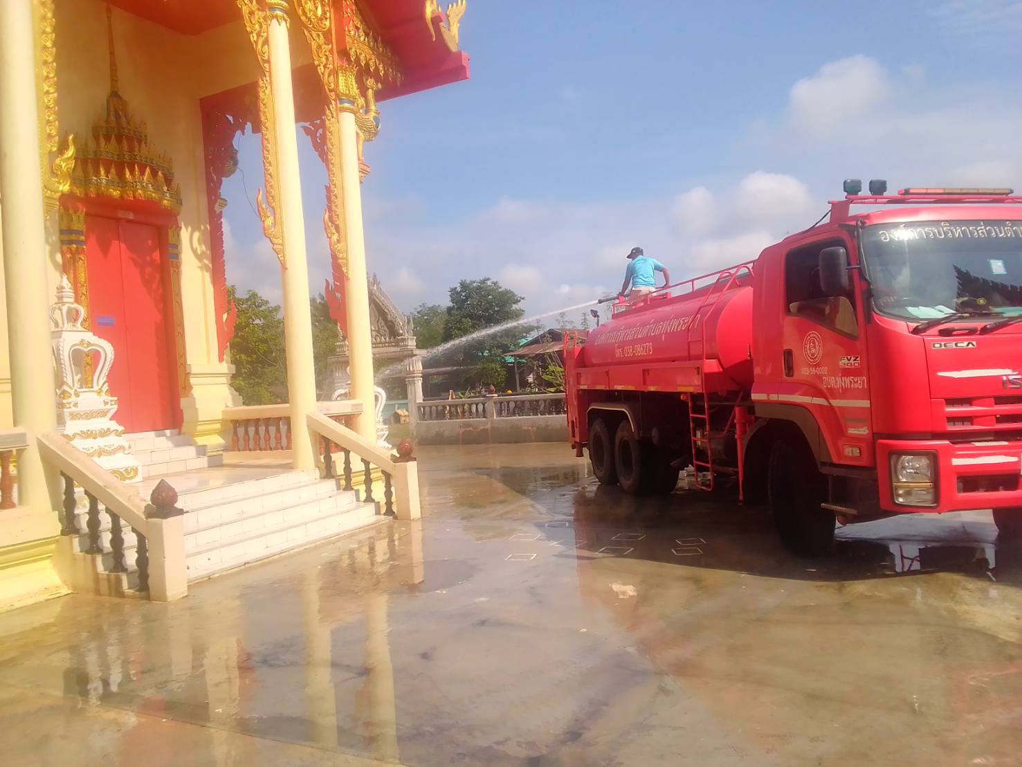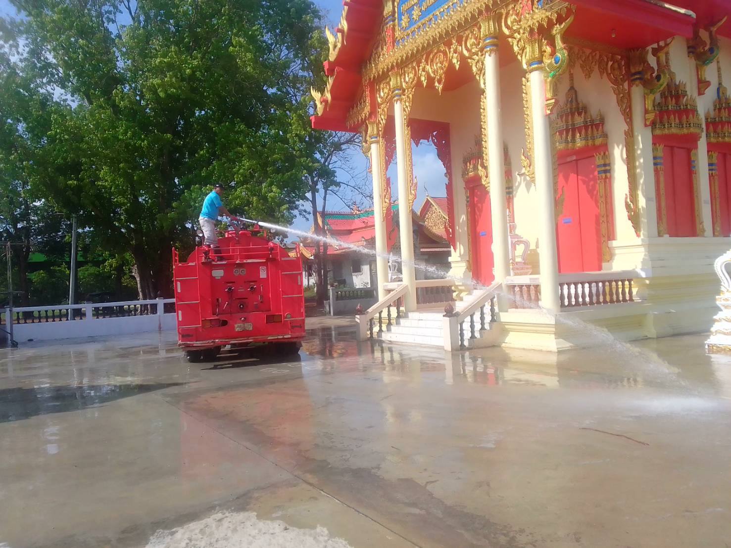 นำรถน้ำออกทำสาธารณะประโยชน์ล้างทำความสะอาดโบสถ์