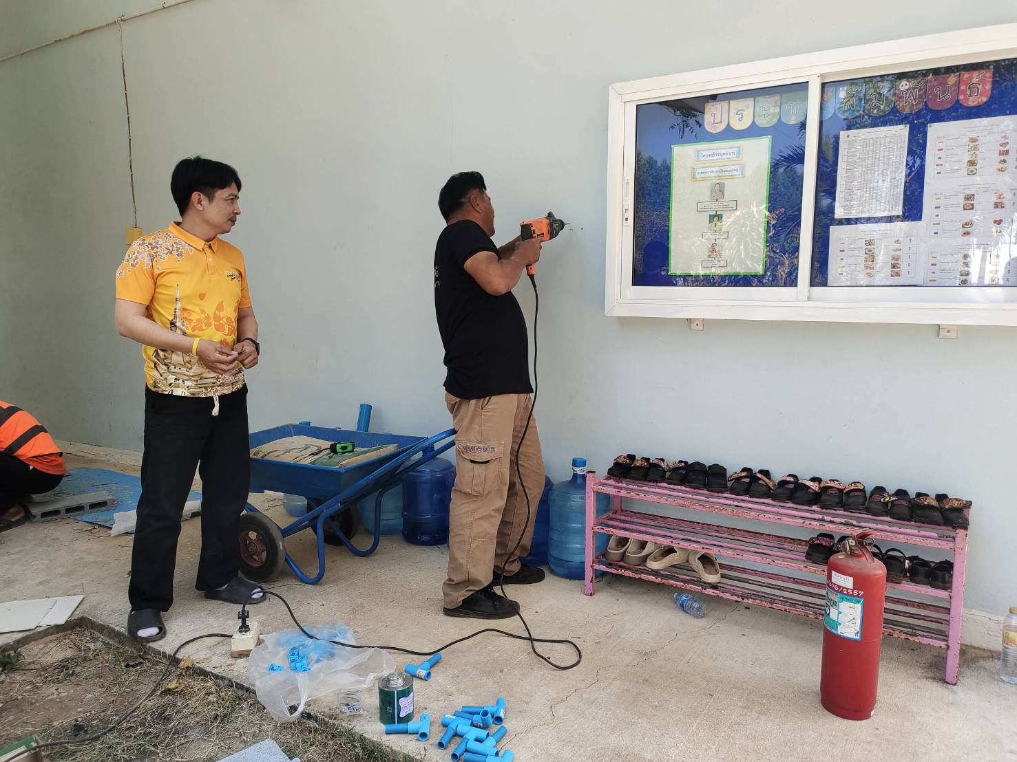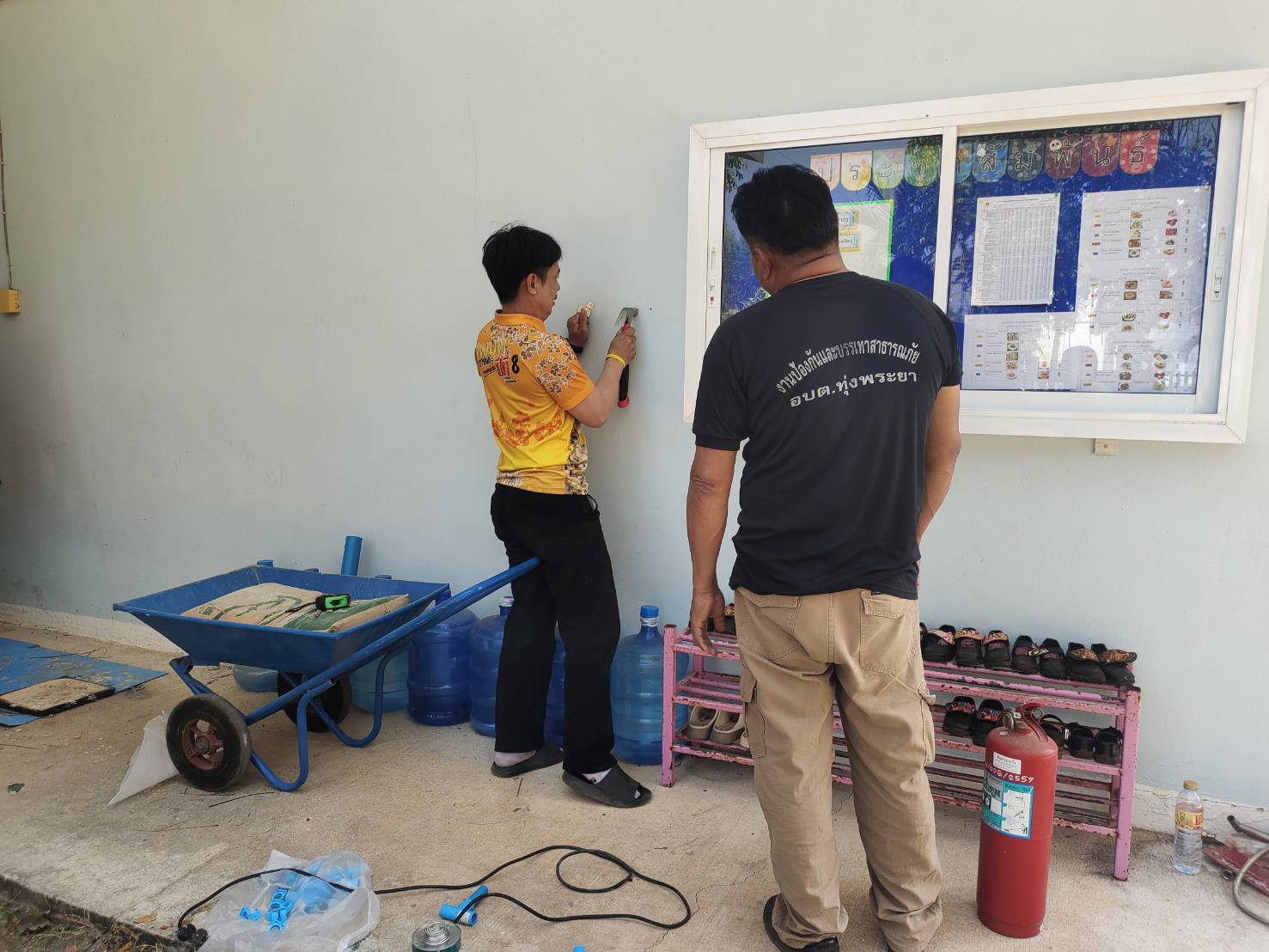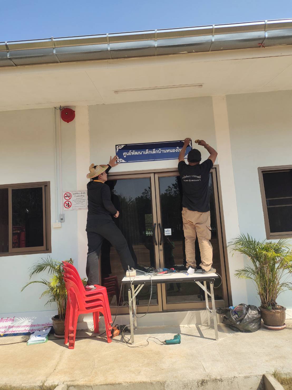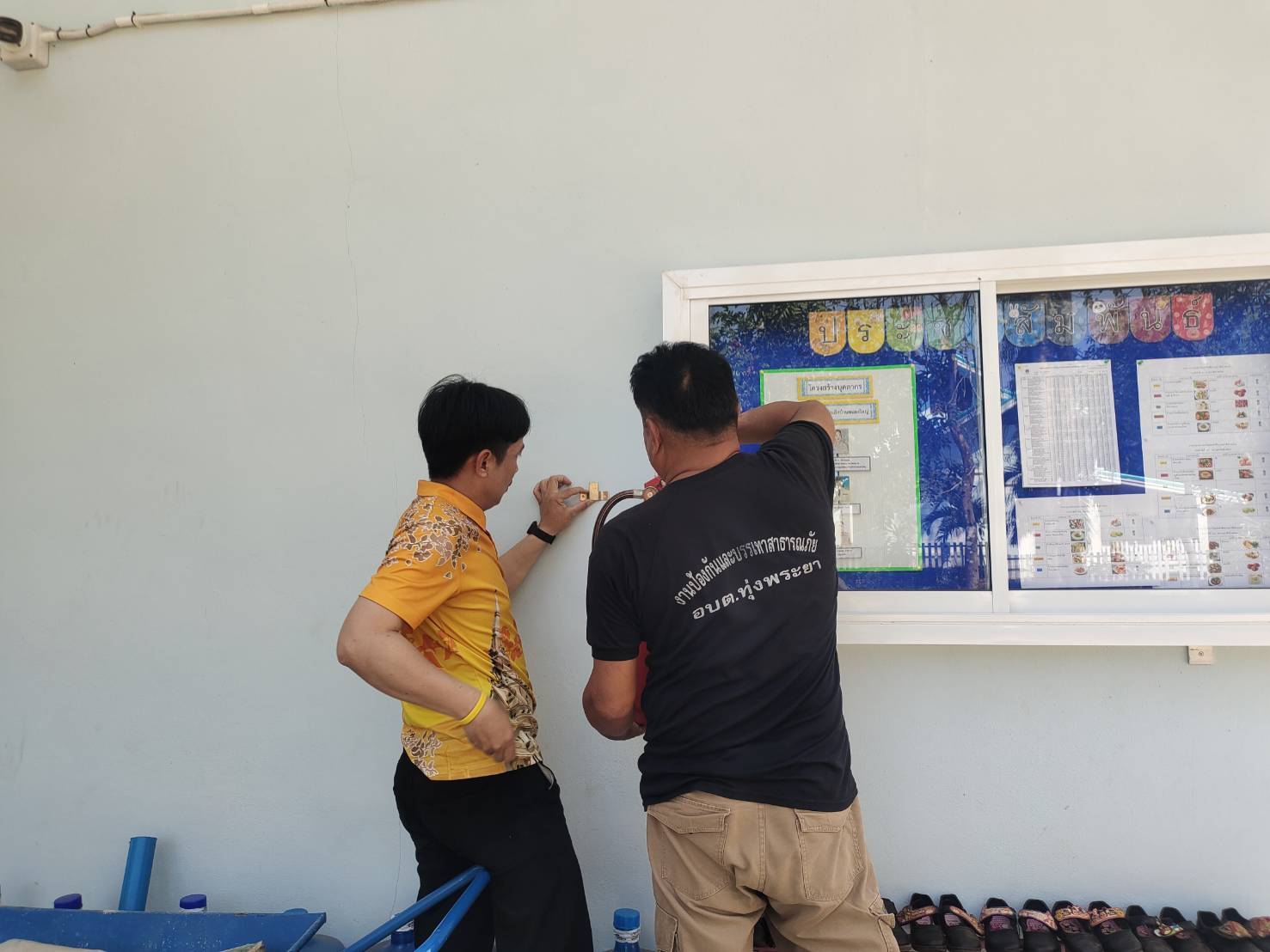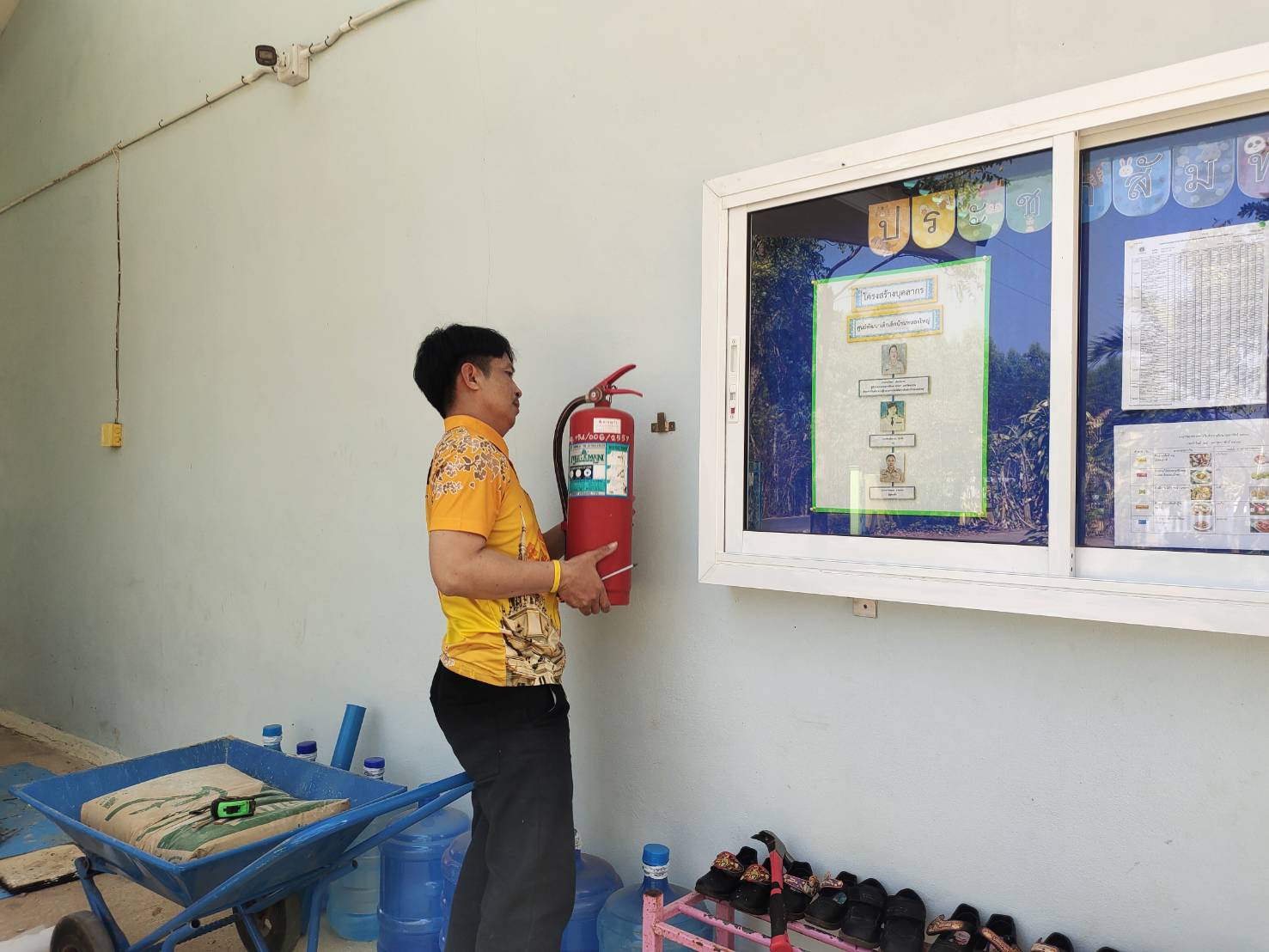 ติดตั้งถังดับเพลิง ศูนย์พัฒนาเด็กเล็กบ้านหนองใหญ่และติดป้ายศูนย์พัฒนาเด็กเล็กบ้านหนองใหญ่