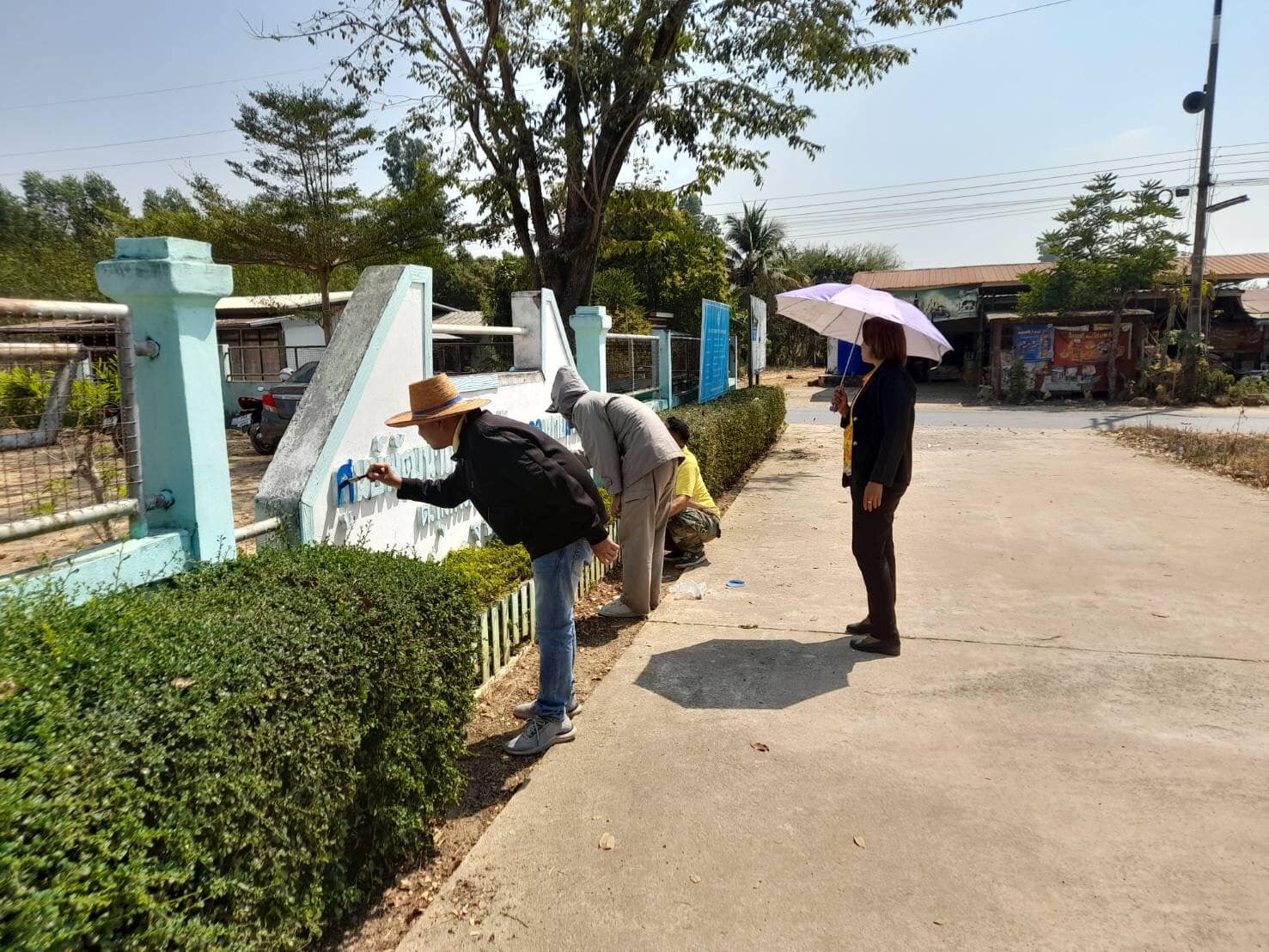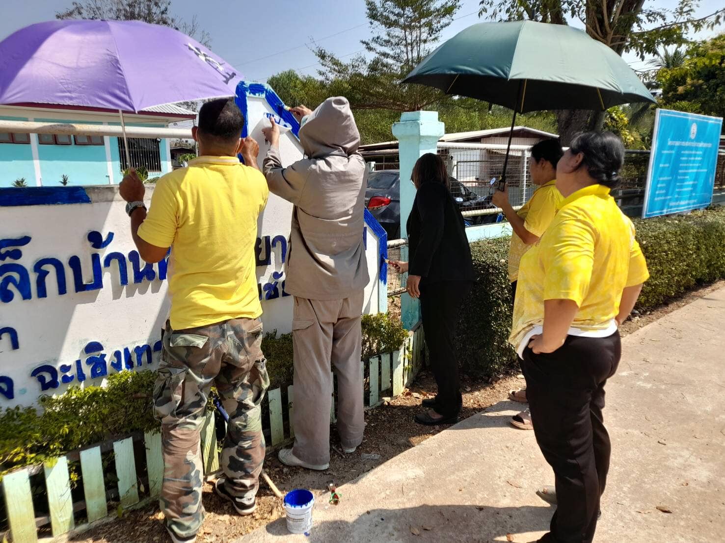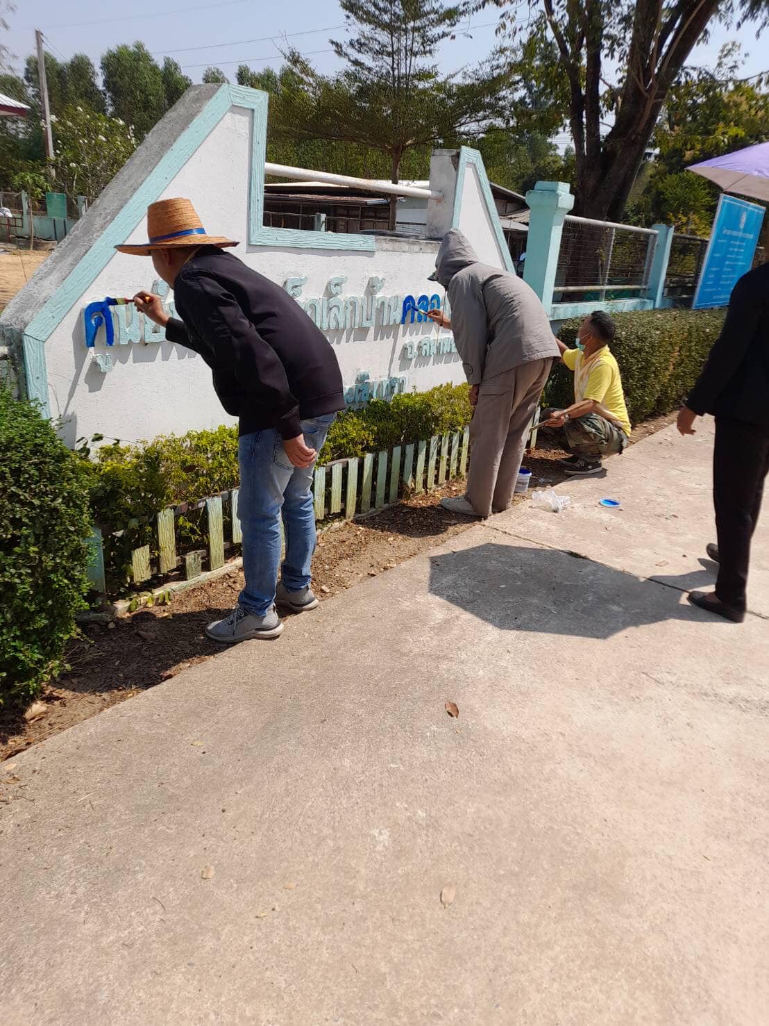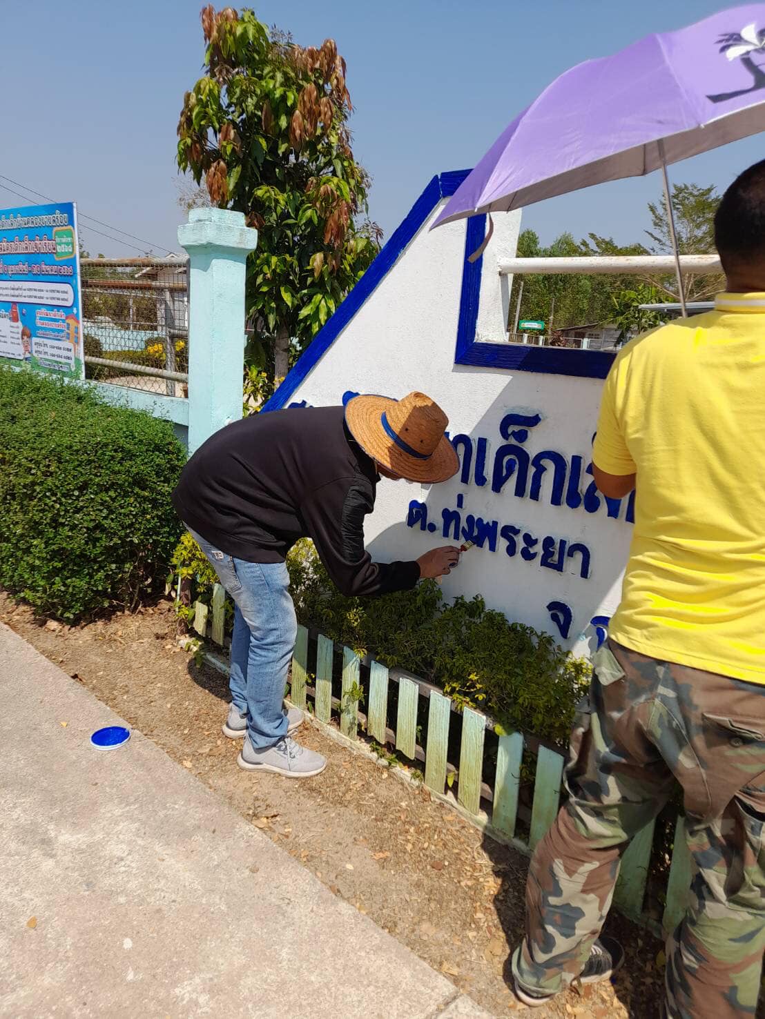 ทาสีป้ายหน้าศูนย์พัฒนาเด็กเล็กบ้านคลองยายสร้อย