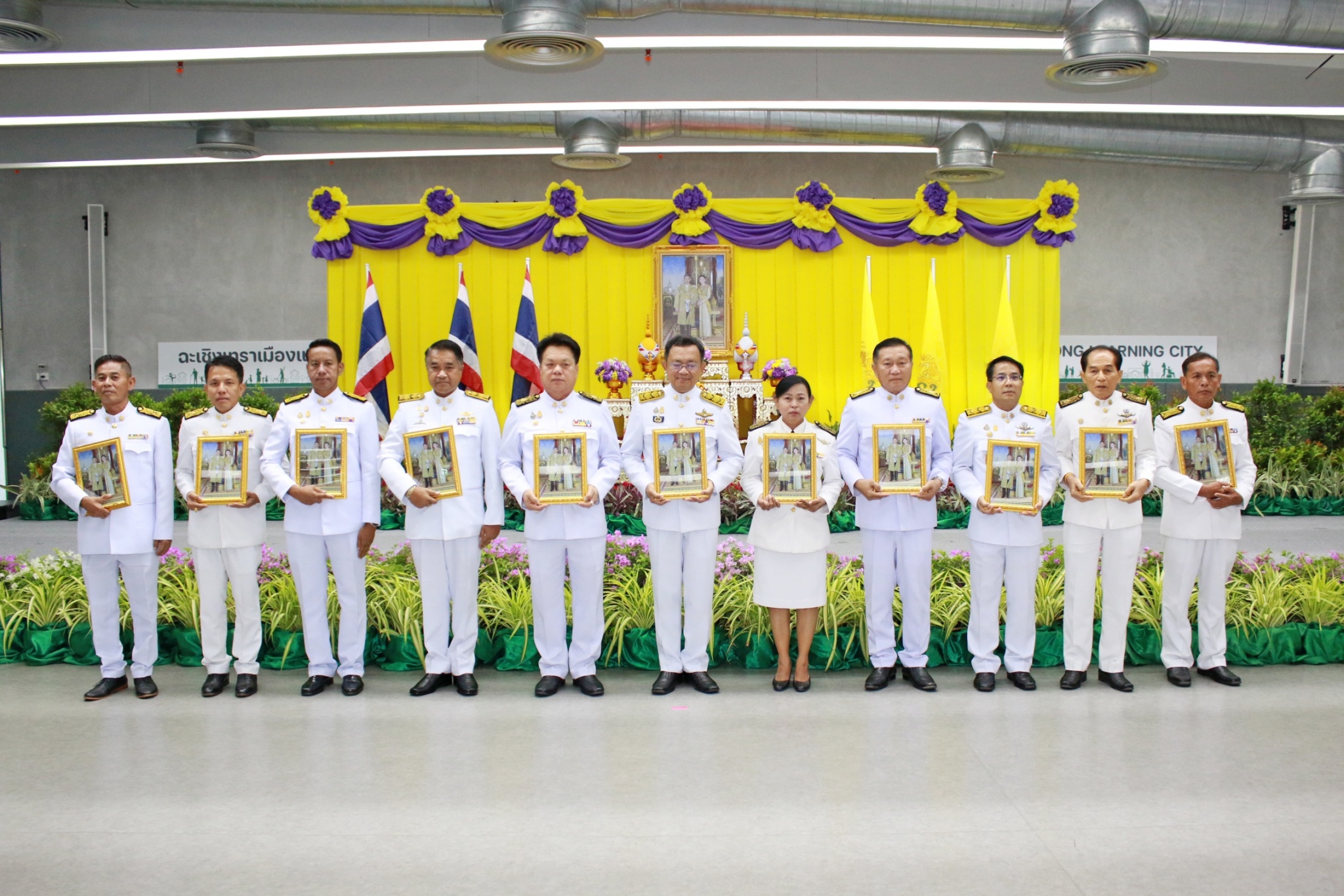 ร่วมพิธีพระราชทานพระบรมฉายาลักษณ์ พระบาทสมเด็จพระเจ้าอยู่หัว ที่ฉายกับสมเด็จพระนางเจ้าฯ พระบรมราชินี
