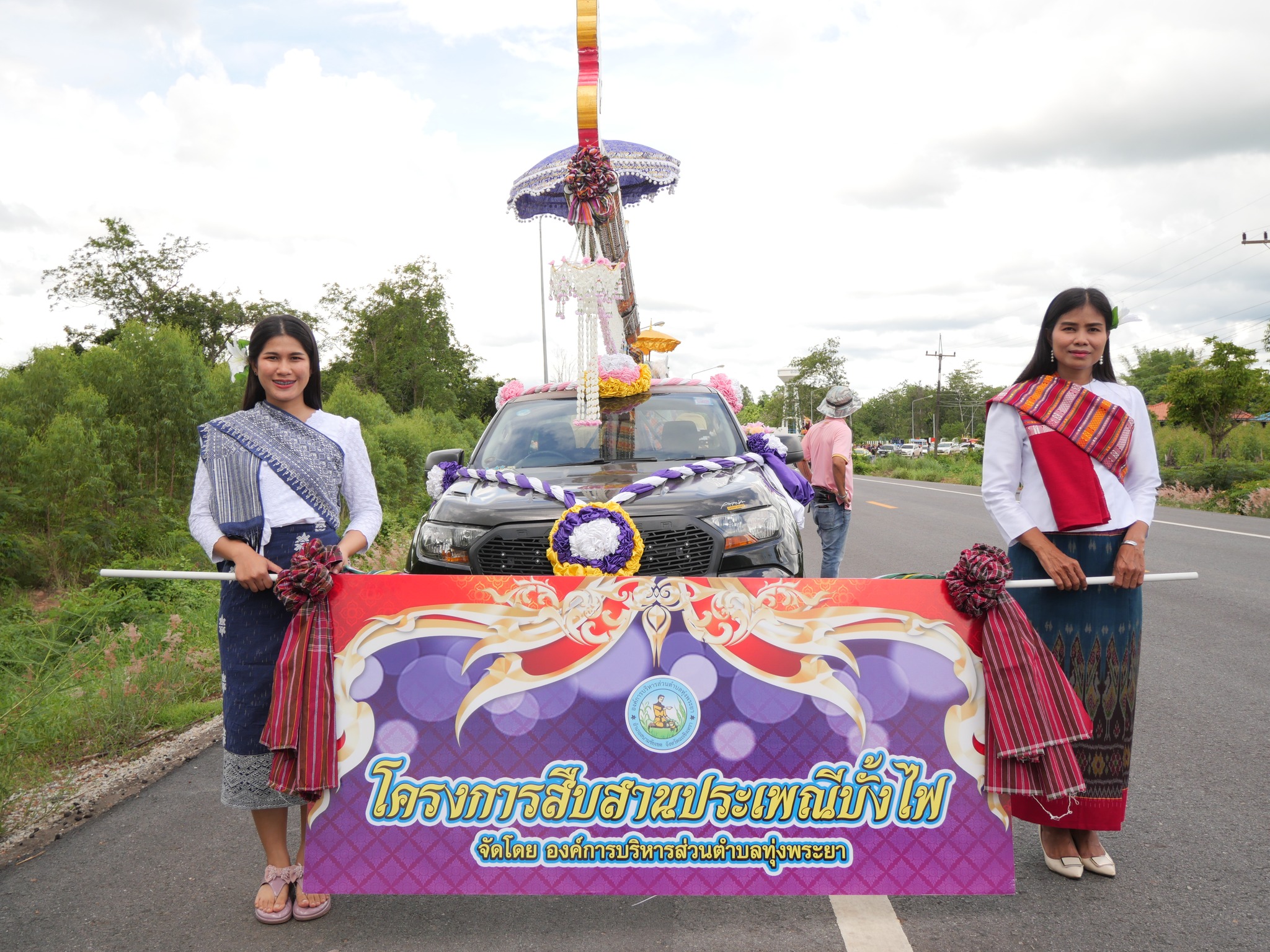 วันพฤหัสบดี ที่ ๒๓ พฤษภาคม ๒๕๖๗ เวลา ๑๖.๐๐ น. นายปรัชญา พิมพาแป้น นายอำเภอสนามชัยเขตเป็นประธานเปิด โครงการสืบสานประเพณีบุญบั้งไฟ ประจำปี ๒๕๖๗ พร้อมด้วย นายภูธร ศรีสมบูรณ์สกุล นายก อบต.ทุ่งพระยา นายรังสรรค์ เป็นรัมย์ รองนายก อบต.ทุ่งพระยา นายใจยิ่ง งามขำ รองนายก อบต.ทุ่งพระยา กำนัน ผู้ใหญ่บ้าน ส.อบต.ข้าราชการ พนักงาน เจ้าหน้าที่องค์การบริหารส่วนตำบลทุ่งพระยา และประชาชนในพื้นที่ ตำบลทุ่งพระยา เข้าร่วมกิจกรรม