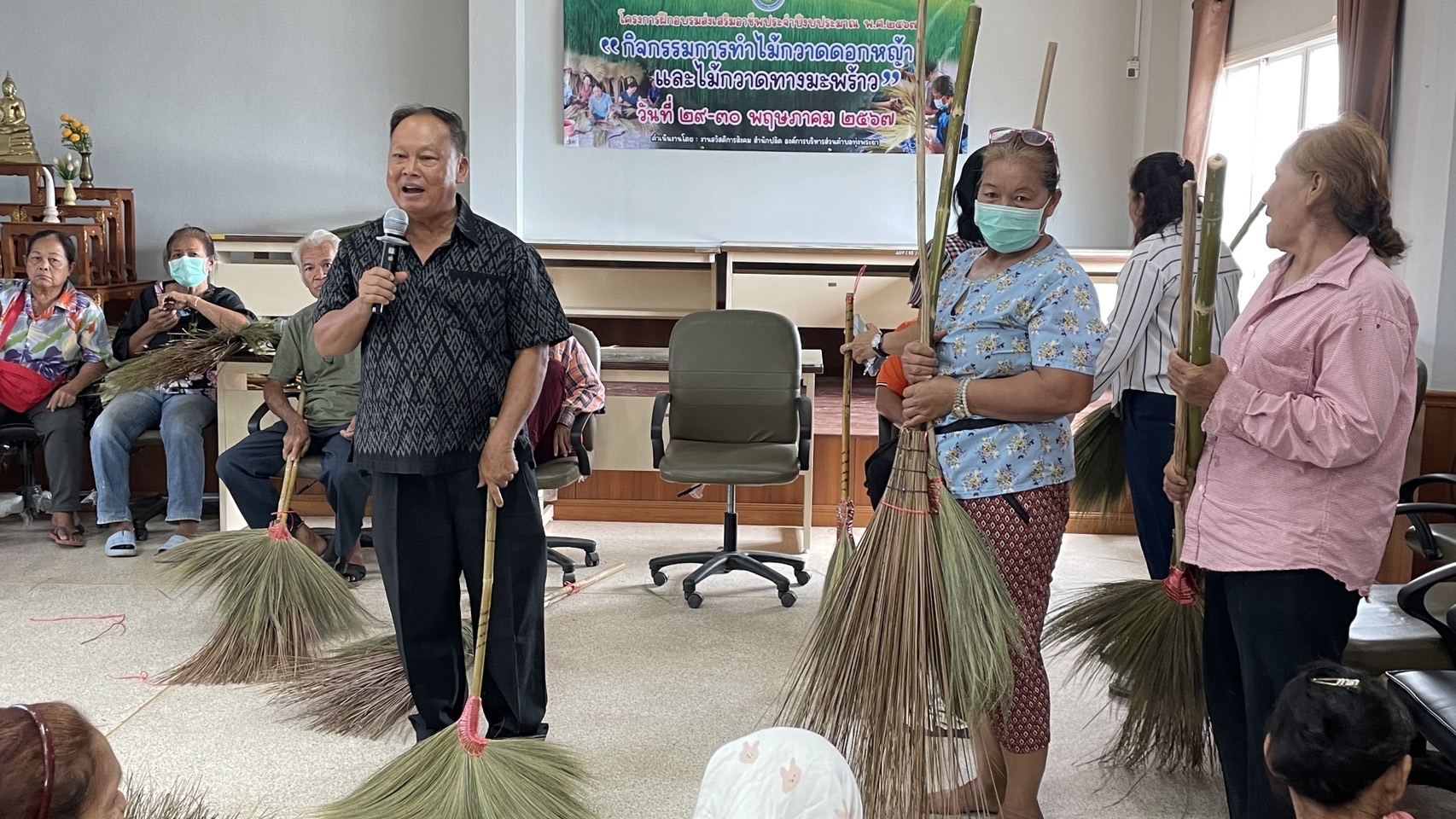 โครงการฝึกอบรมส่งเสริมอาชีพ ประจำปีงบประมาณ พ.ศ.๒๕๖๗ “กิจกรรมการทำไม้กวาดดอกหญ้าและไม้กวาดทางมะพร้าว”