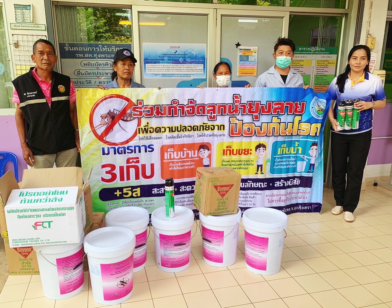 มอบทรายอะเบท น้ำยาเคมี และสเปย์พ่นกำจัดกันยุง