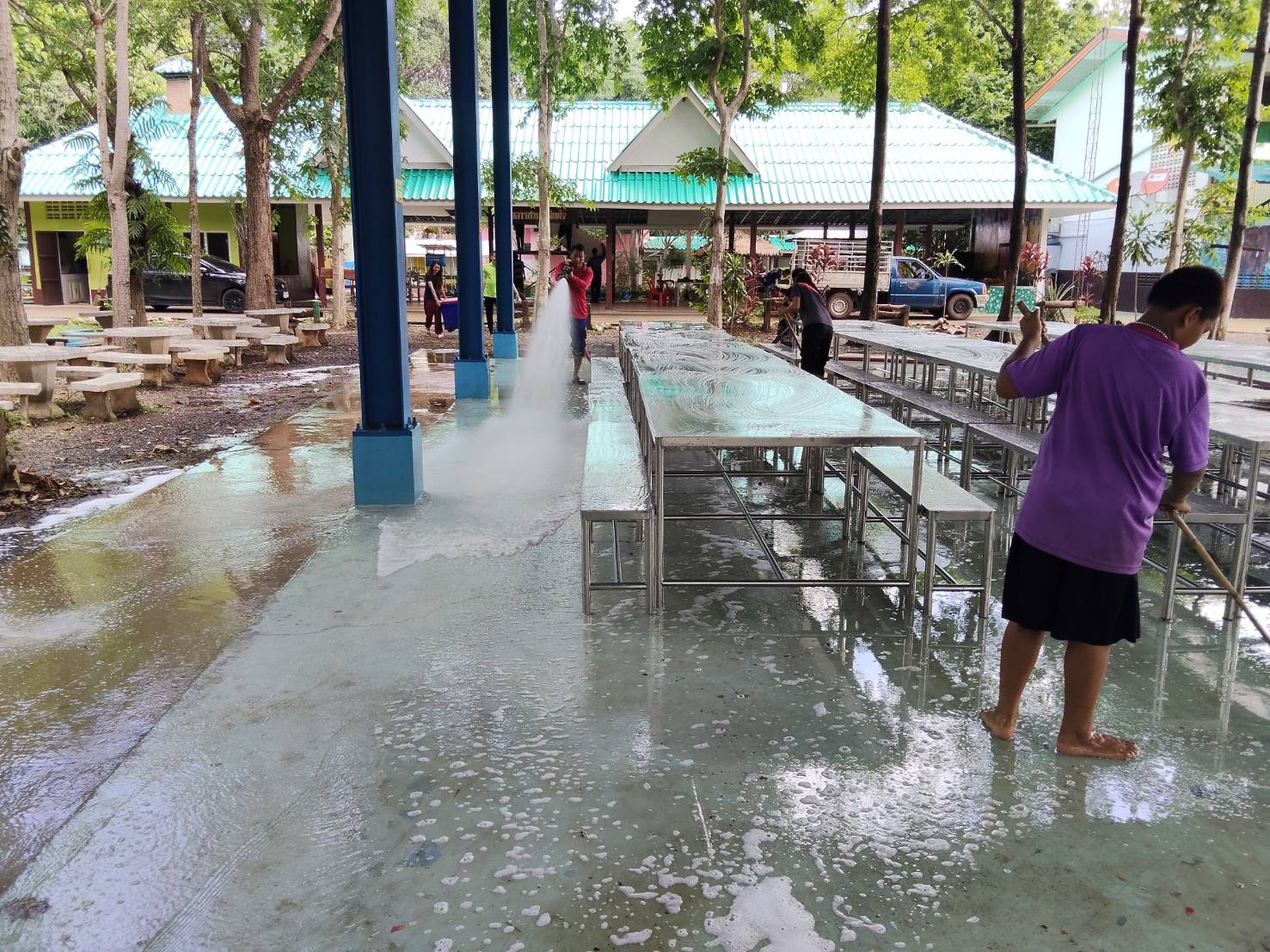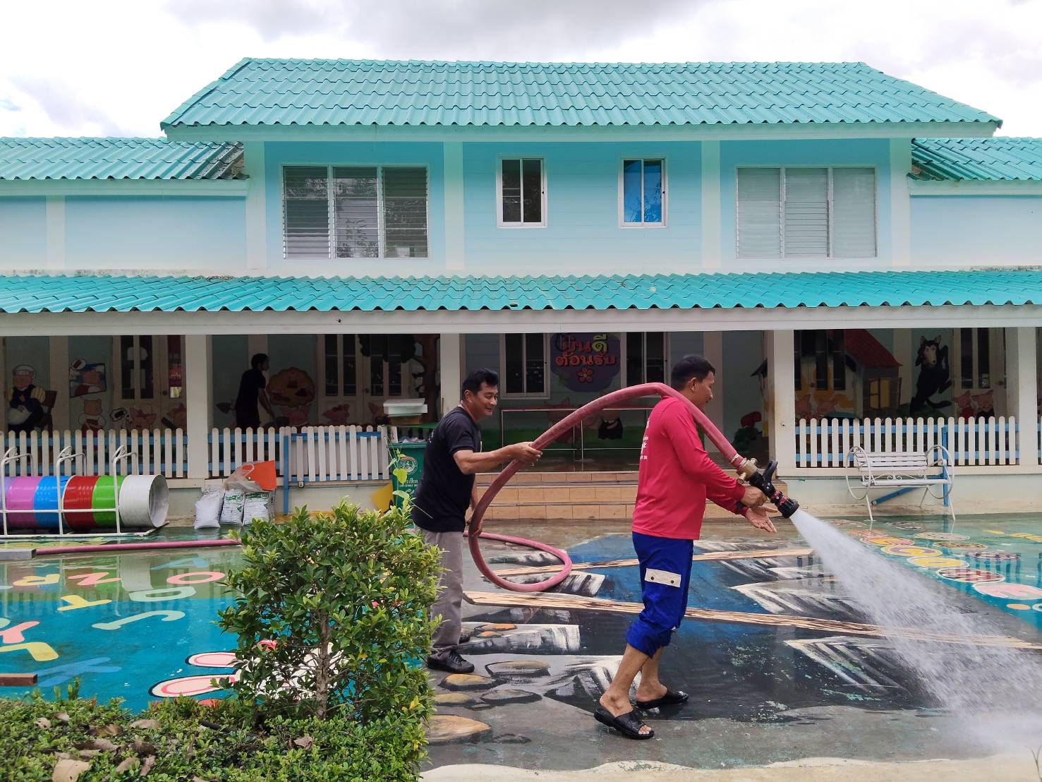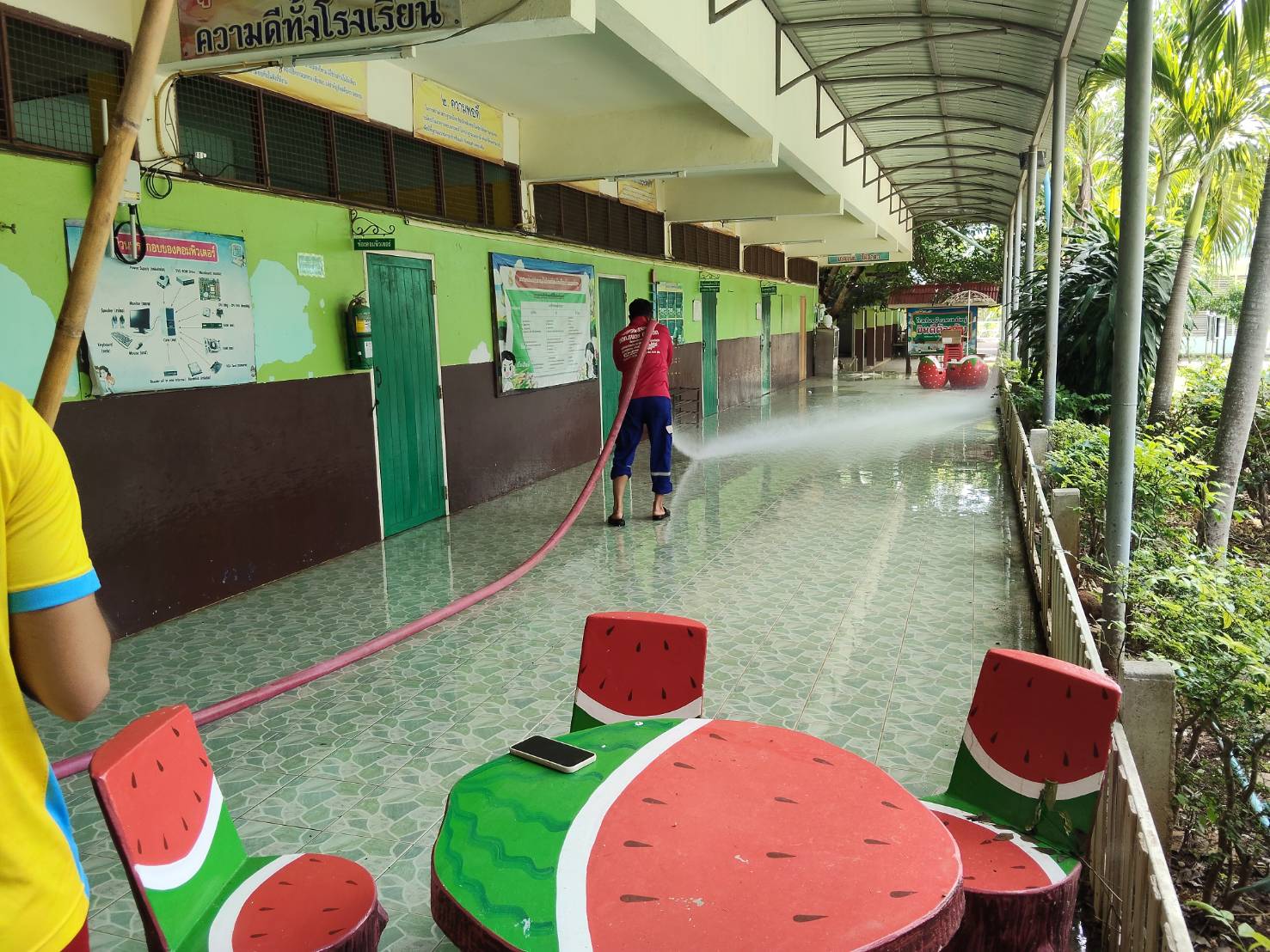 นำรถน้ำออกสาธารณประโยชน์ล้างโดมและอาคารเรียนโรงเรียนบ้านหนองใหญ่ และโรงเรียนบ้านคลองยายสร้อย