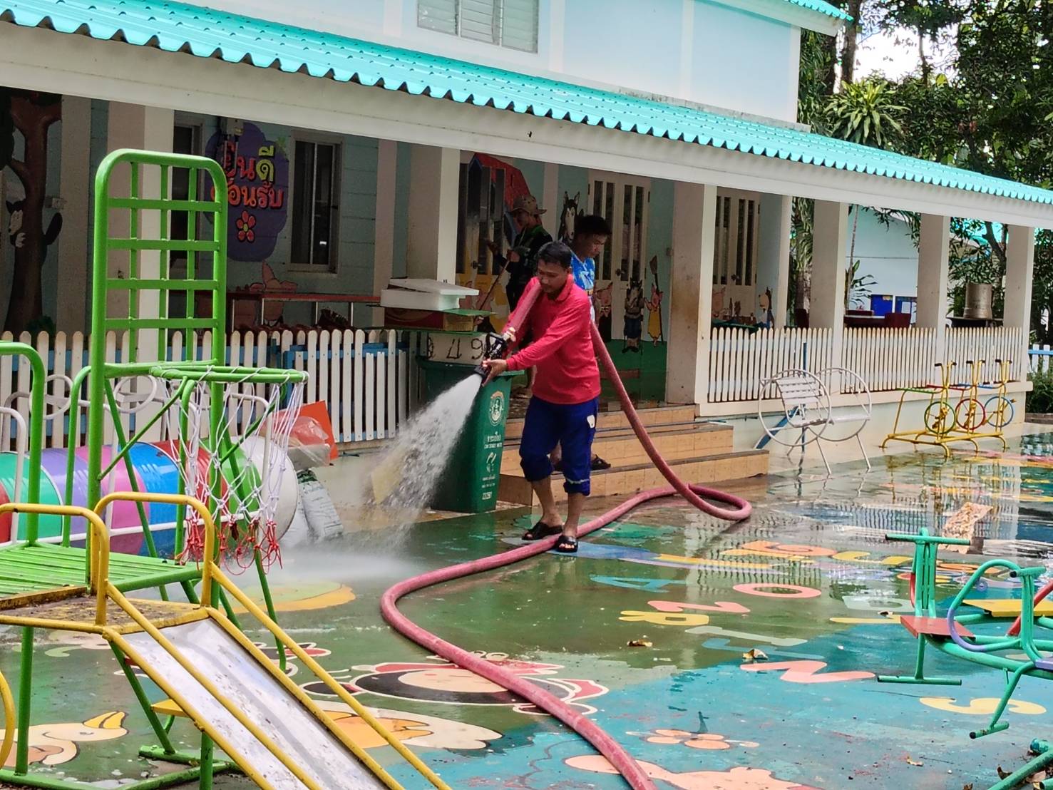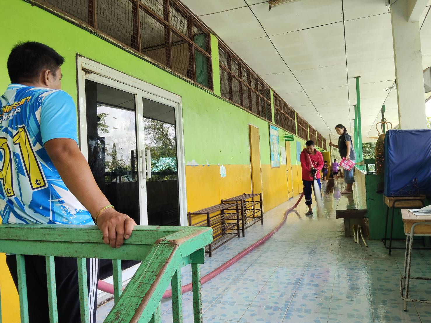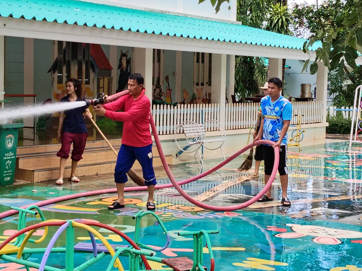 นำรถน้ำออกสาธารณประโยชน์ล้างโดมและอาคารเรียนโรงเรียนบ้านหนองใหญ่ และโรงเรียนบ้านคลองยายสร้อย