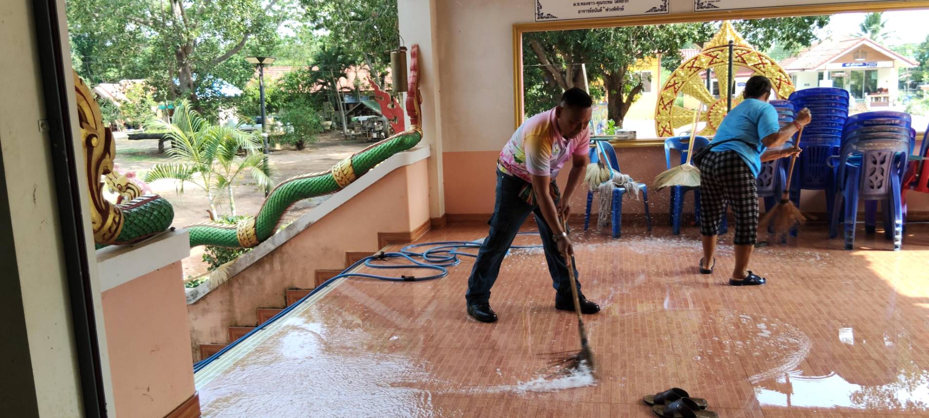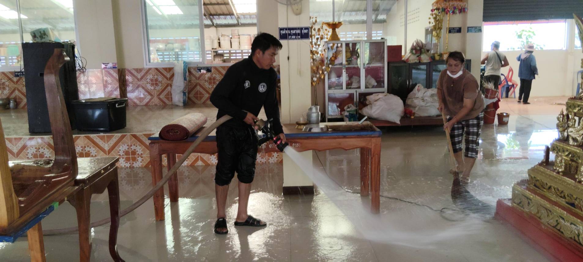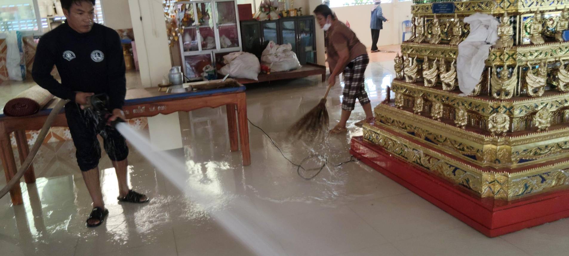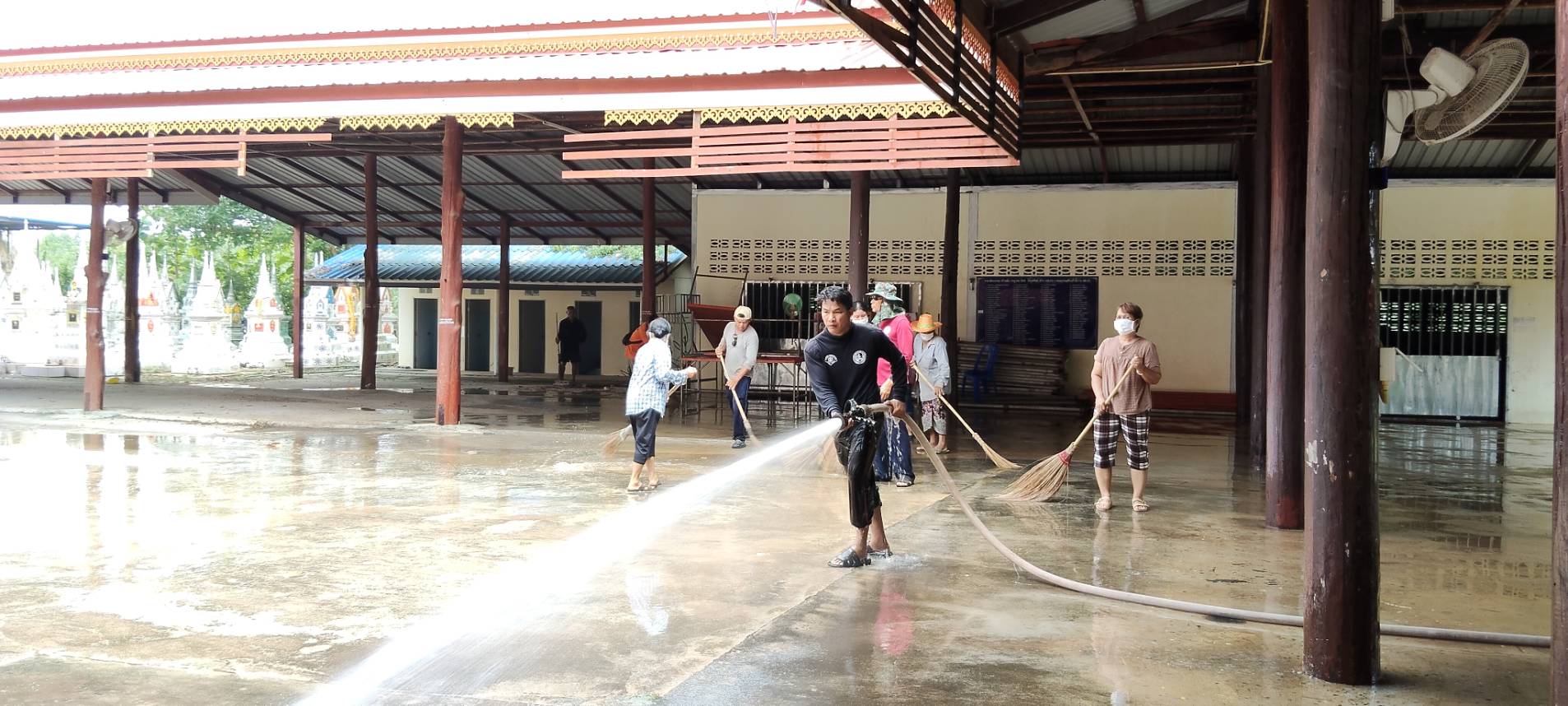 นำรถน้ำออกส่งน้ำอุปโภคและออกทำสาธารณะประโยชน์ ล้างศาลา ล้างโบสถ์ล้างหน้าเมรุ