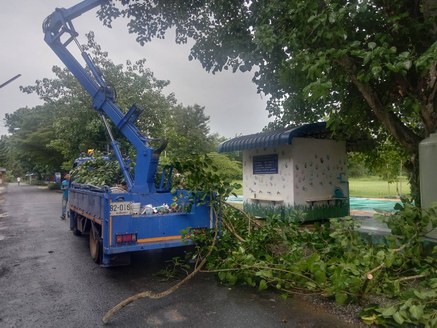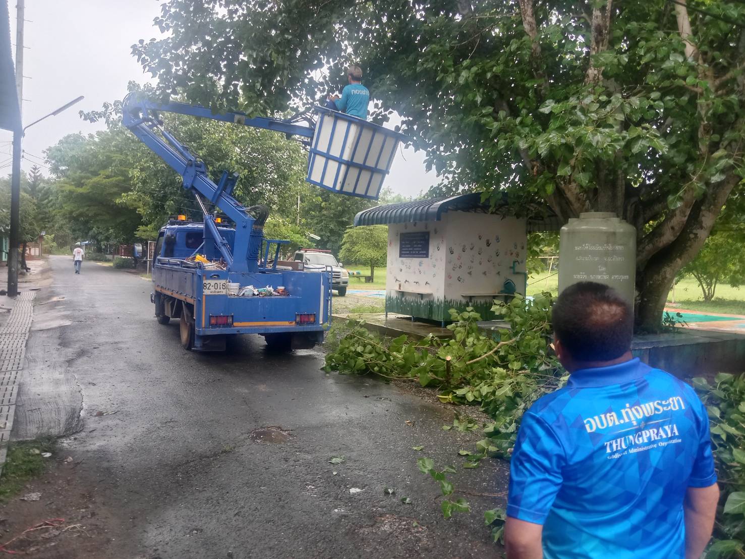 ดำเนินการตัดหญ้า พร้อมแต่งกิ่งต้นทองอุไร
