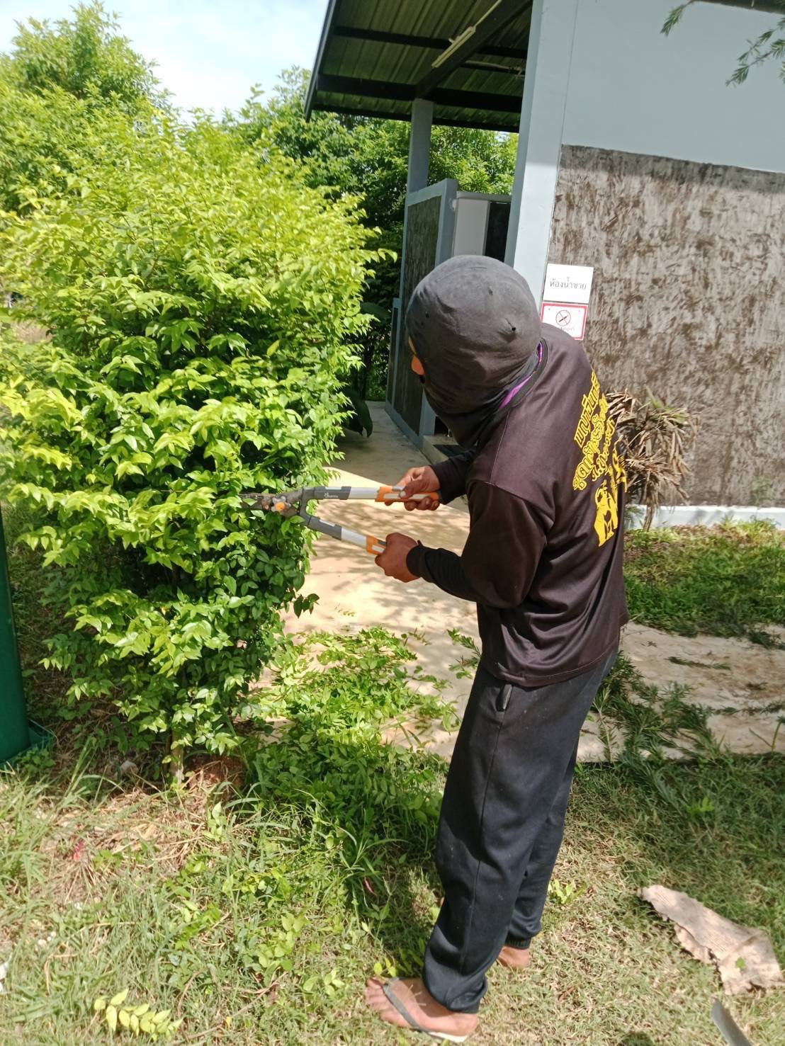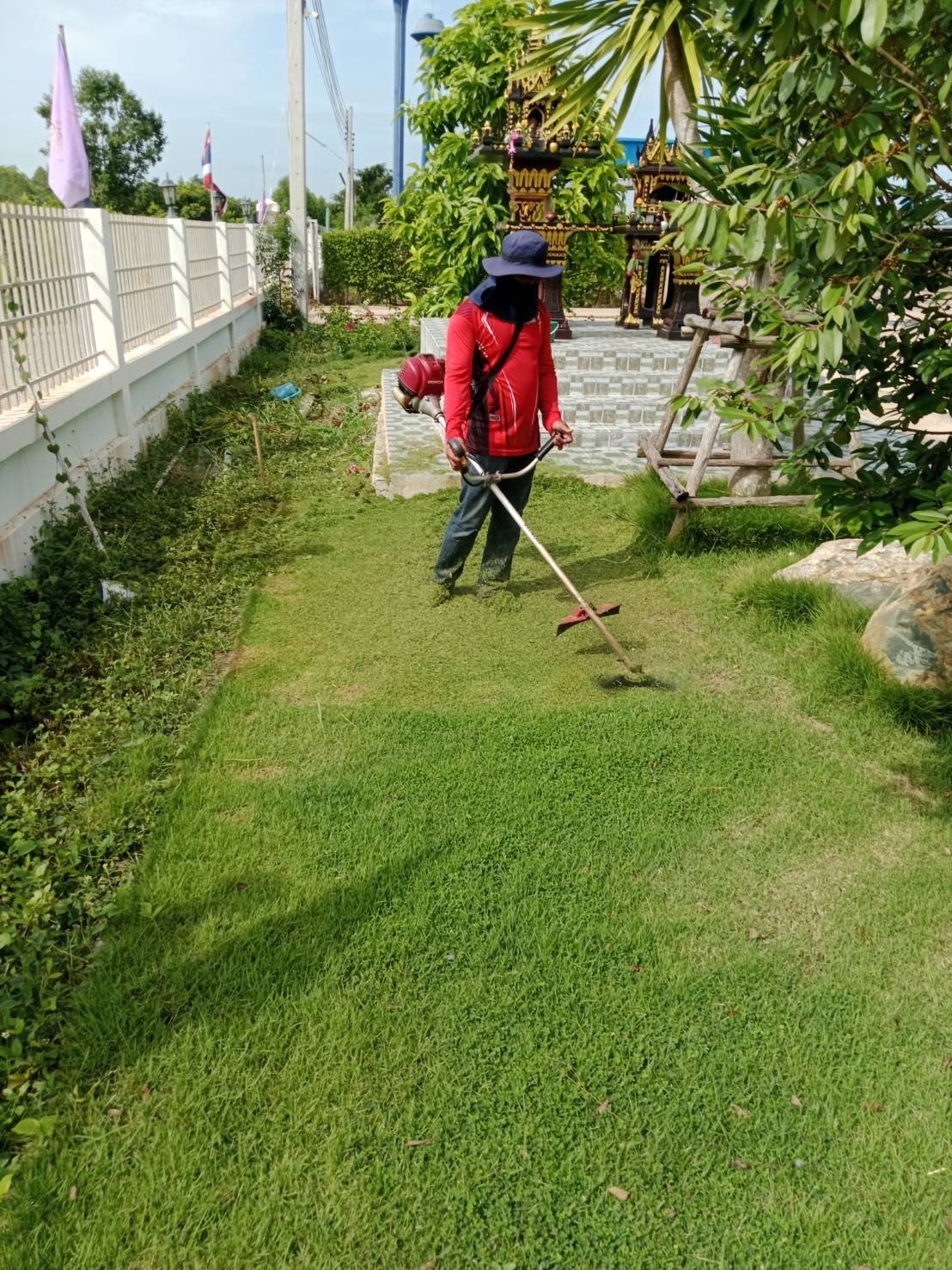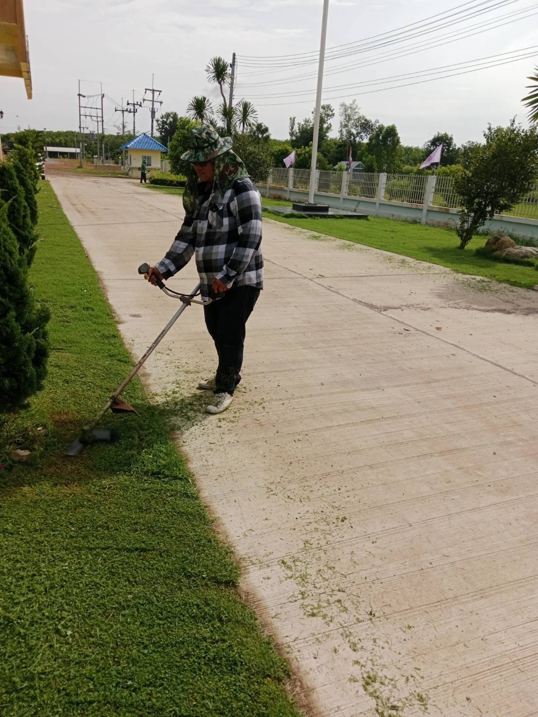 ตัดหญ้าและทำความสะอาดรอบบริเวณสำนักงานใหม่