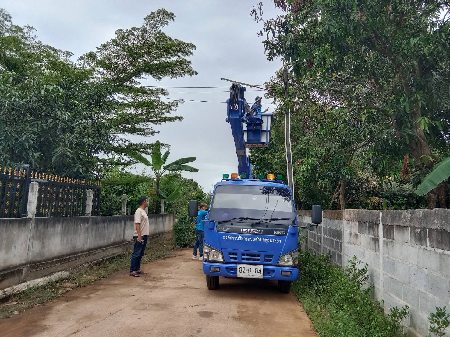 ดำเนินการซ่อมแซมระบบไฟฟ้าสาธารณะในหมู่ที่ ๔ บ้านคลองอุดม และหมู่ ๙ บ้านเขาจันทร์