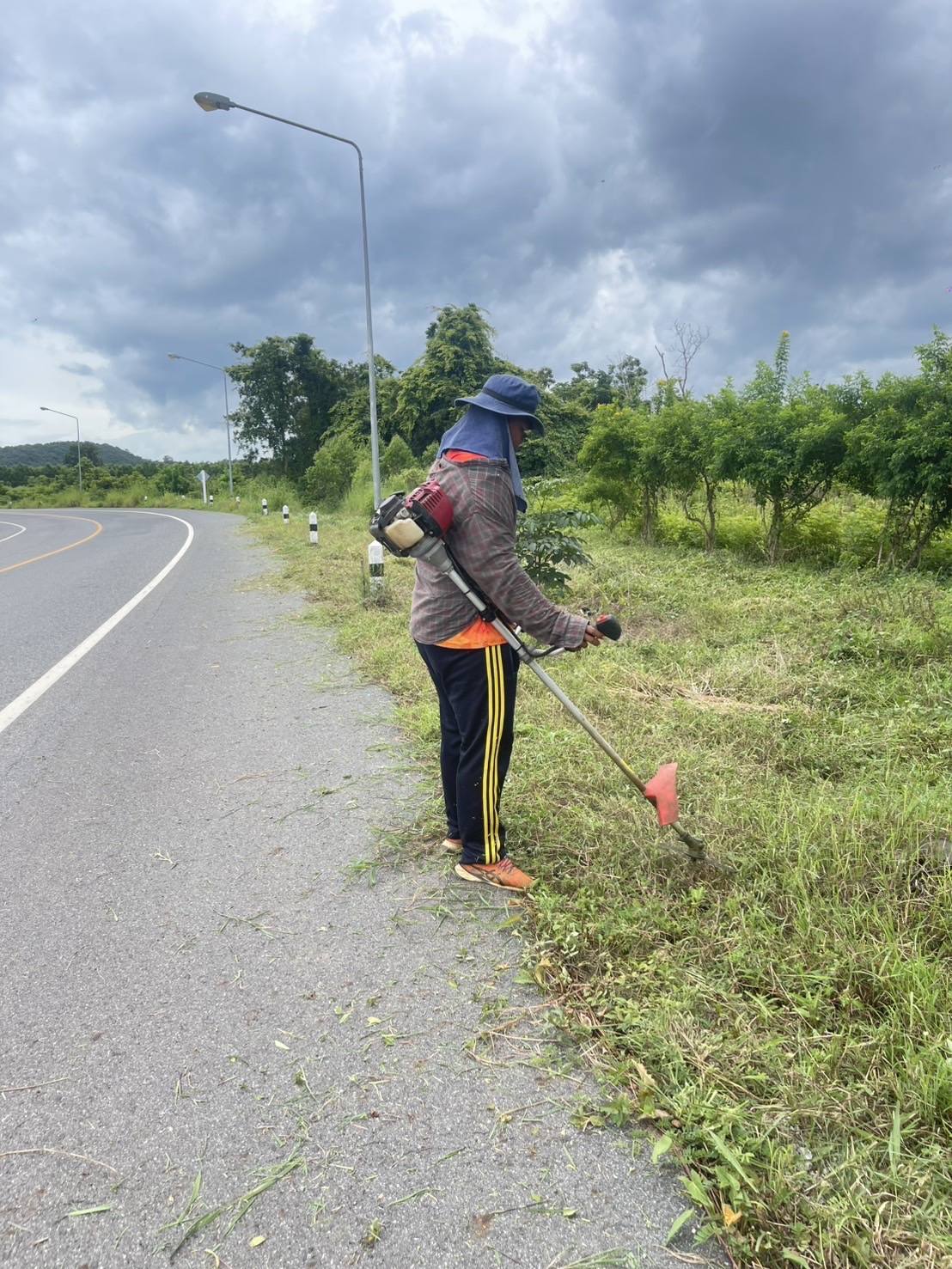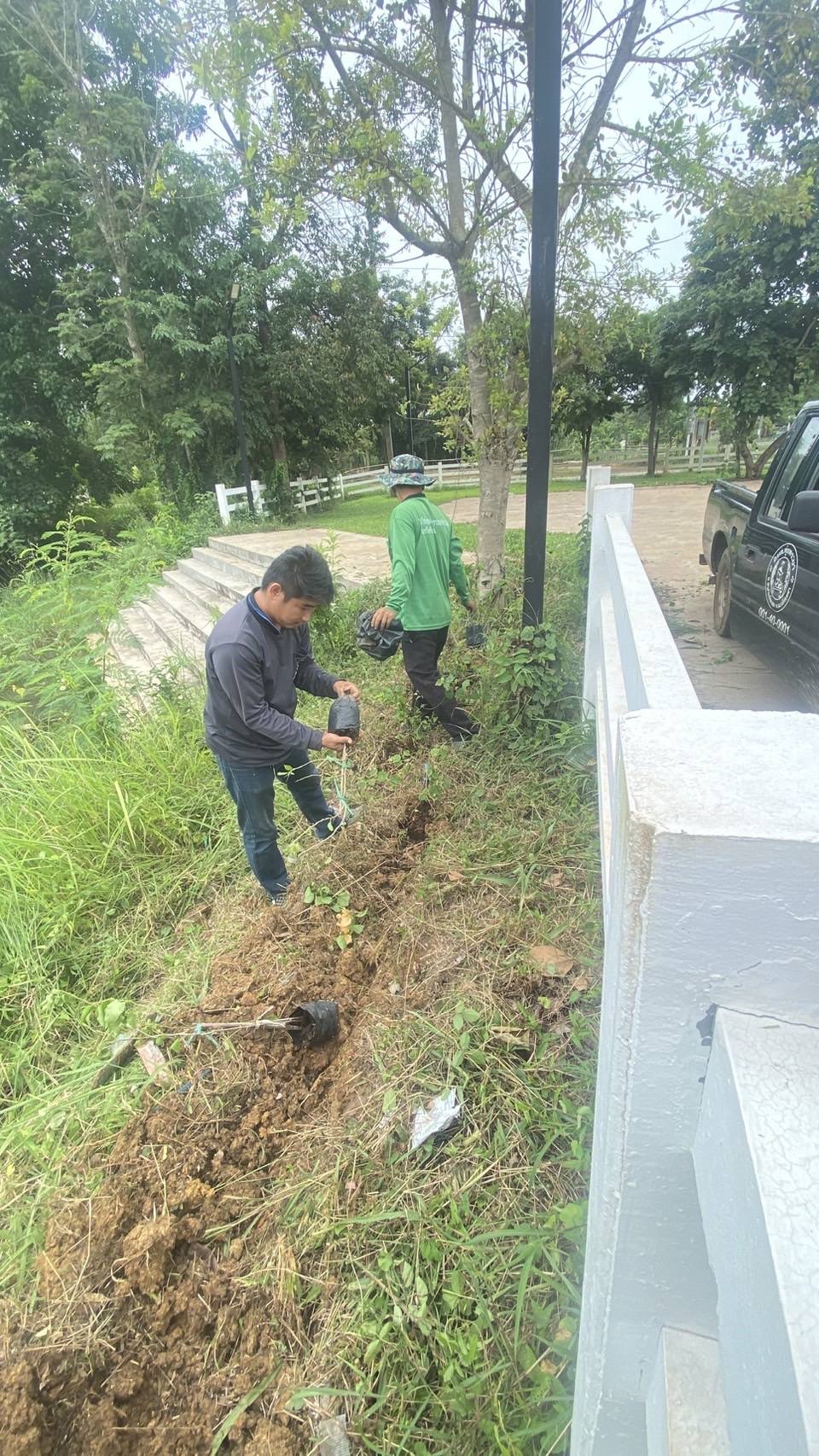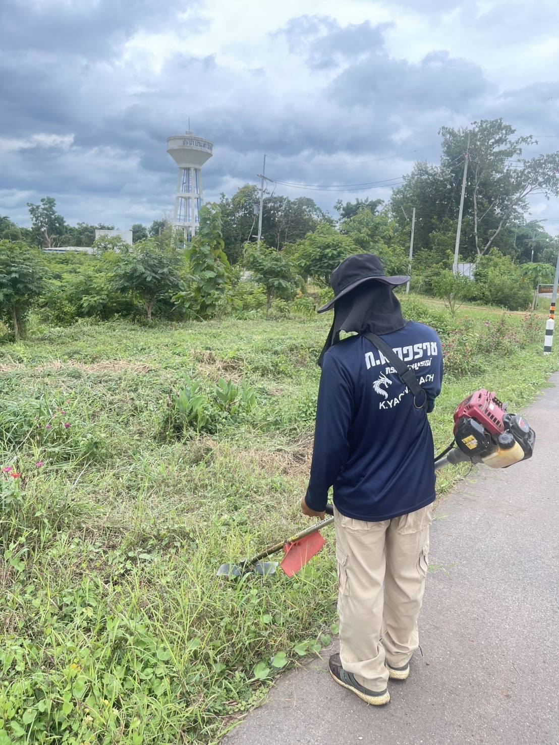 ดำเนินการตัดหญ้าบริเวณรอบสระน้ำประปา
