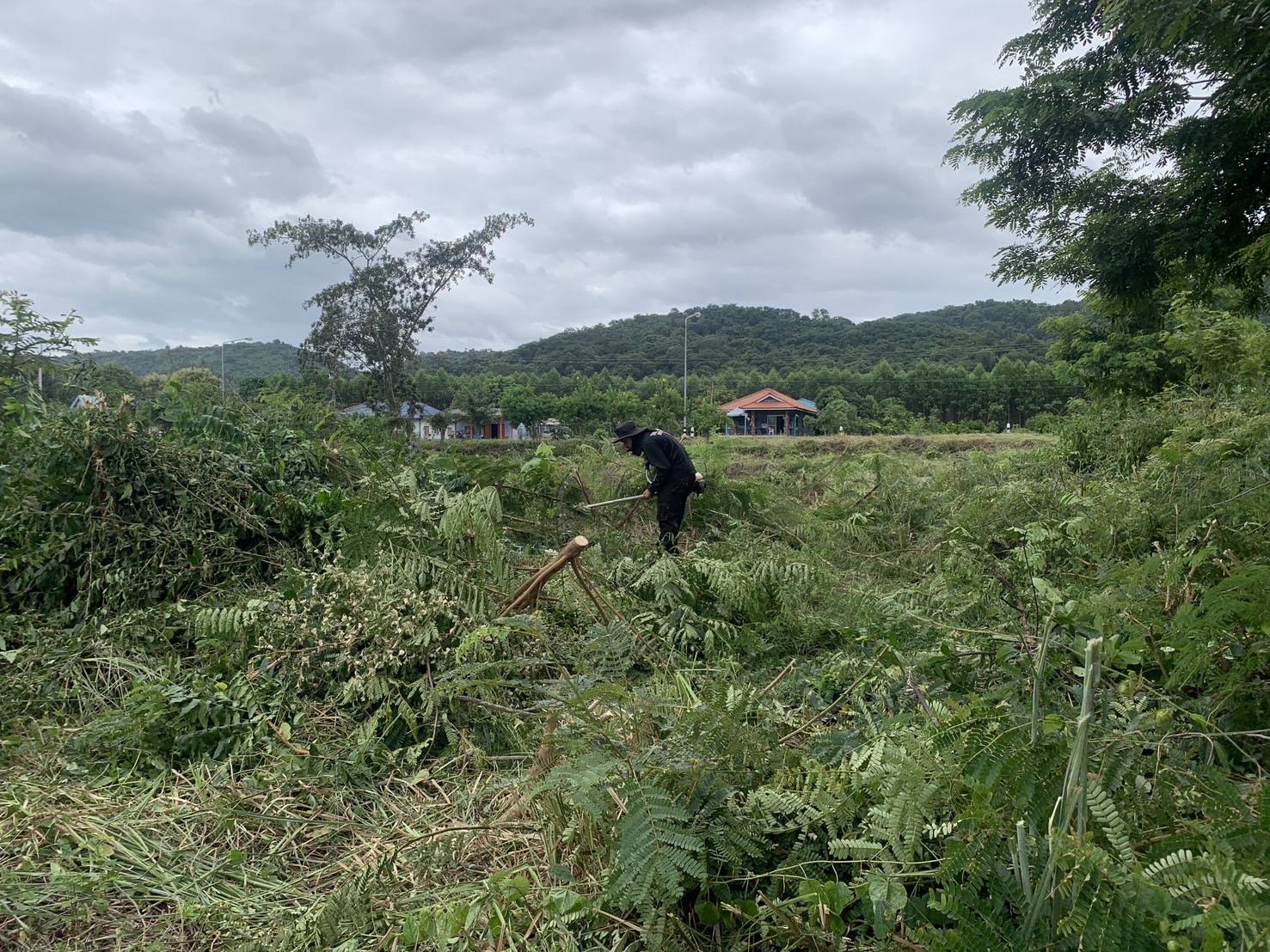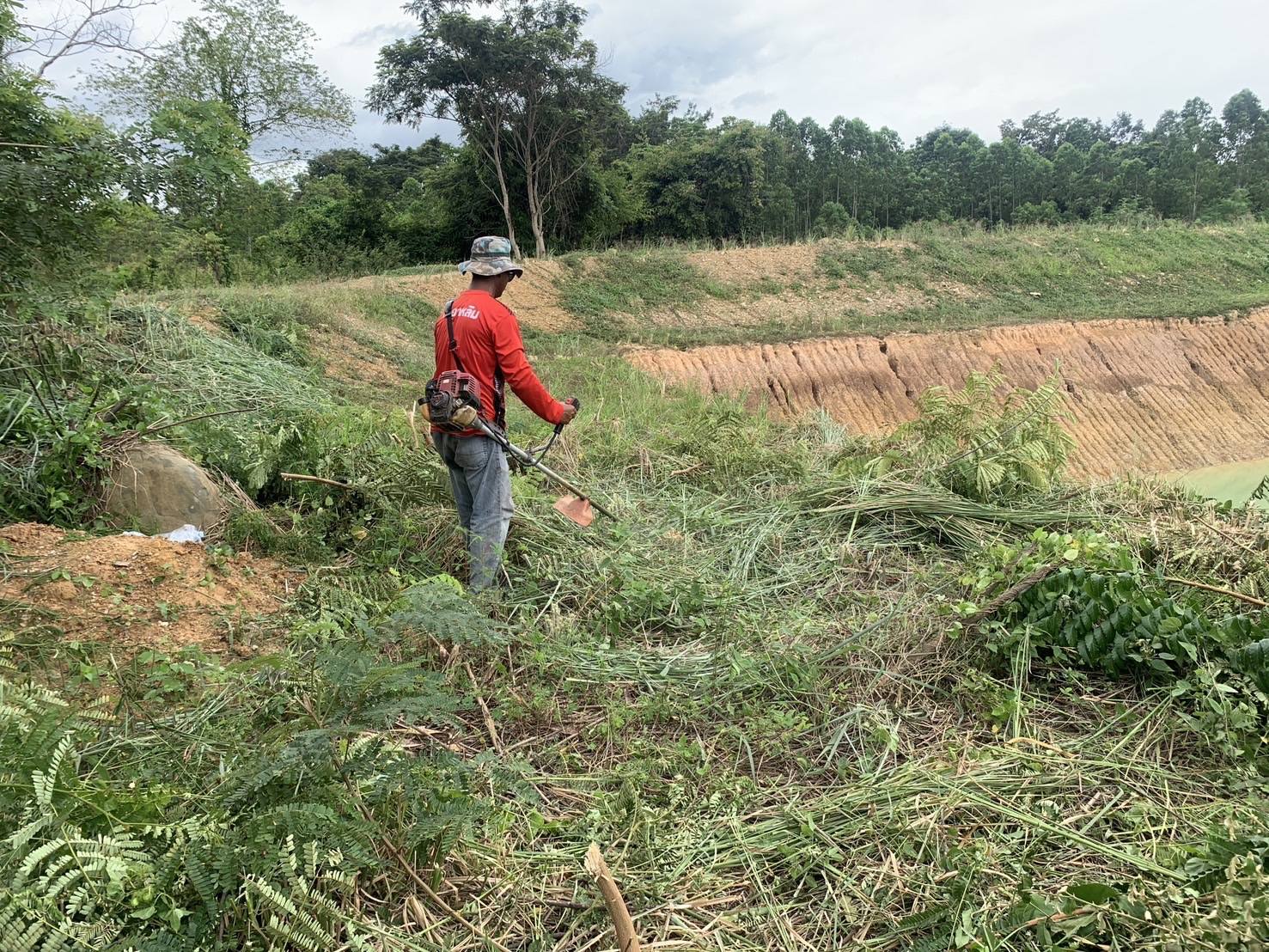 ดำเนินการตัดหญ้าและปรับภูมิทัศน์ บริเวณรอบ สระประปา หมู่ที่ 16