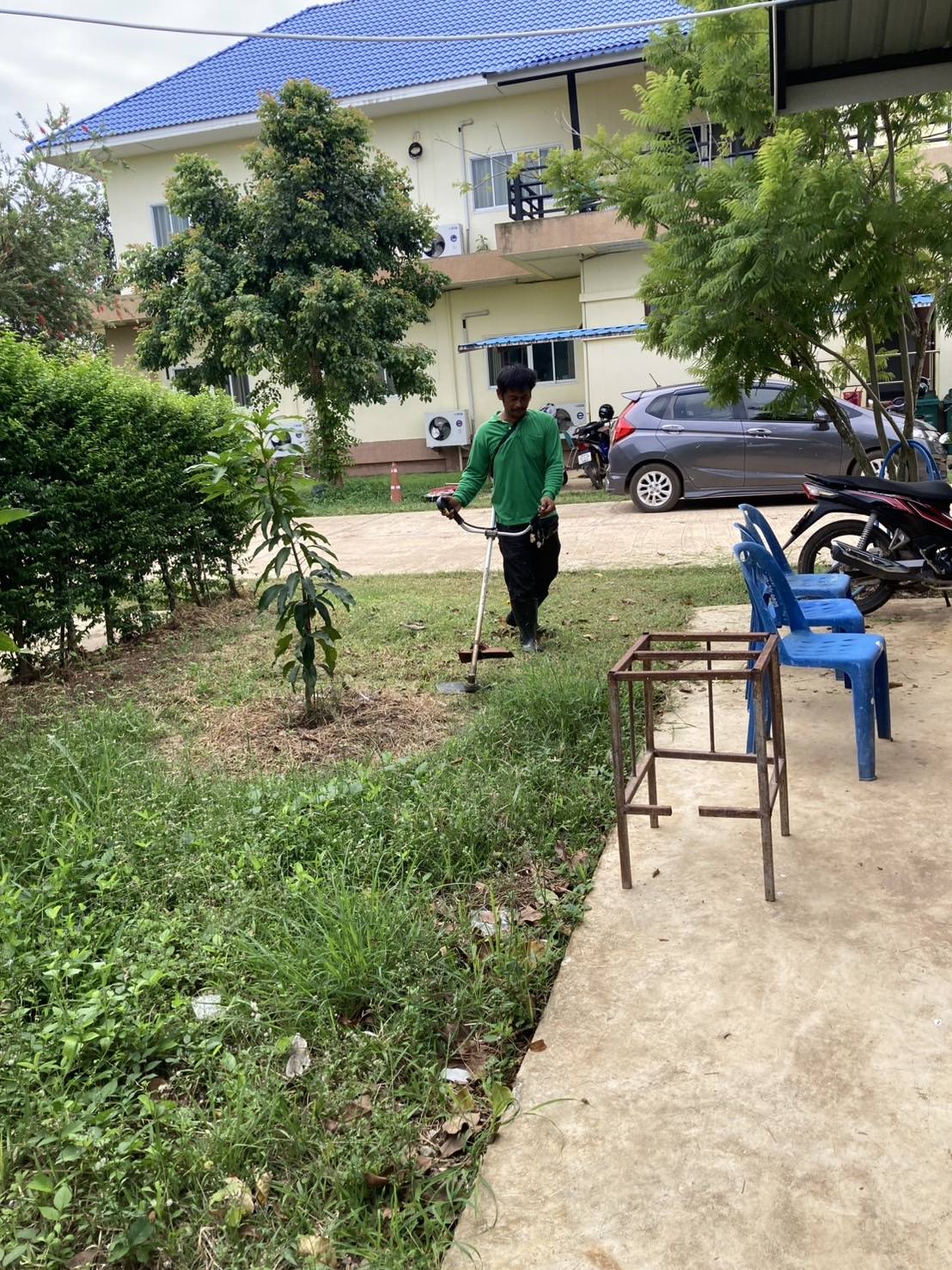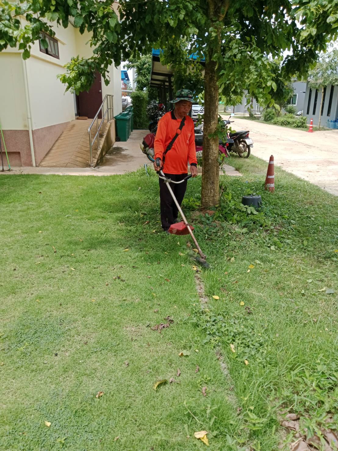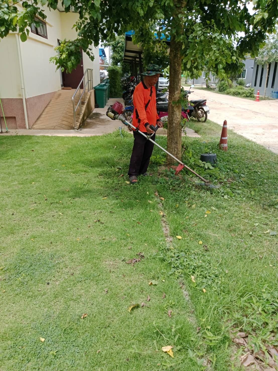 ดำเนินการตัดหญ้าและปรับปรุงภูมิทัศน์บริเวณรอบอาคารสำนักงานใหม่