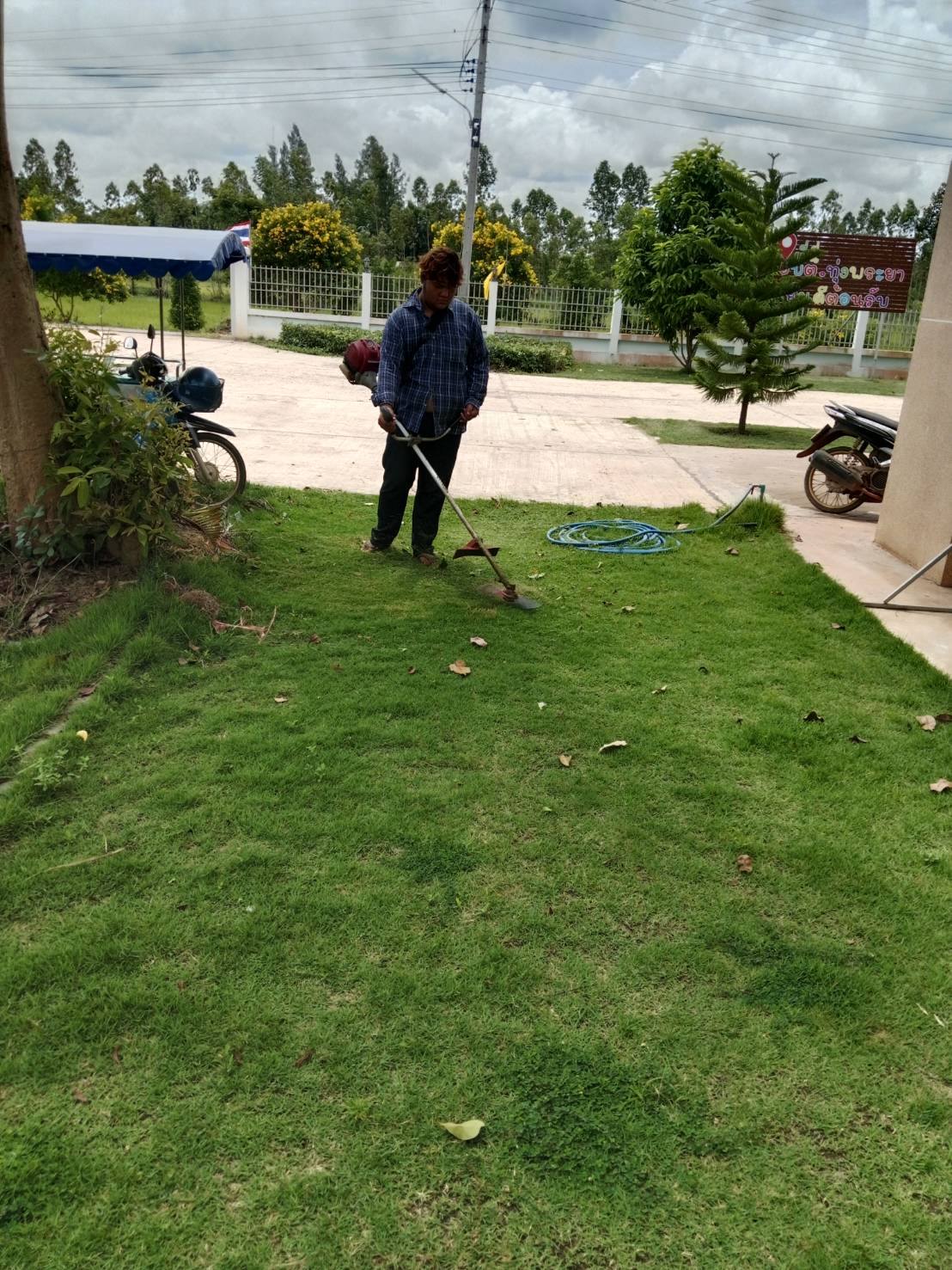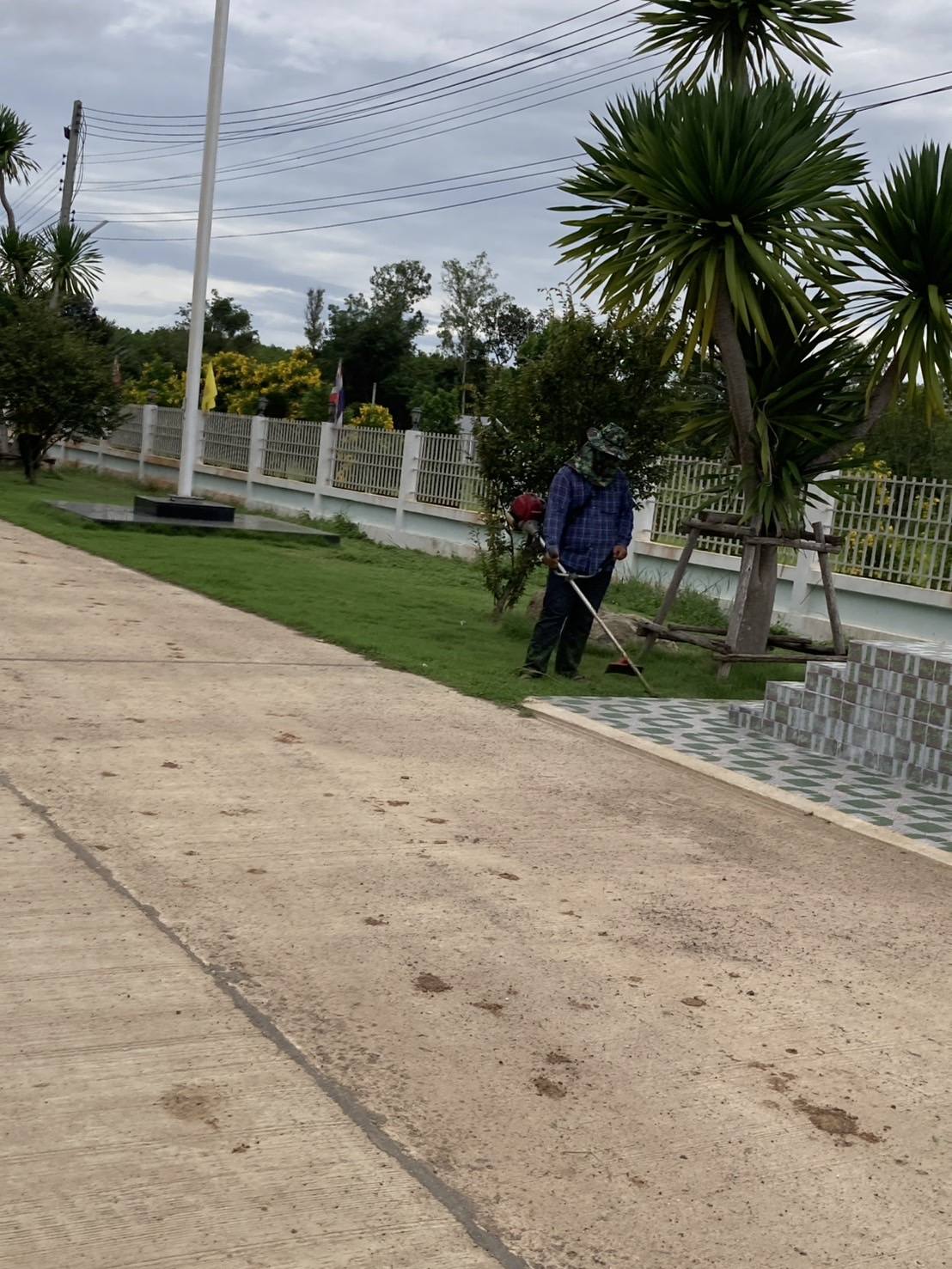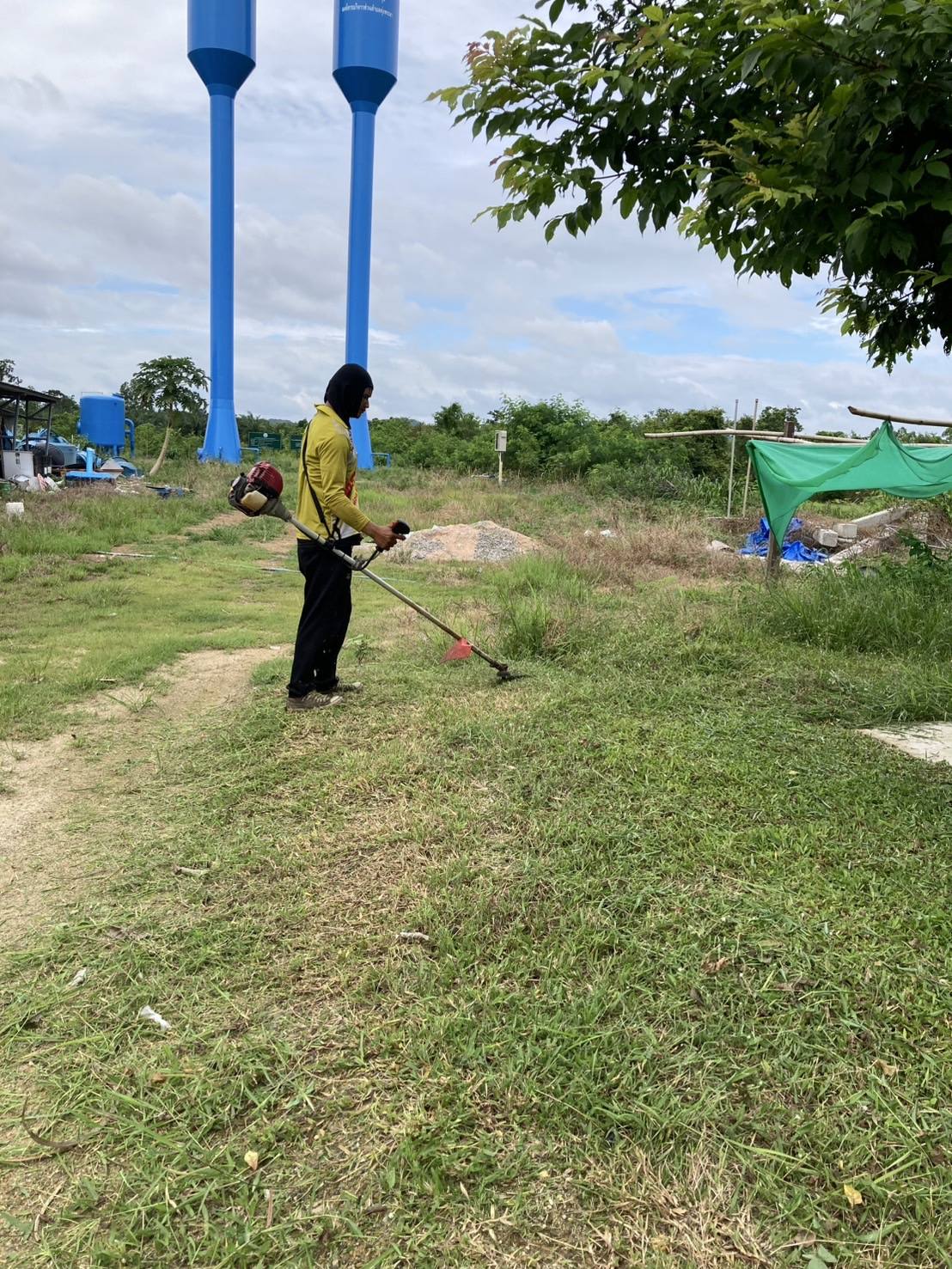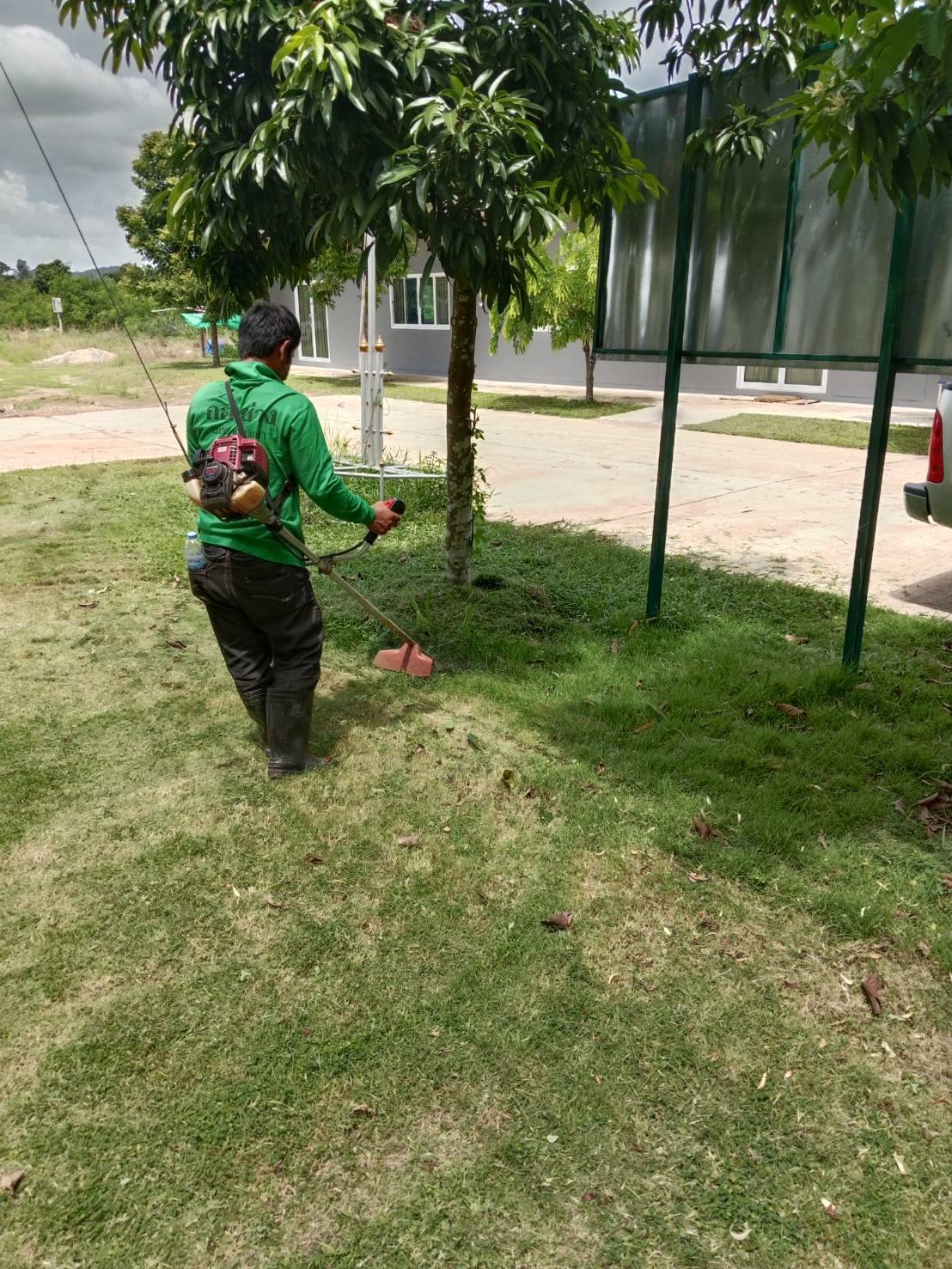 ดำเนินการตัดหญ้าและปรับปรุงภูมิทัศน์บริเวณรอบอาคารสำนักงานใหม่