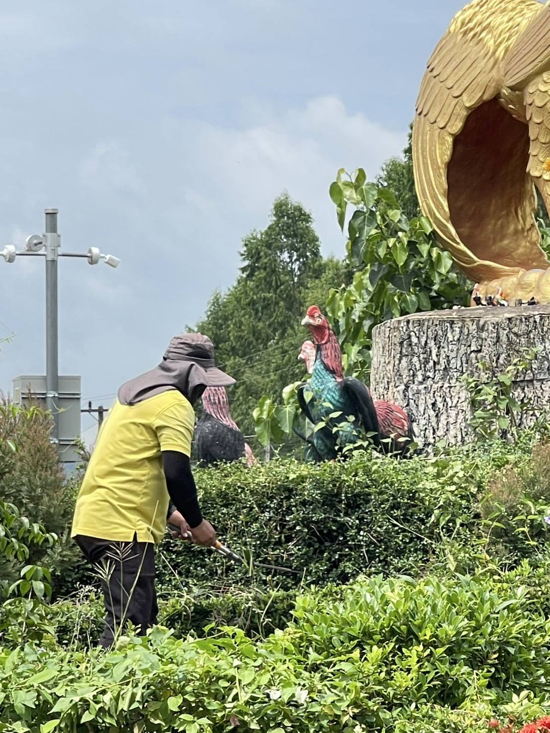 ดำเนินการตัดแต่งต้นไม้ พร้อมปรับปรุงภูมิทัศน์ บริเวณ วงเวียนไก่ หมู่ที่ ๑๕