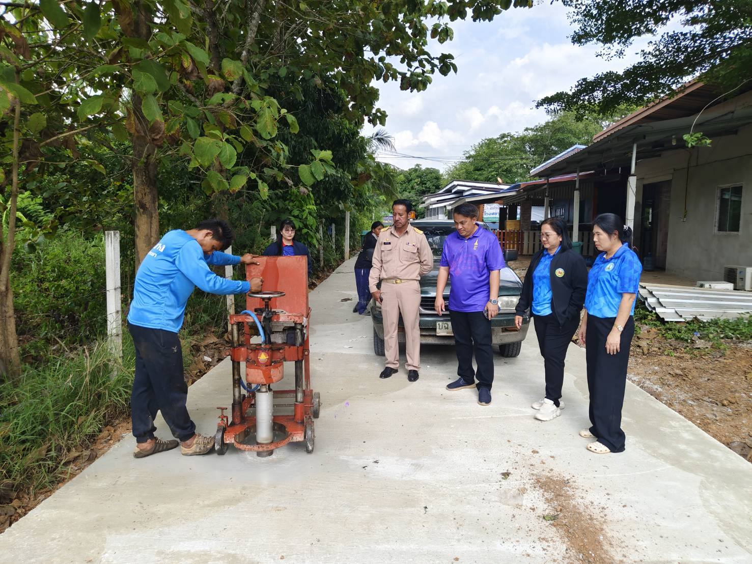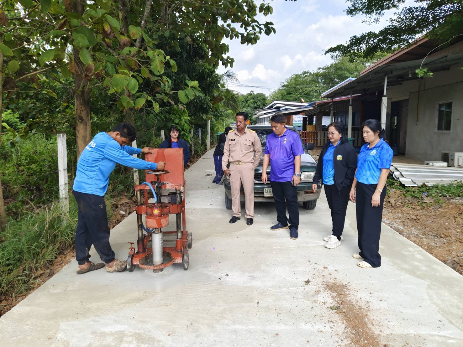 ลงพื้นที่ สุ่มเจาะความหนาถนนคอนกรีต หมู่ ๘ บ้านวังคู เพื่อตรวจสอบคุณภาพและความเรียบร้อยของการก่อสร้าง