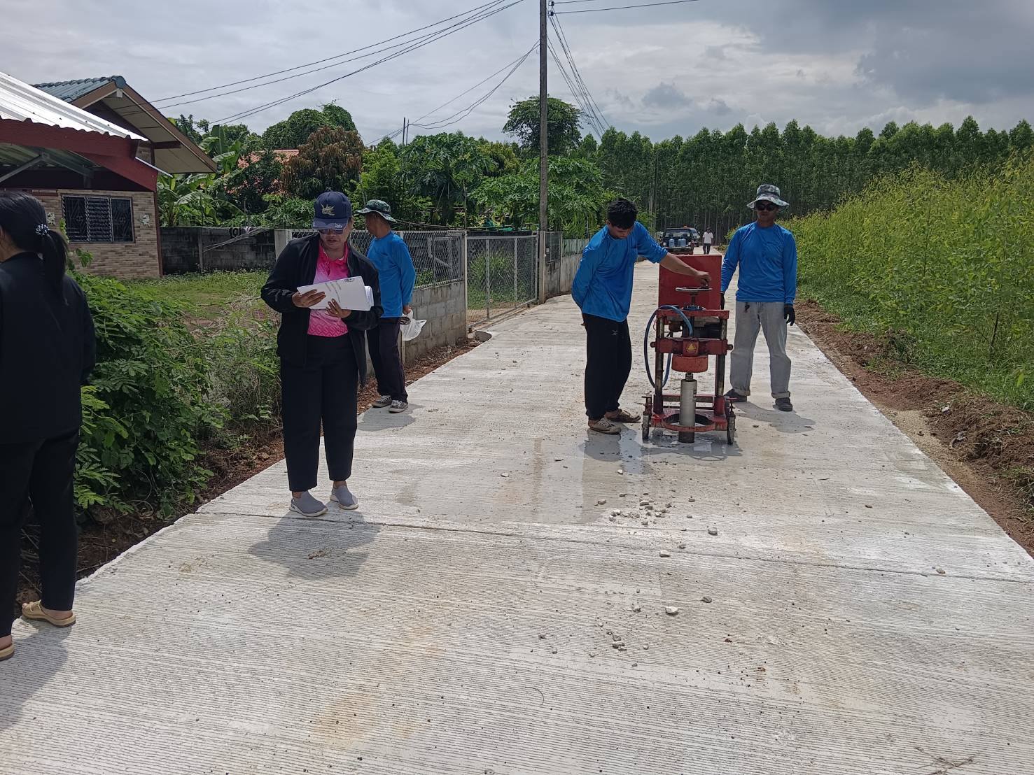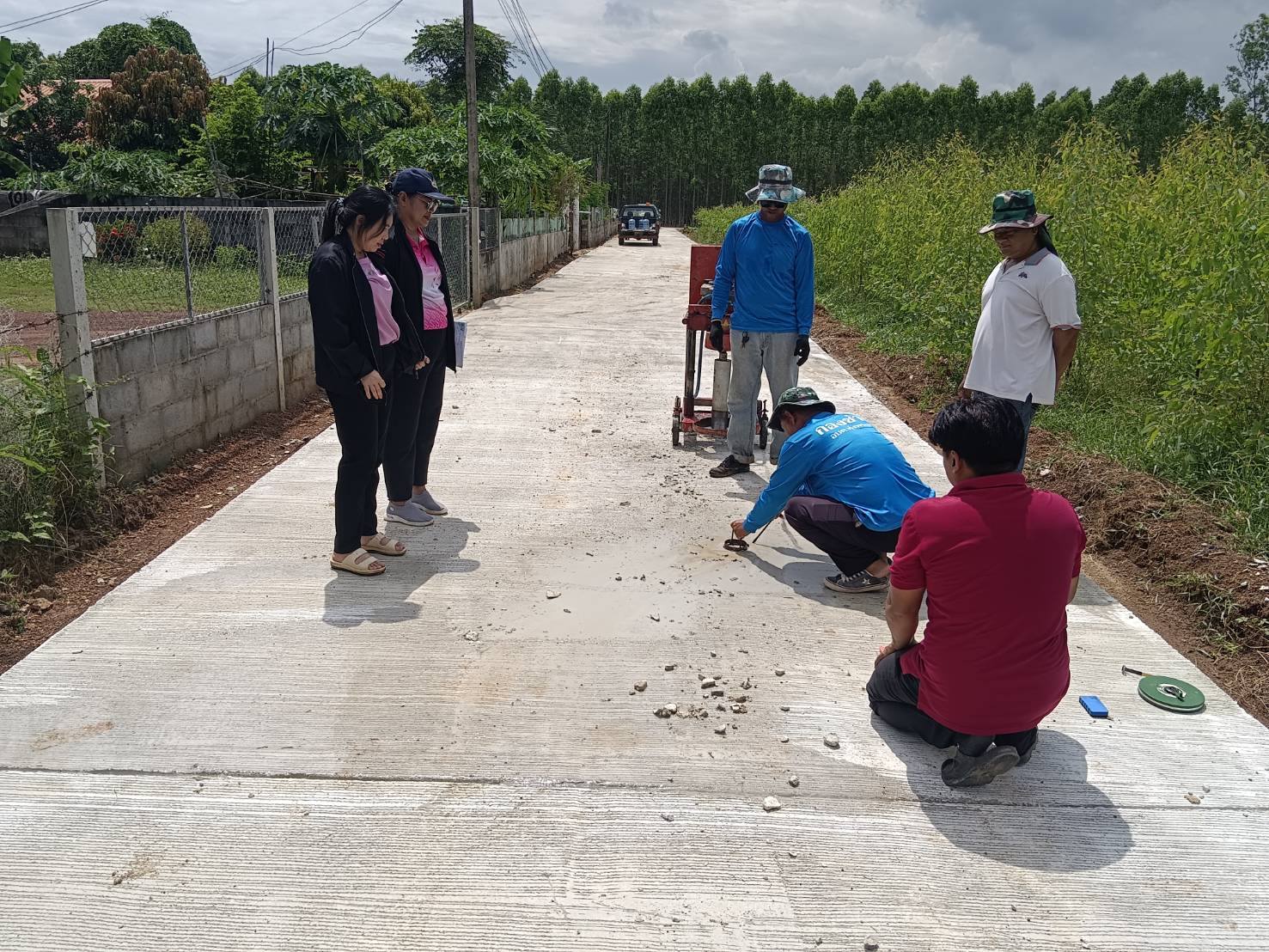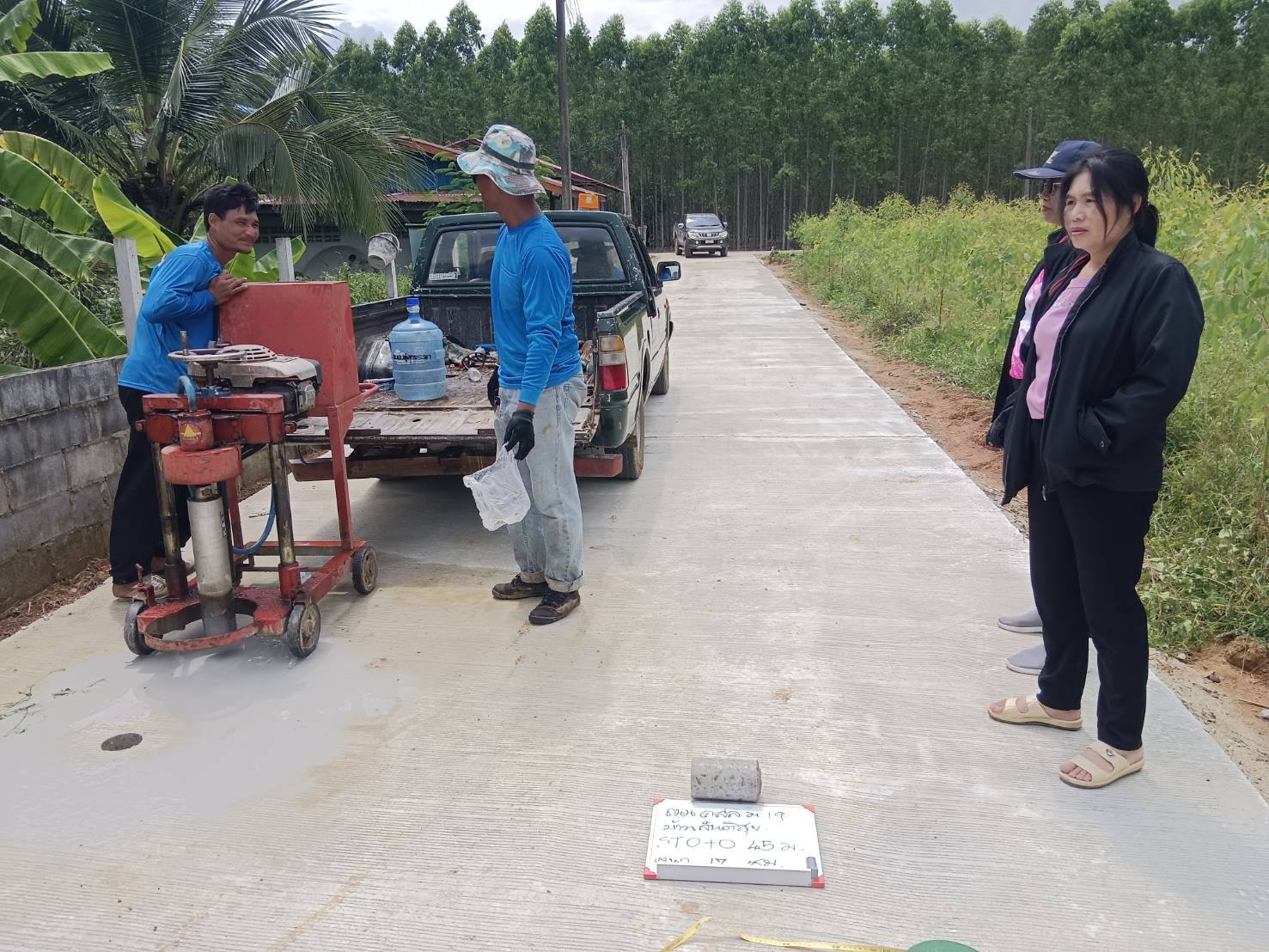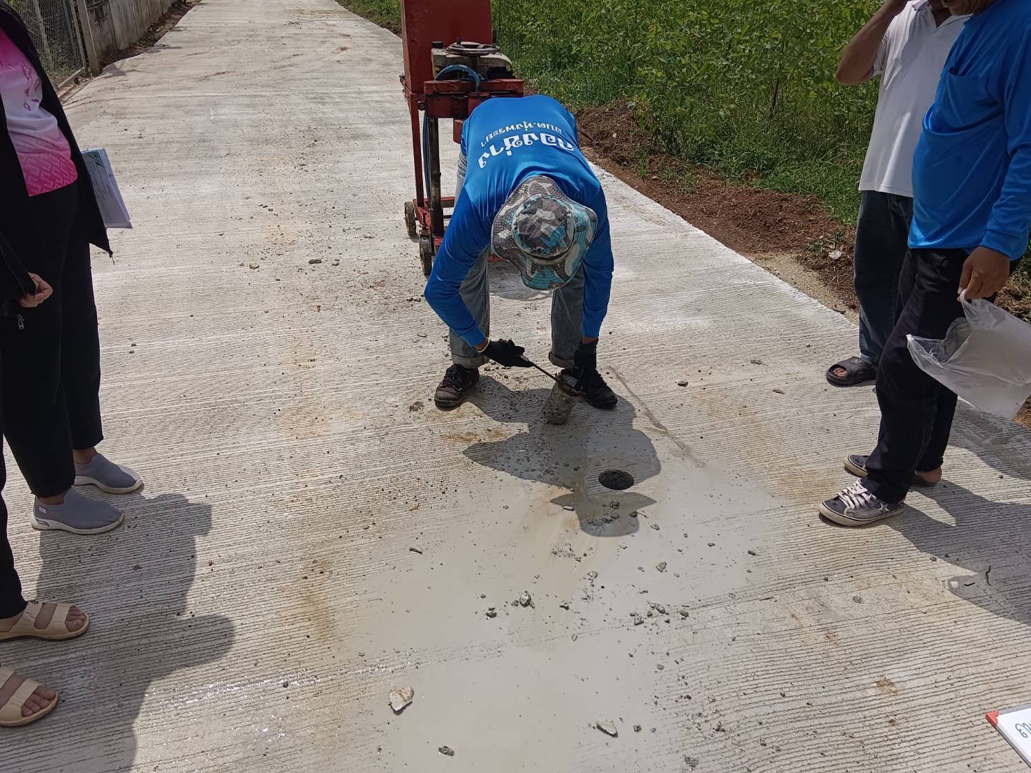 คณะกรรมการตรวจรับพัสดุ ออกซุ่มตรวจเจาะชั้นความหนาของถนน คสล. ณ หมู่ที่ 19 บ้านสันติสุข