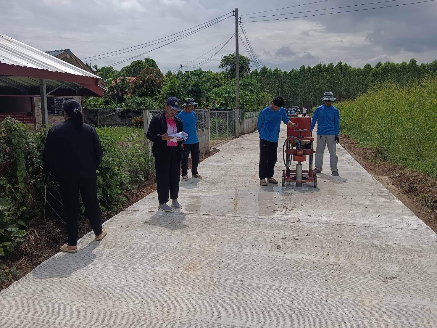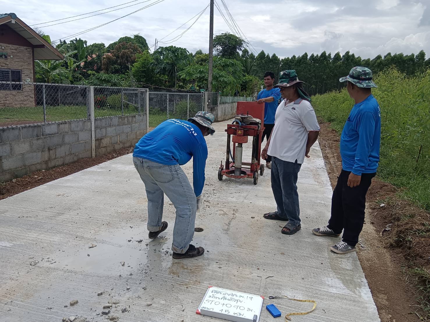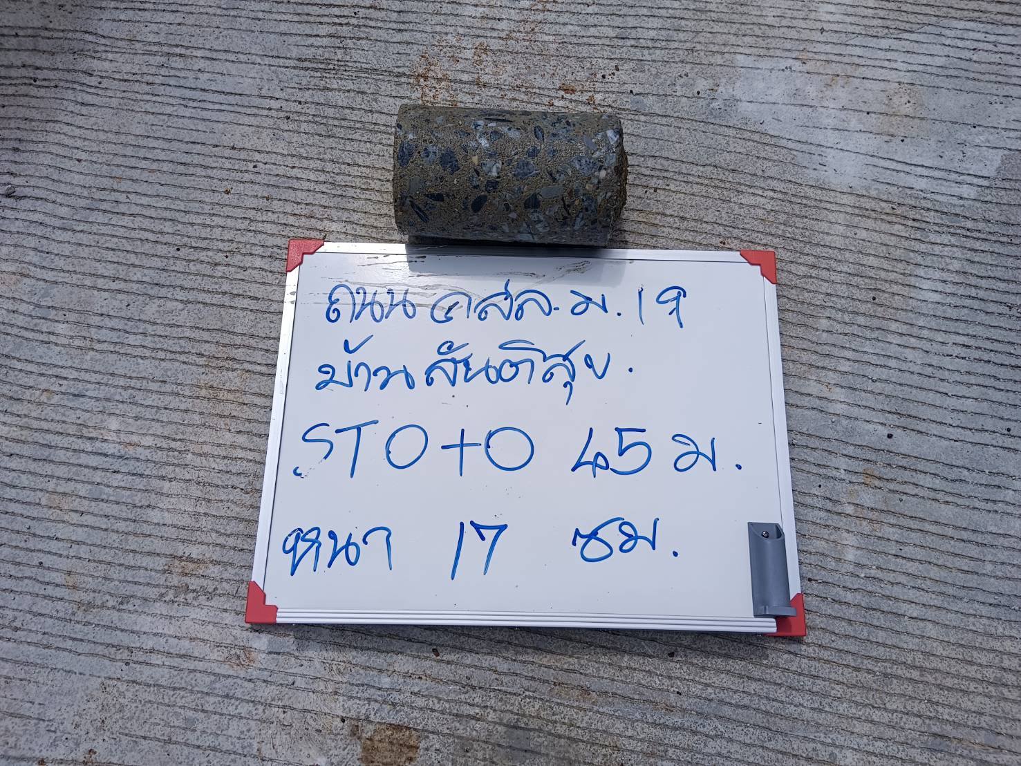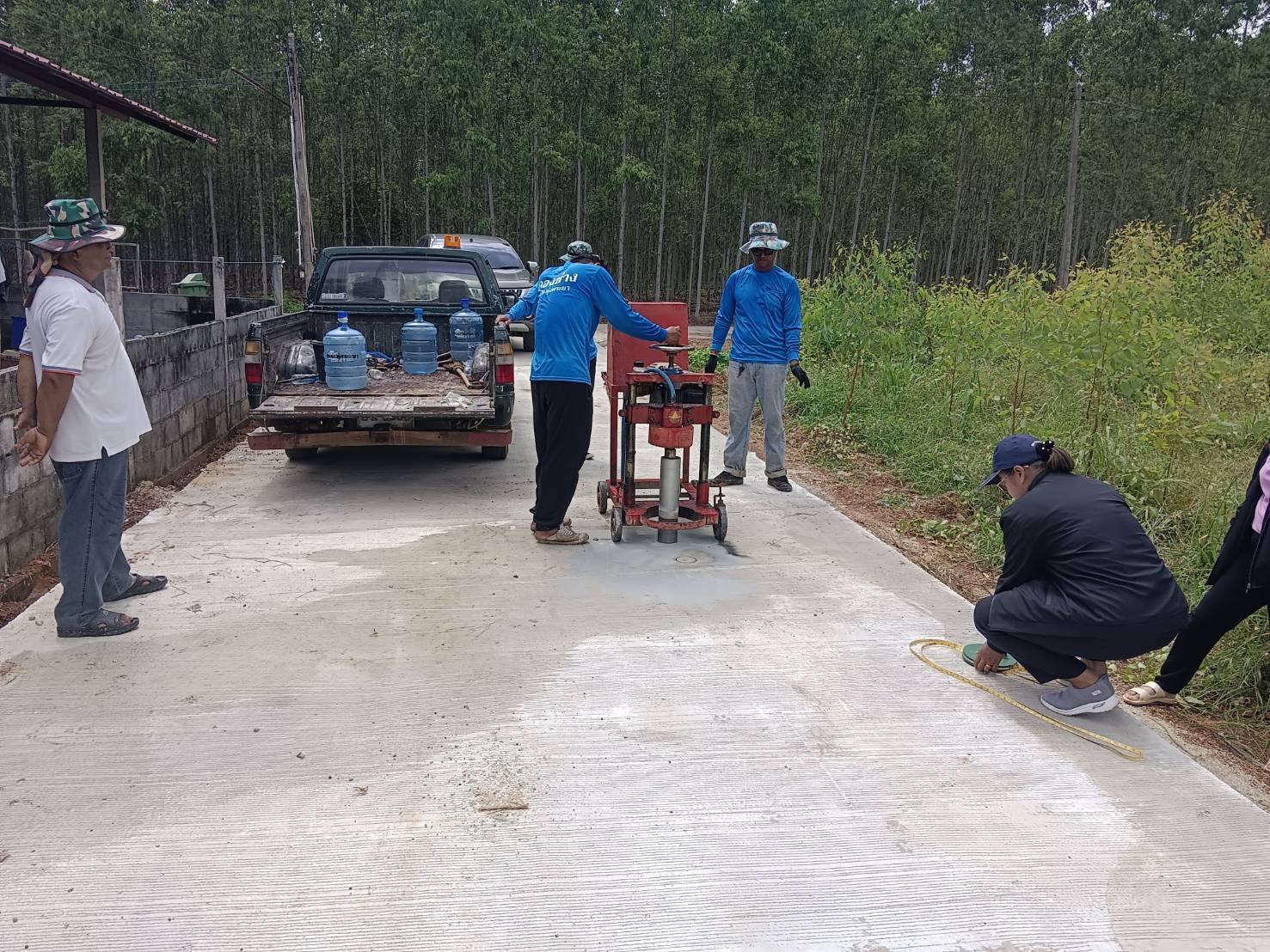 คณะกรรมการตรวจรับพัสดุ ออกซุ่มตรวจเจาะชั้นความหนาของถนน คสล. ณ หมู่ที่ 19 บ้านสันติสุข