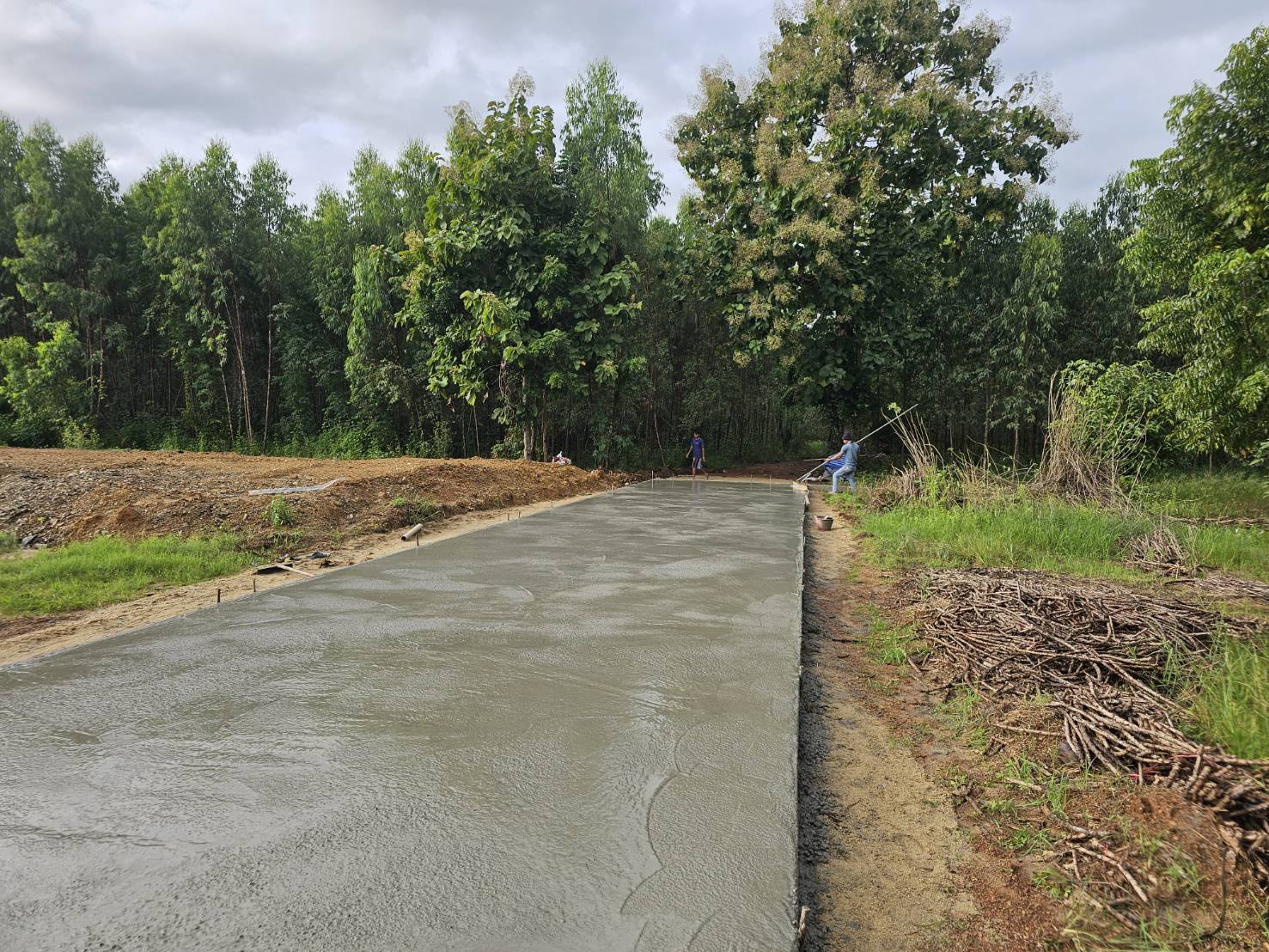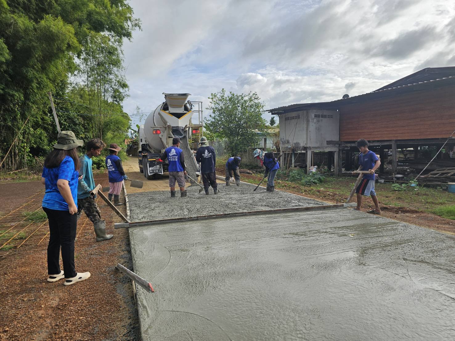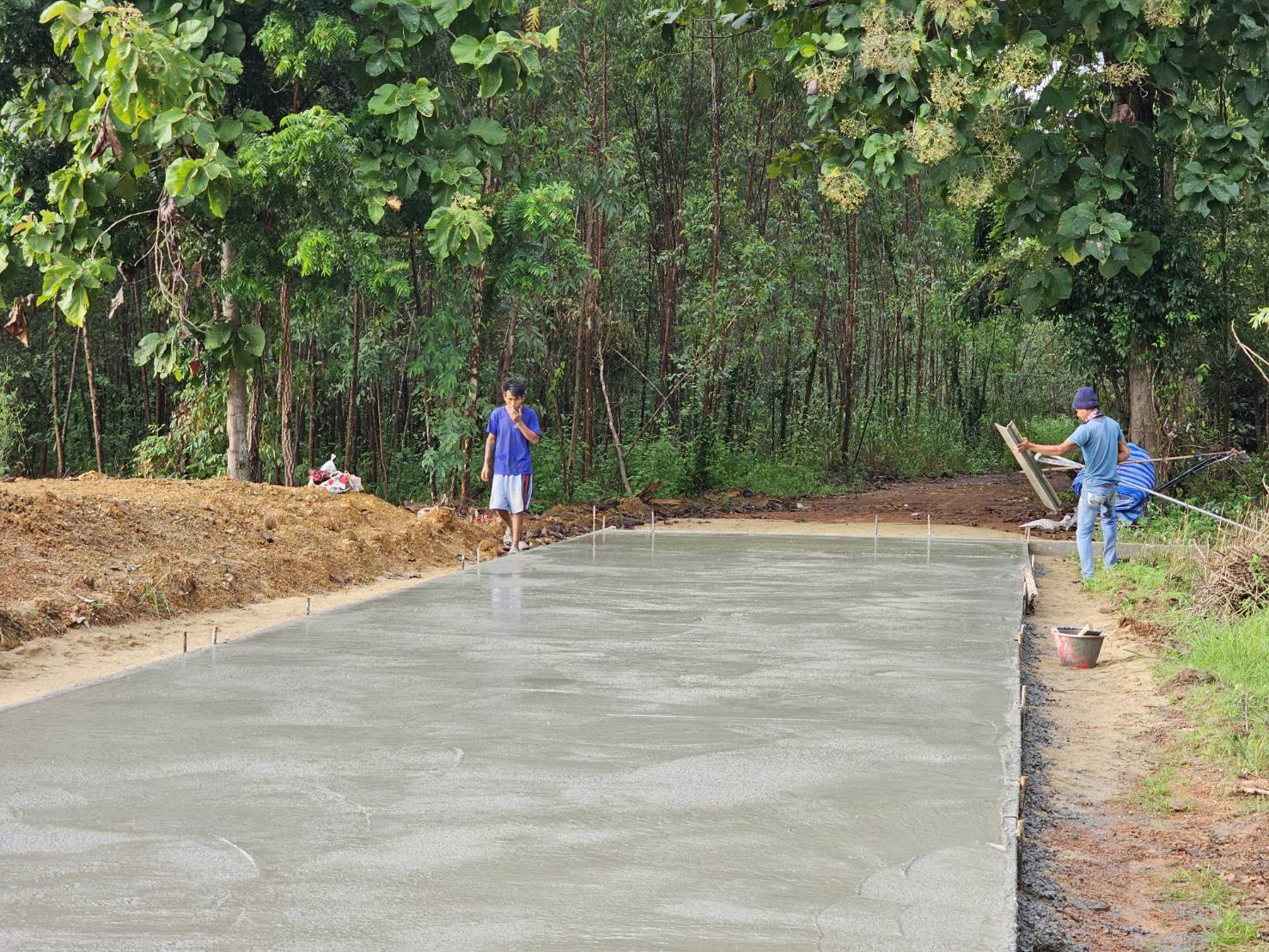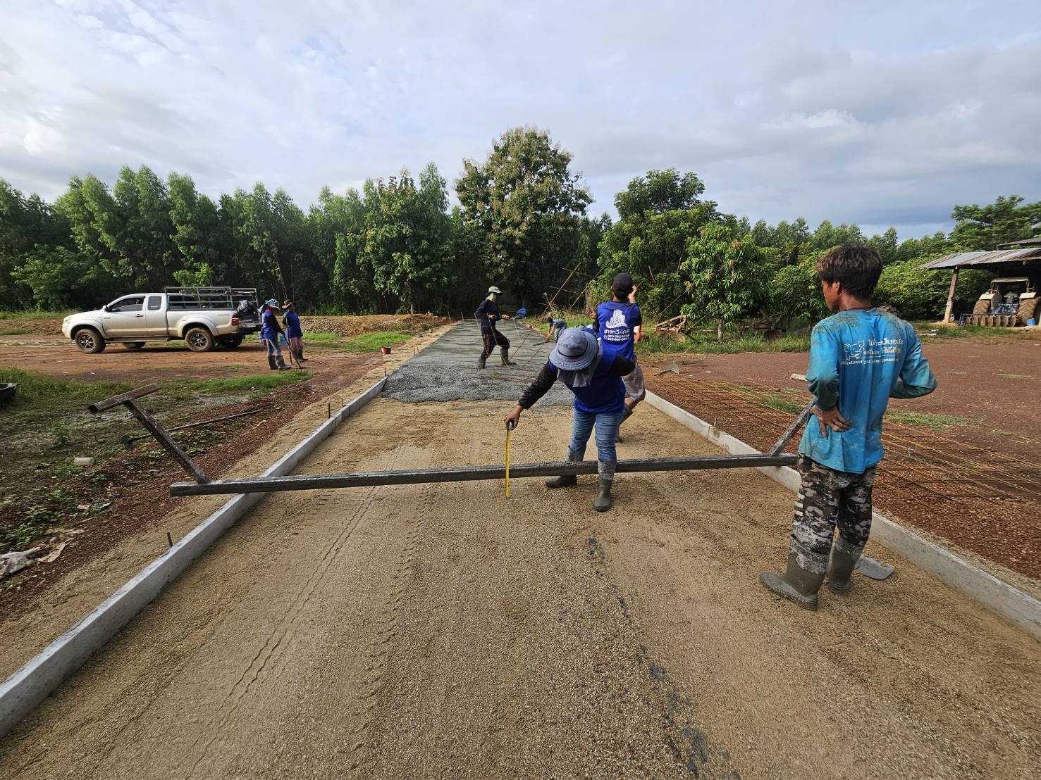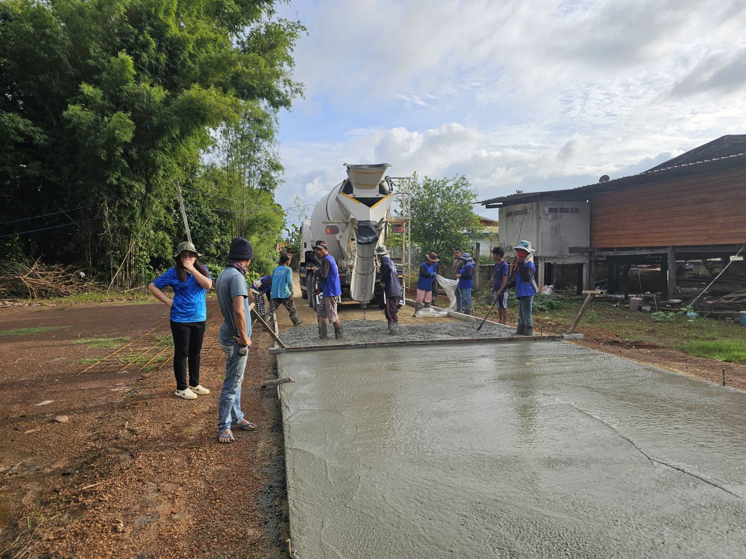 คณะกรรมการตรวจรับพัสดุ พร้อมด้วยช่างผู้ควบคุมงาน ลงพื้นที่ติดตามตรวจสอบการดำเนินงานของผู้รับจ้าง ในการเทคอนกรีตถนนเส้นบ้าน
