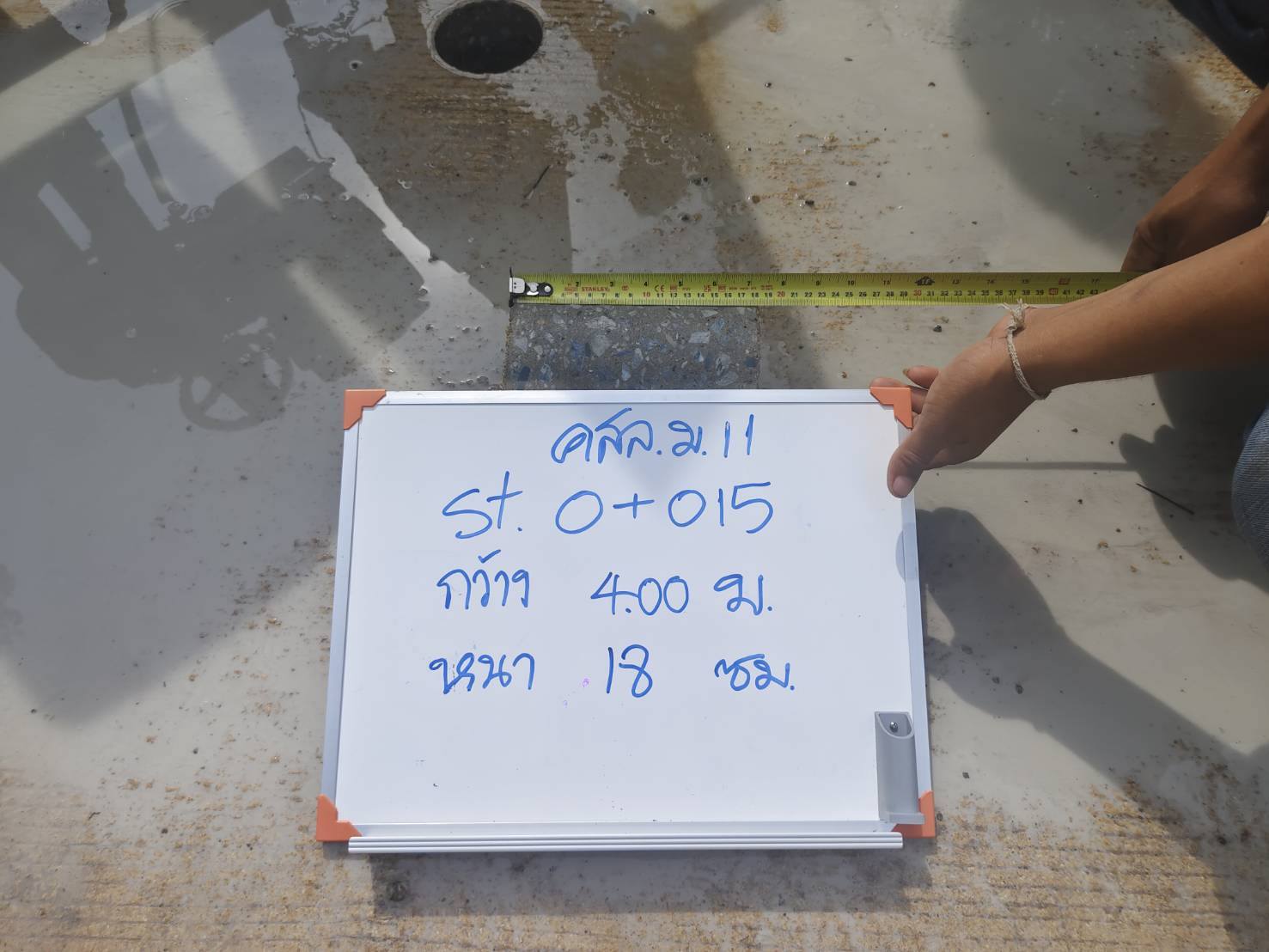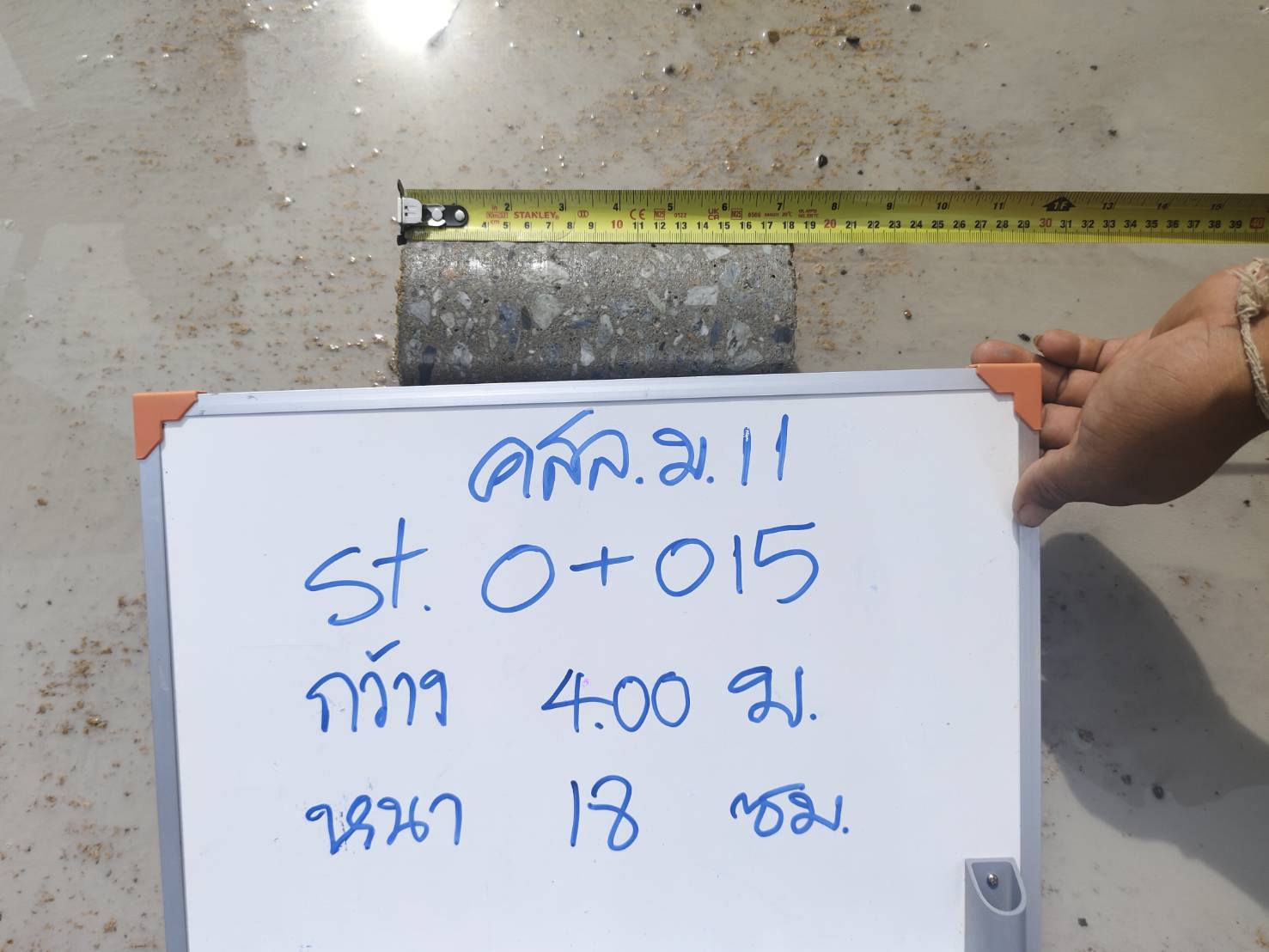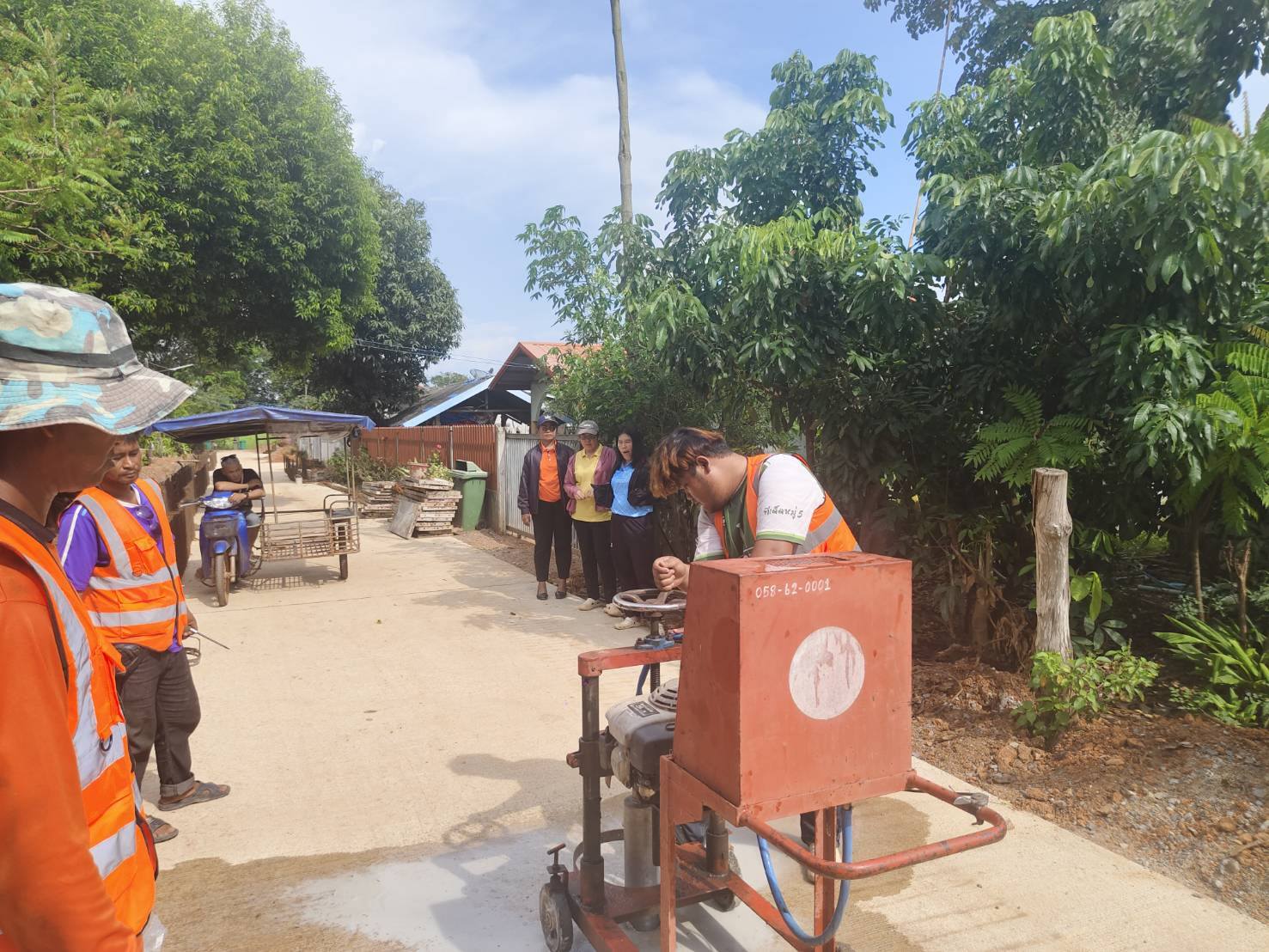 ลงพื้นที่ สุ่มเจาะตรวจสอบความหนาของถนนคอนกรีต ณ หมู่ที่ 11 บ้านหนองยายกล่อม
