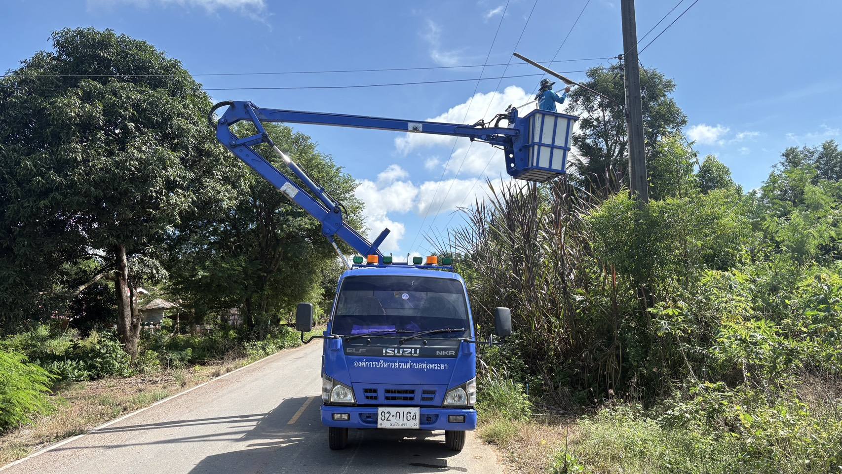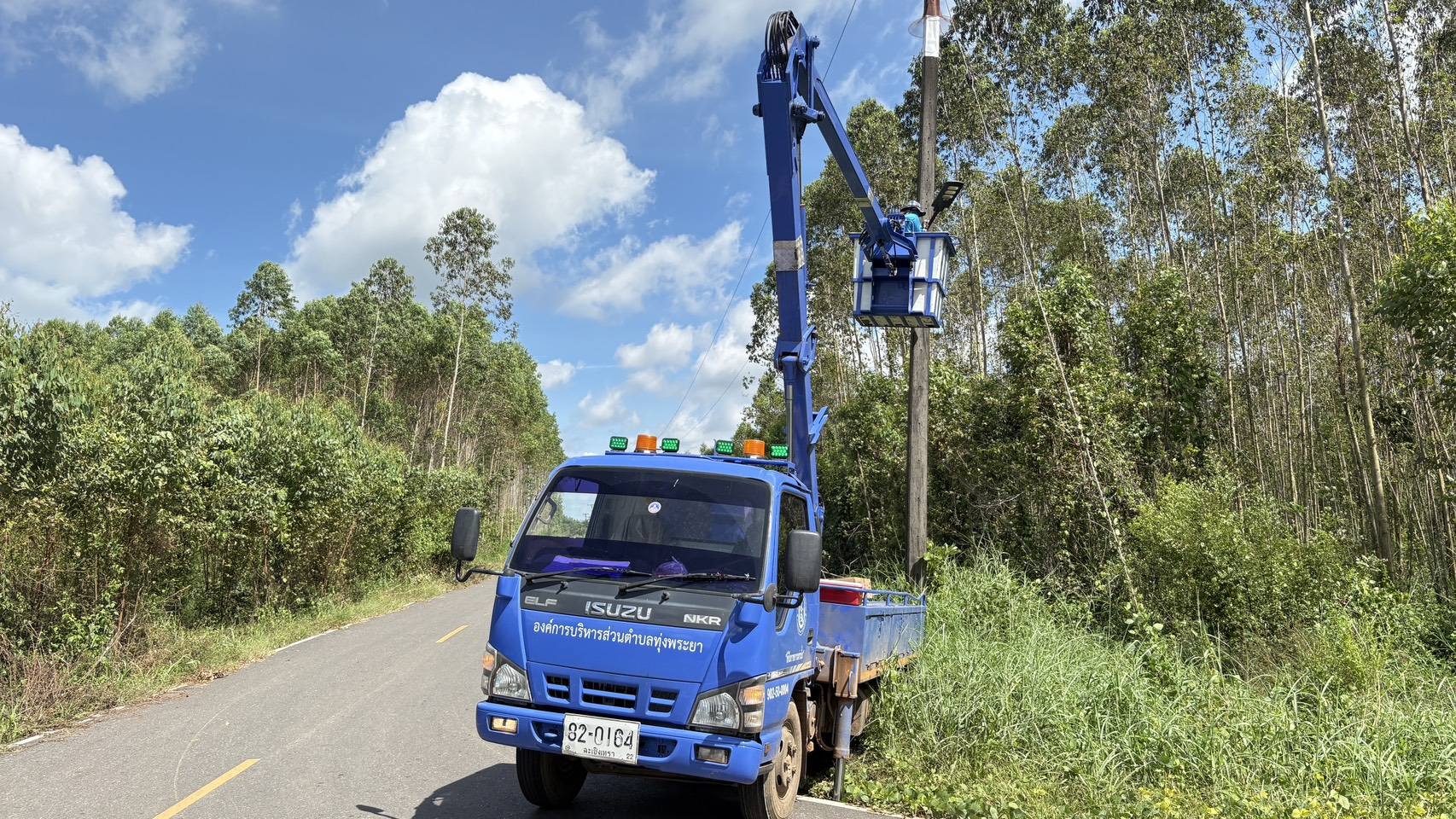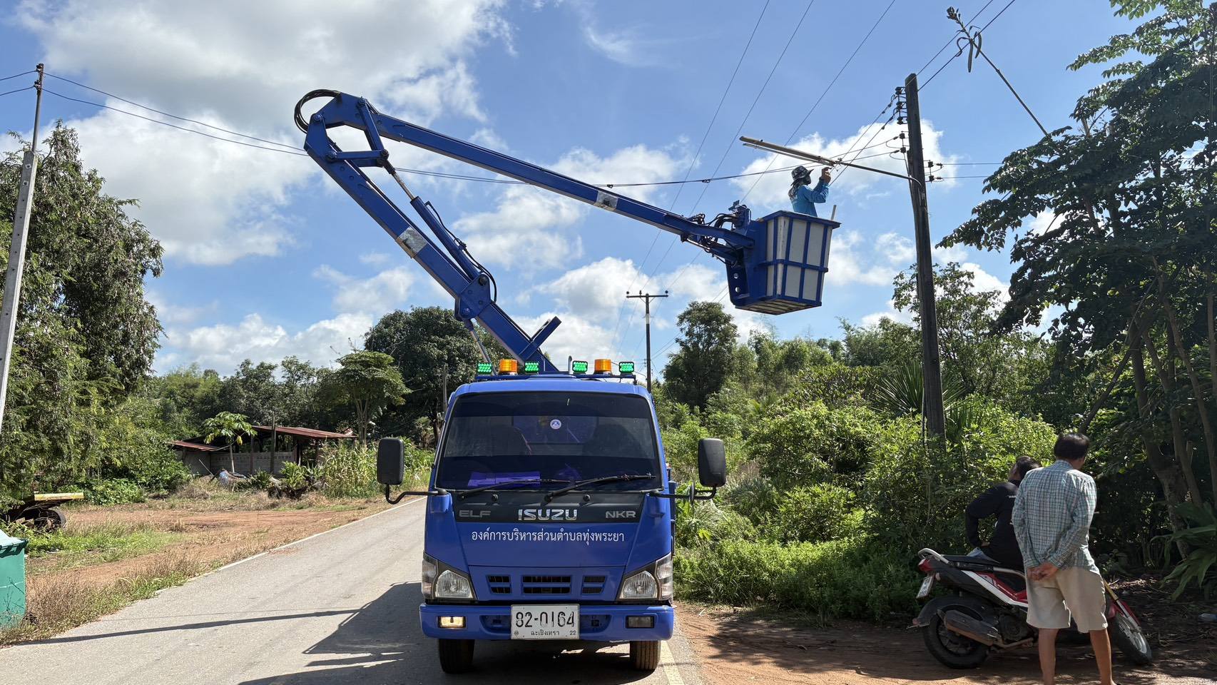 ช่างไฟฟ้า ดำเนินการ ซ่อมแซมไฟฟ้าส่องสว่าง หมู่ที่ 7 บ้านโป่งตาสา