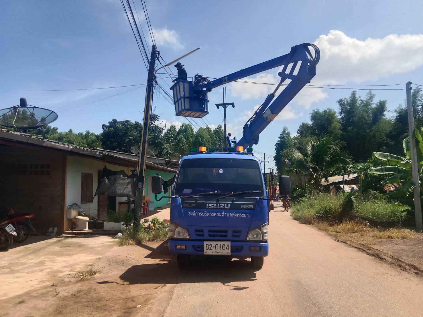 กองช่าง โดยช่างไฟฟ้า ลงพื้นที่ดำเนินการซ่อมแซมไฟฟ้าส่องสว่างบริเวณหมู่ที่ 8 บ้านวังคู