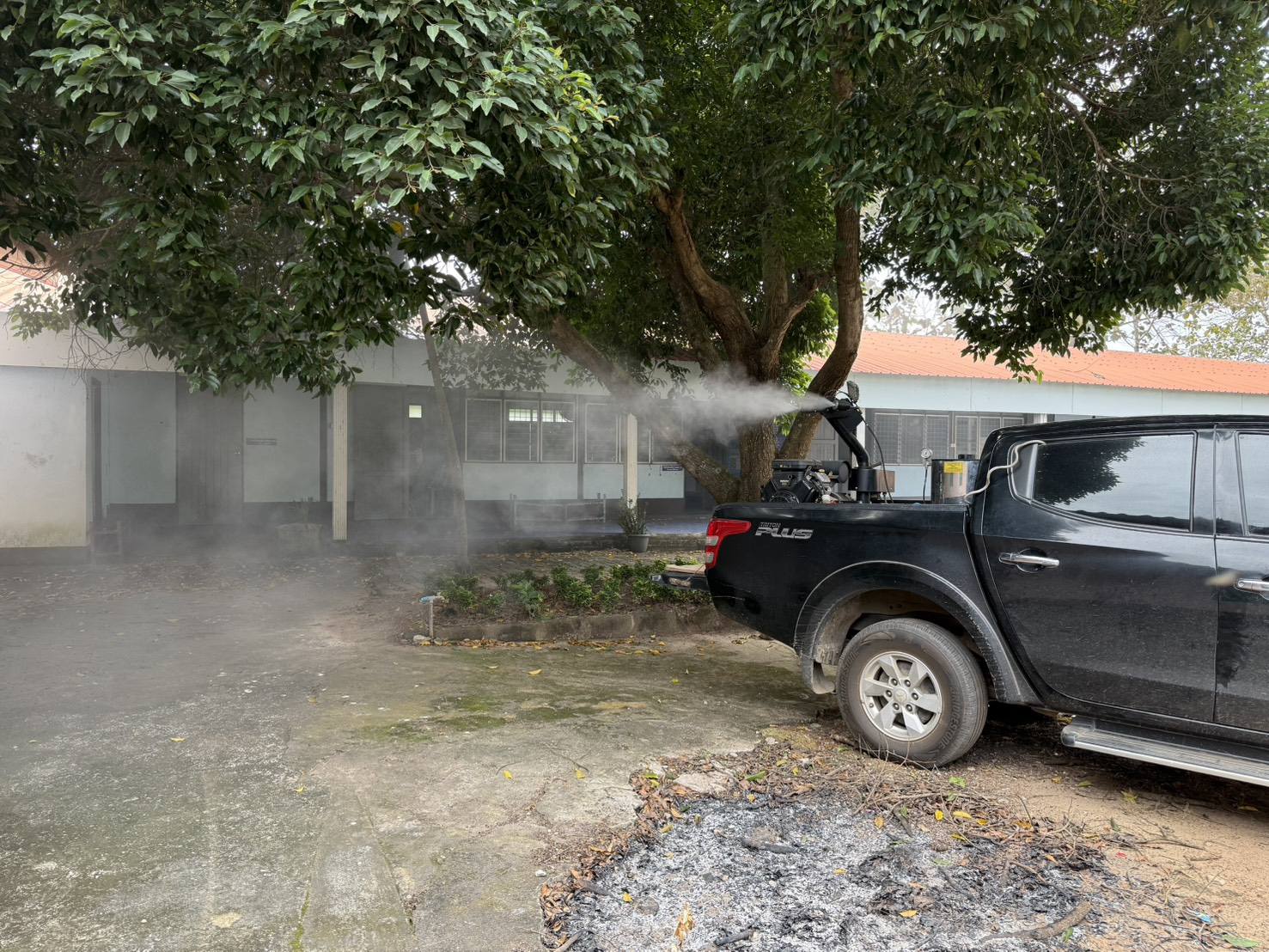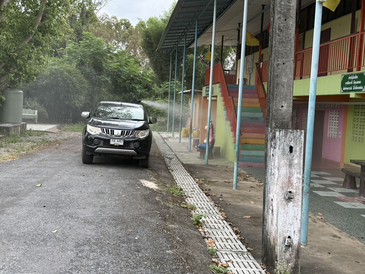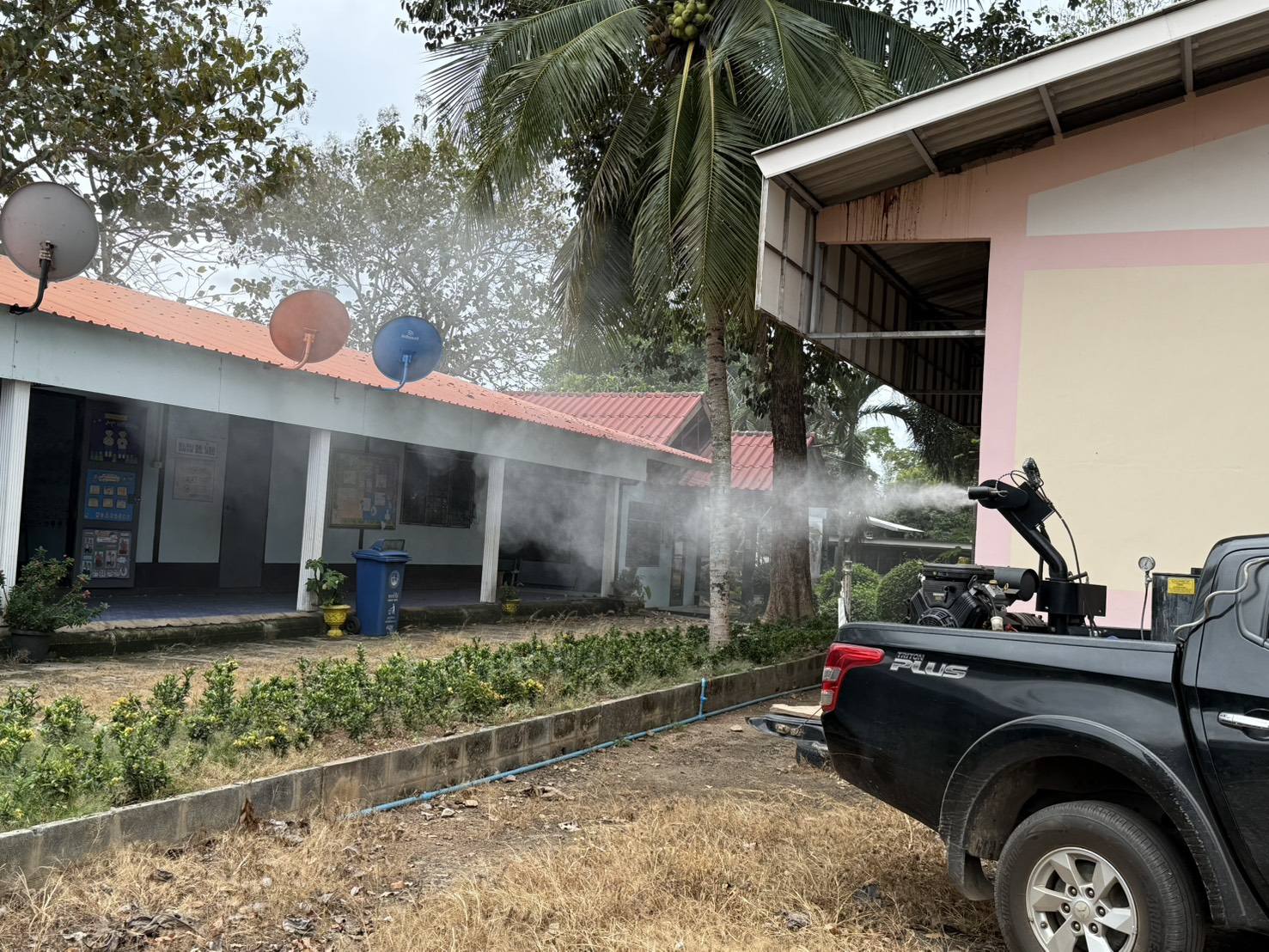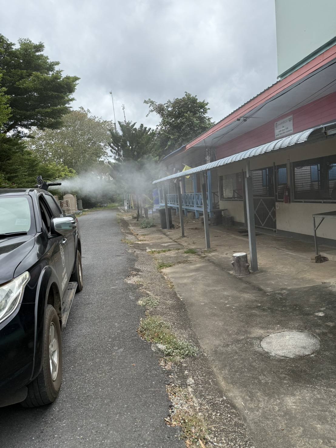 กองสาธารณสุขและสิ่งแวดล้อม ดำเนินการพ่น น้ำยาเคมีกำจัดยุงลาย ในช่วงก่อนเปิดภาคเรียน