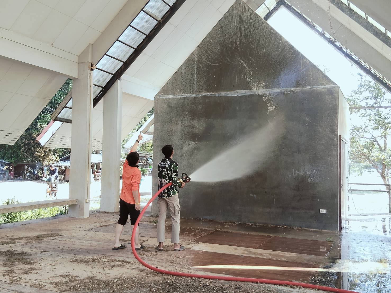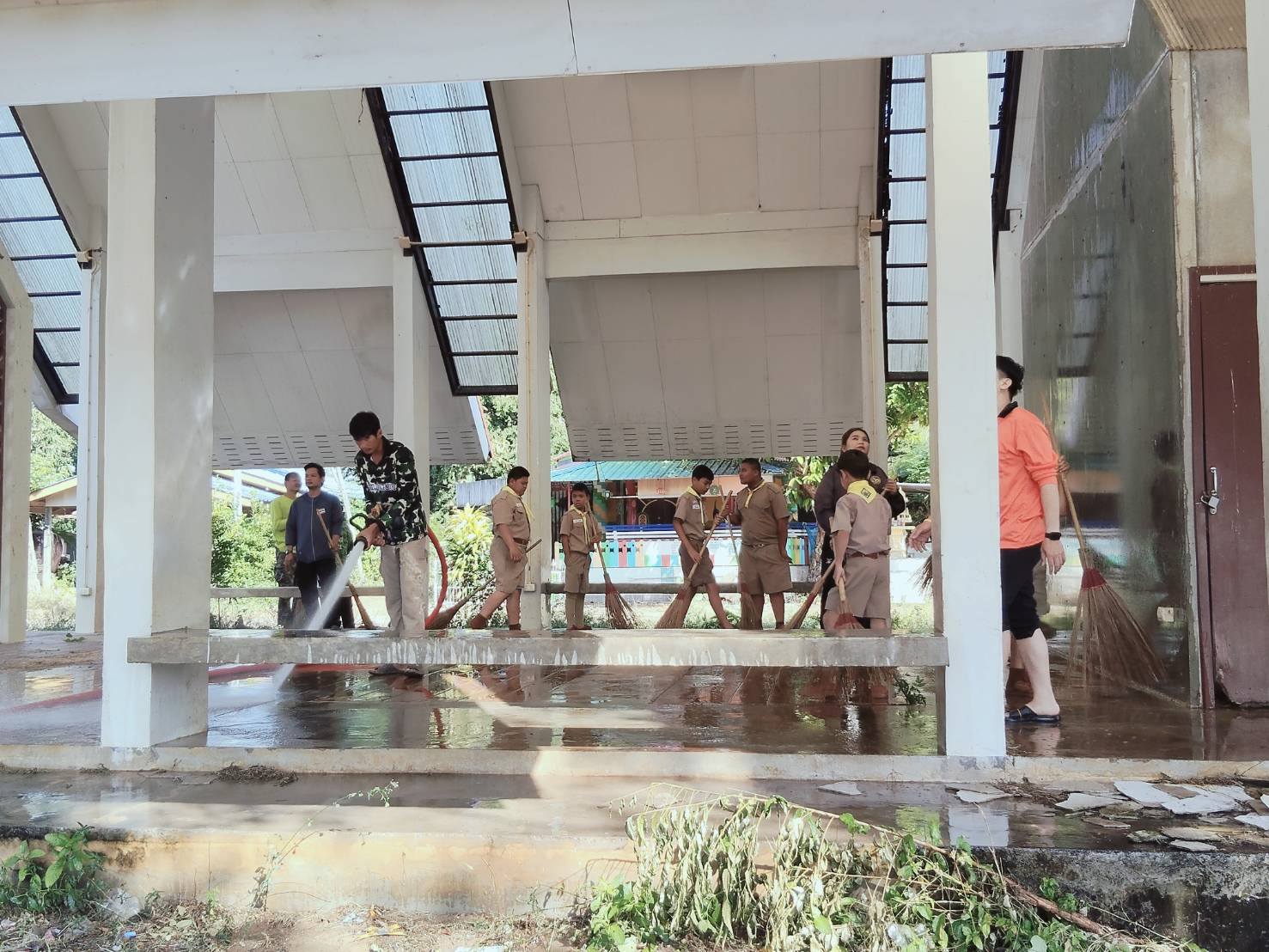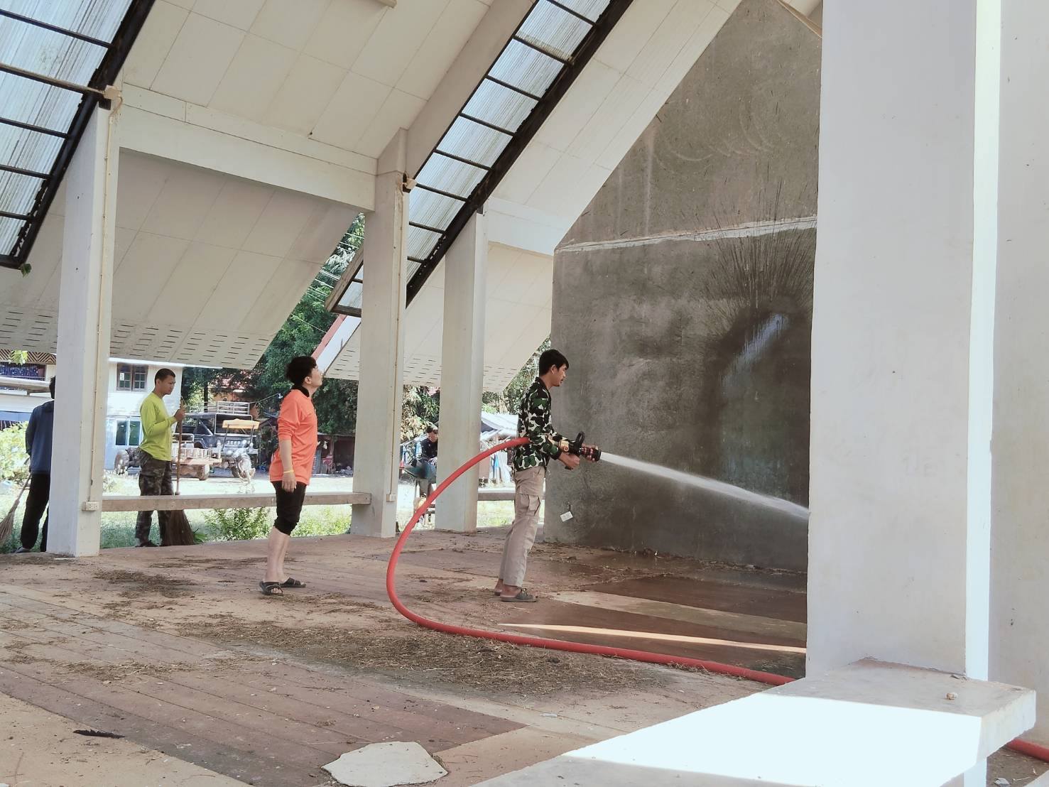 ดำเนินการล้างทำความสะอาดศาลาวัดบ้านอ่างตะแบก