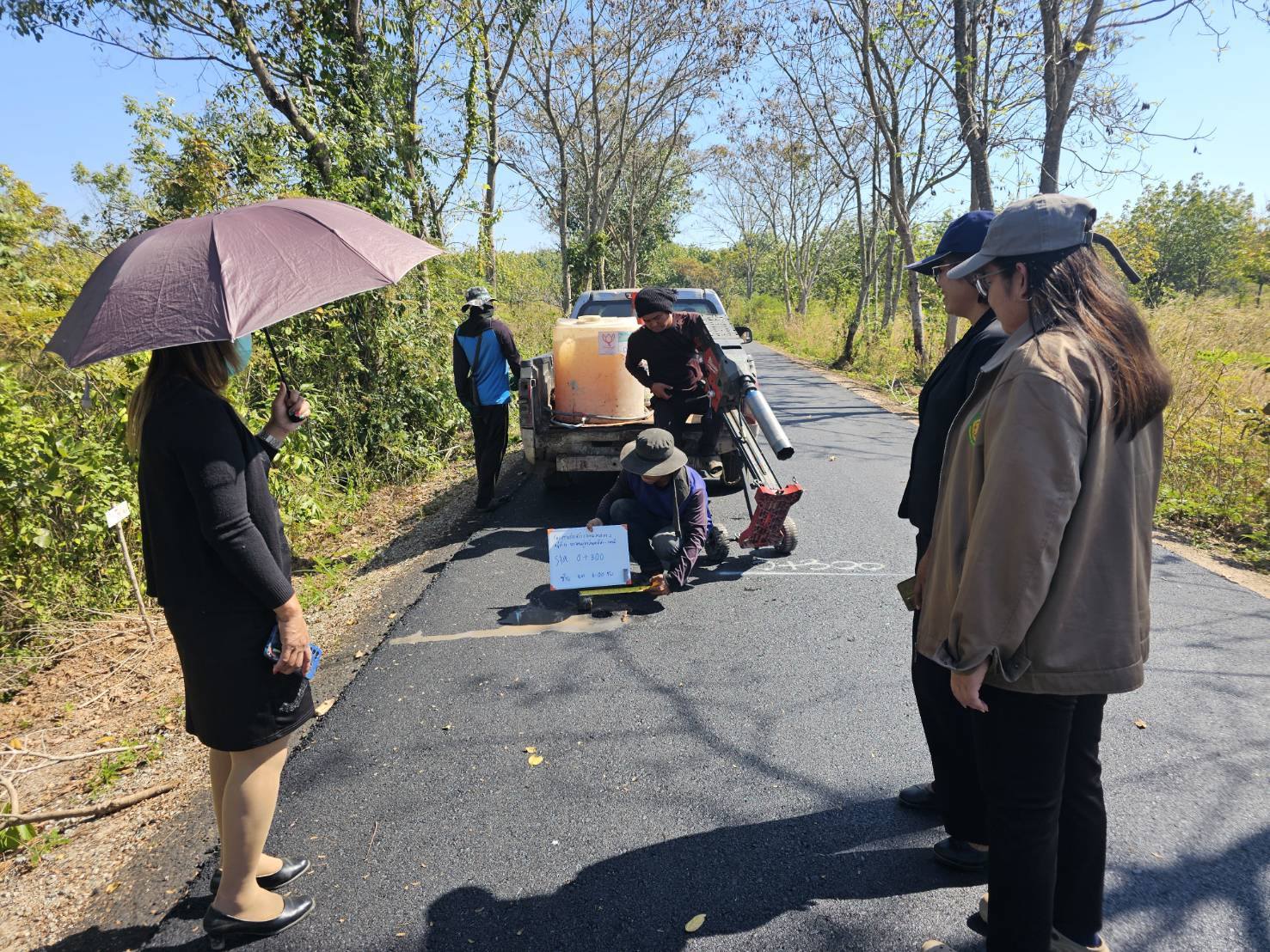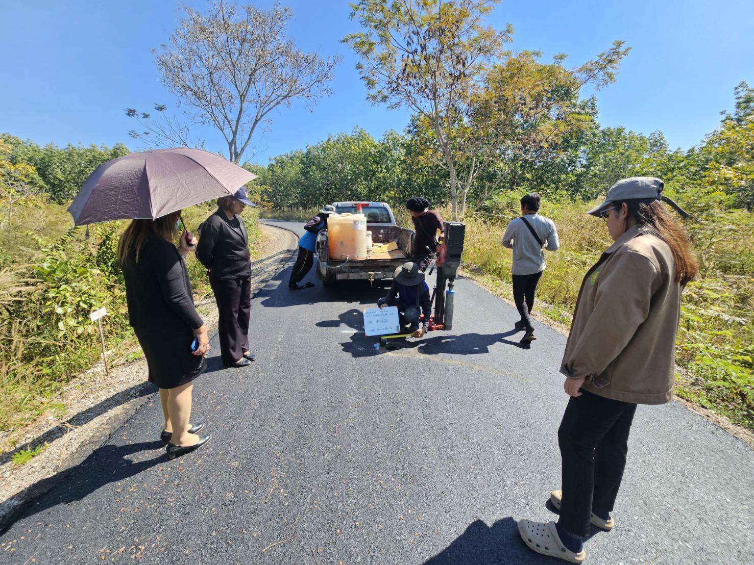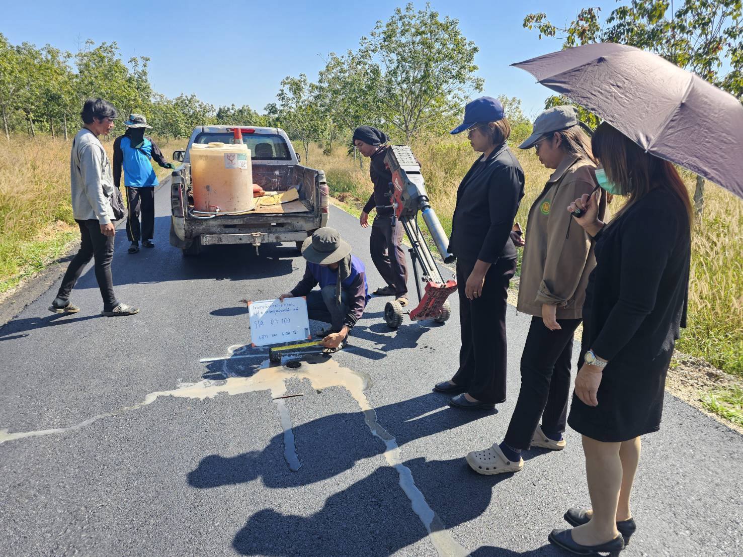 ลงพื้นที่ดำเนินการสุ่มตรวจความหนาของถนนลาดยาง หมู่ที่ 11 บ้านหนองย่ากล่อม