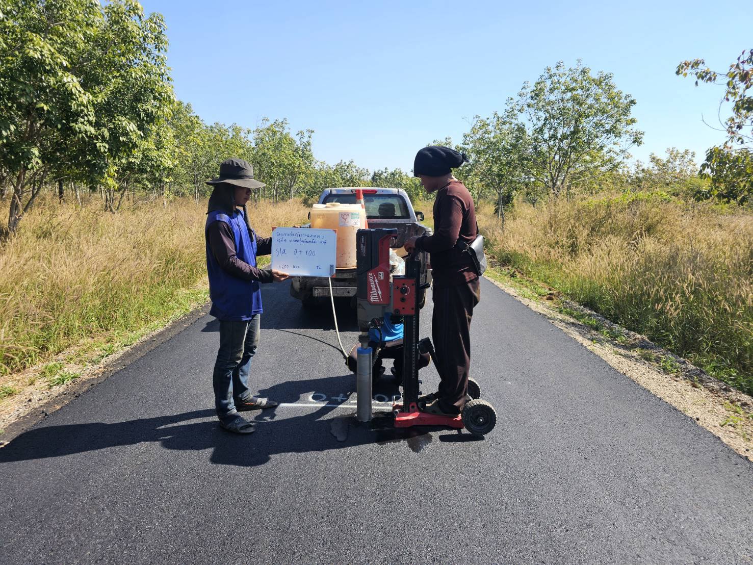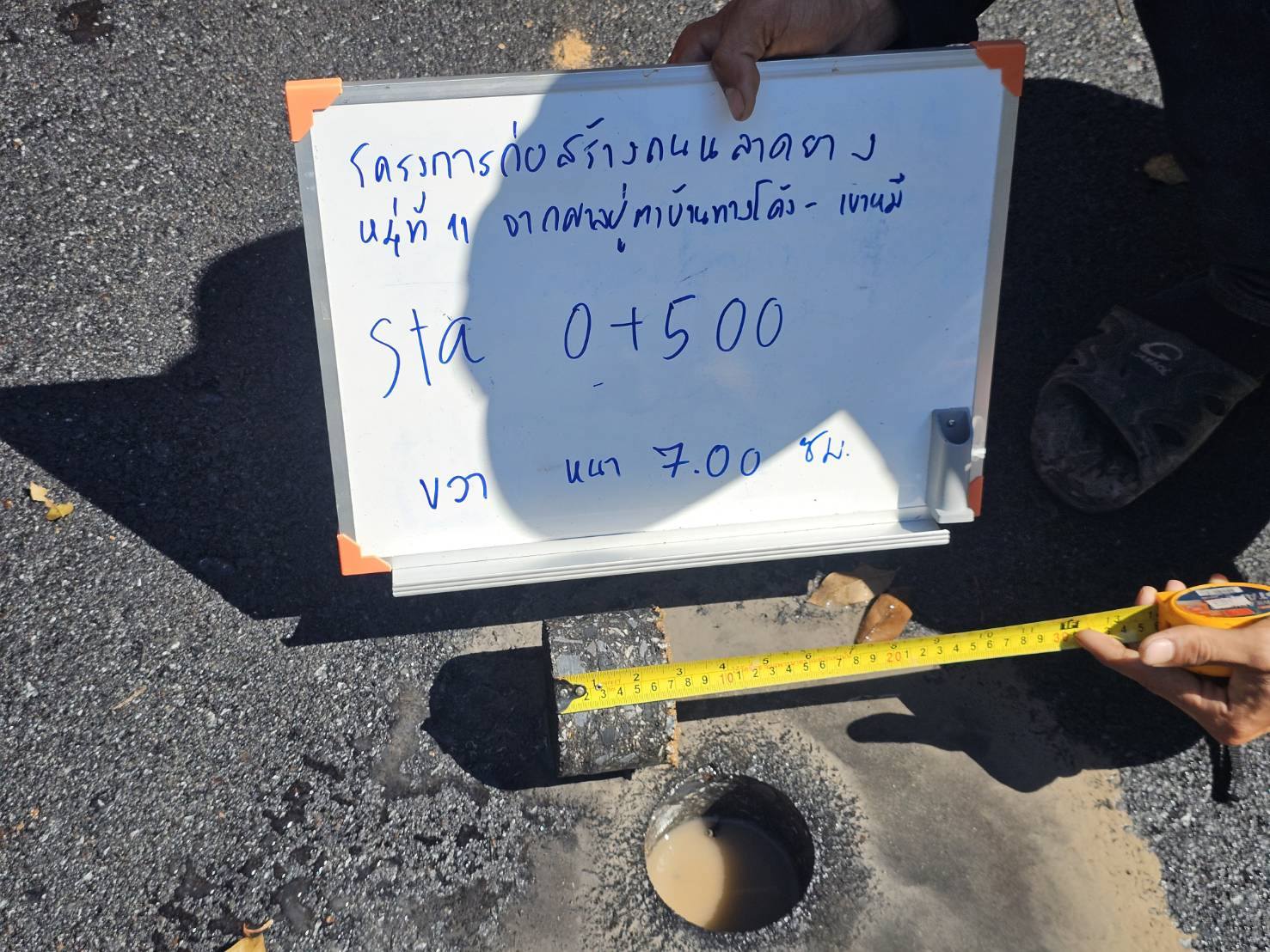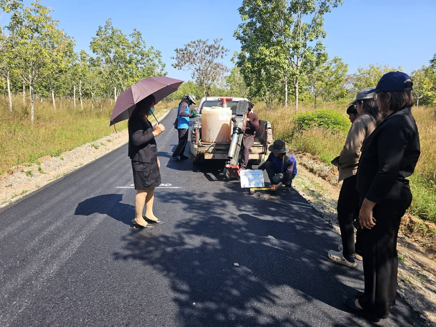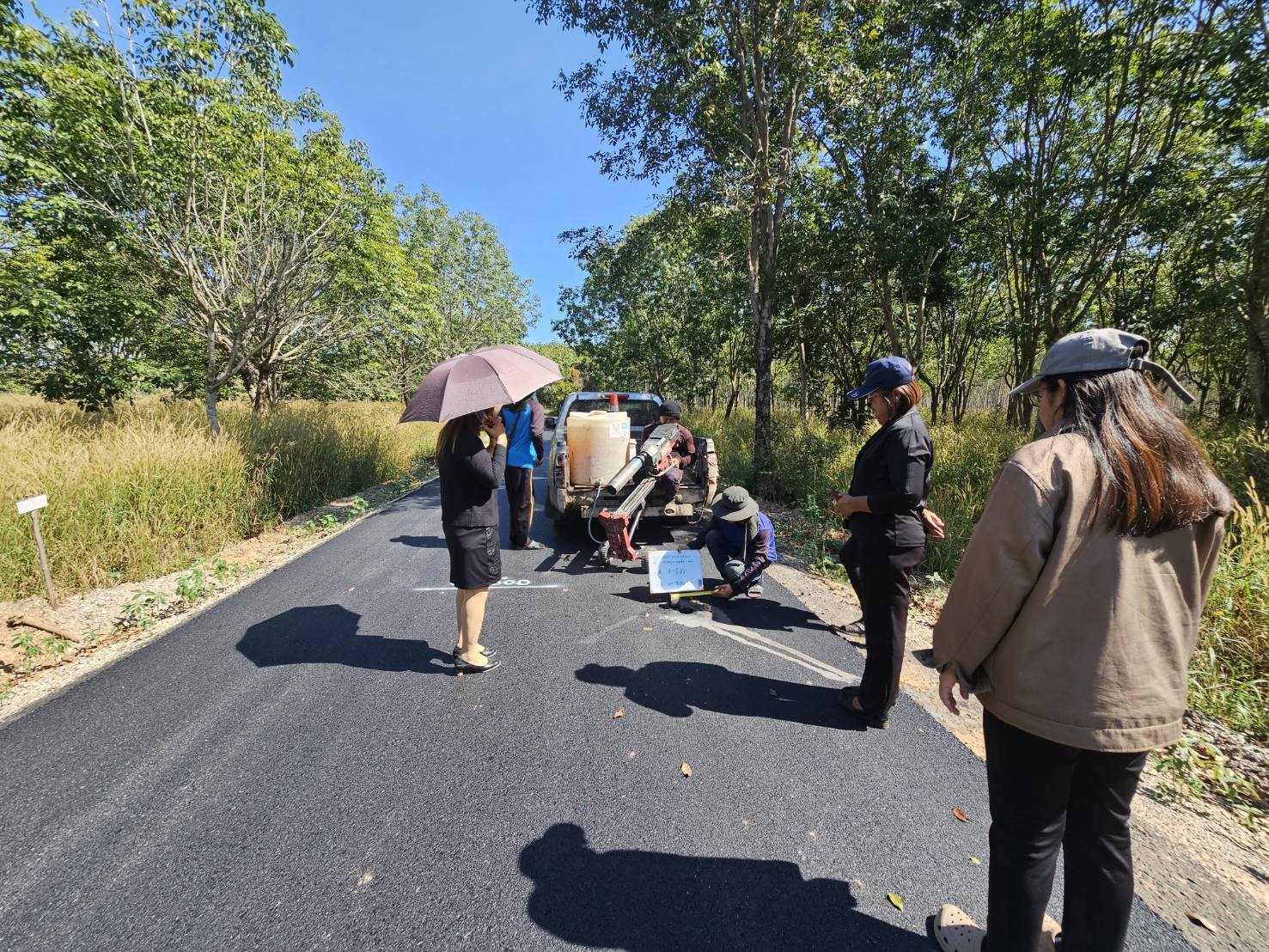 ลงพื้นที่ดำเนินการสุ่มตรวจความหนาของถนนลาดยาง หมู่ที่ 11 บ้านหนองย่ากล่อม