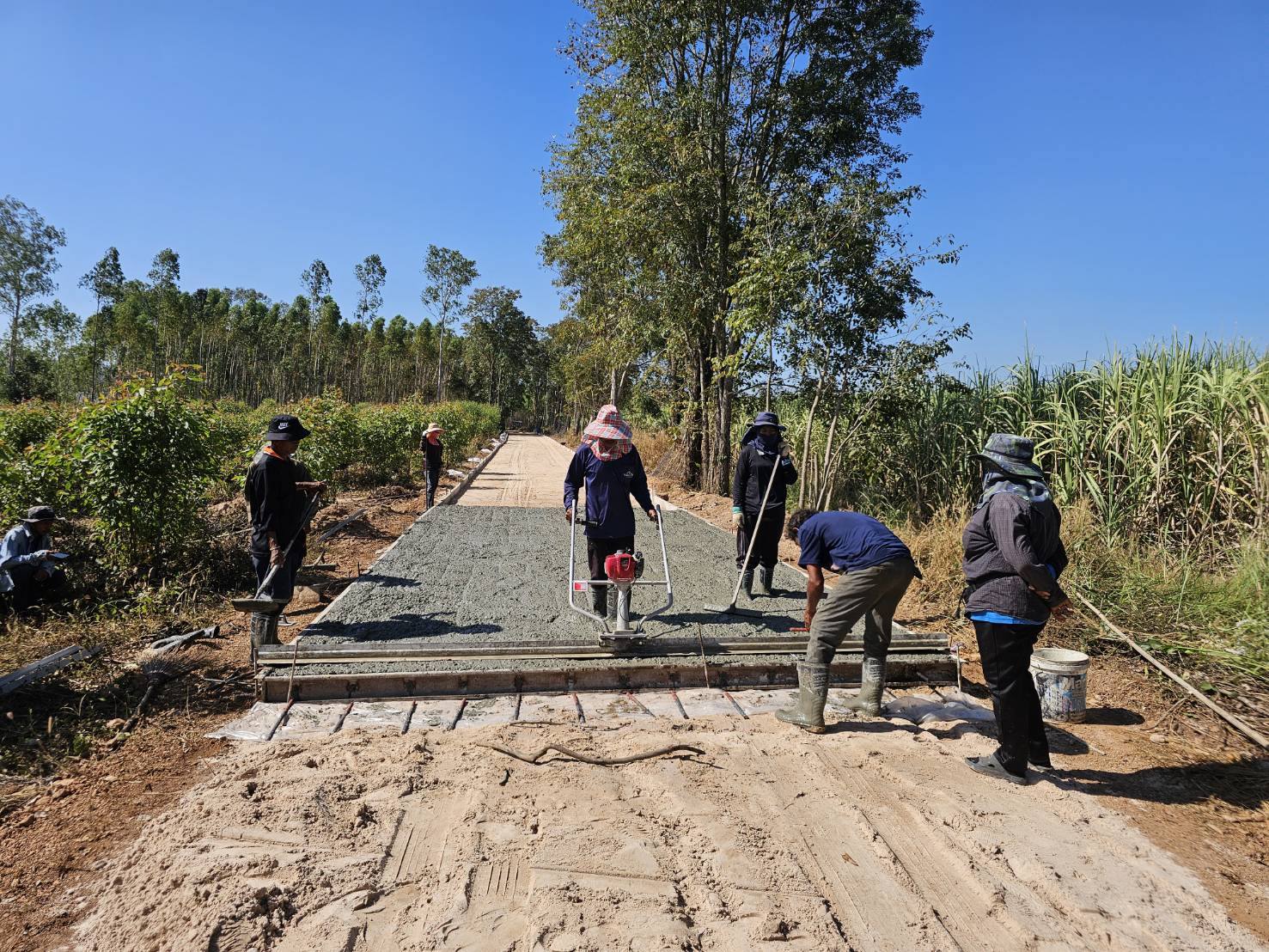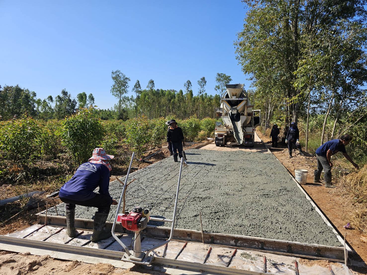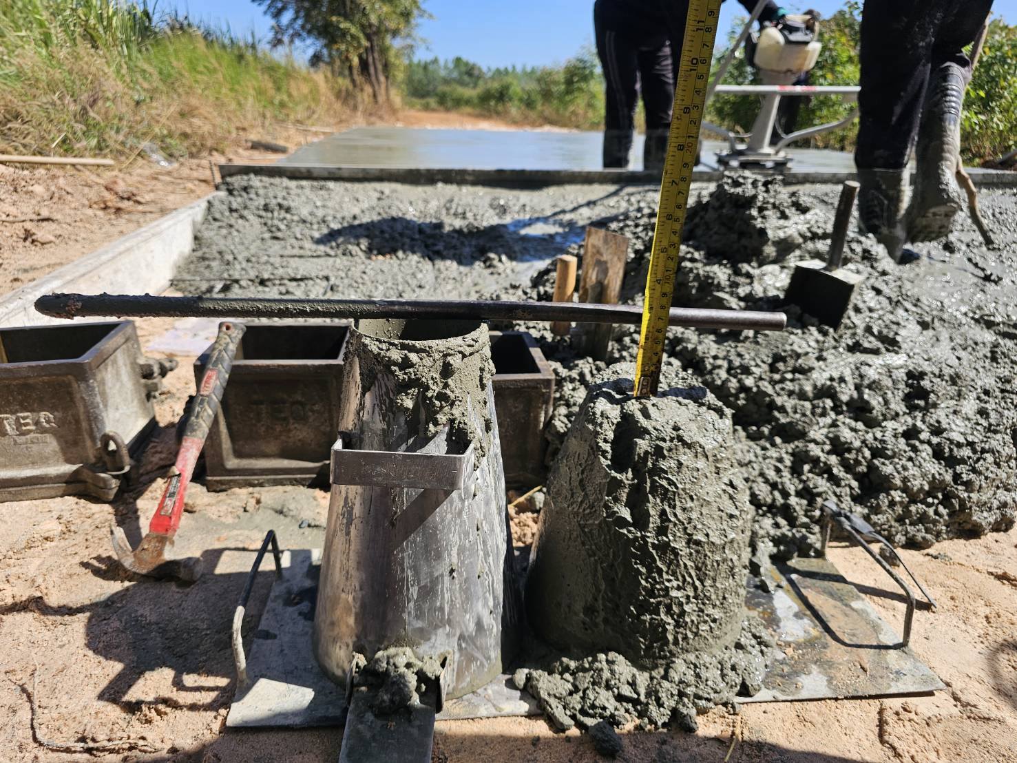 ตรวจสอบการดำเนินงาน การเทถนนคอนกรีตเสริมเหล็ก หมู่ที่ 15 บ้านทางโค้ง