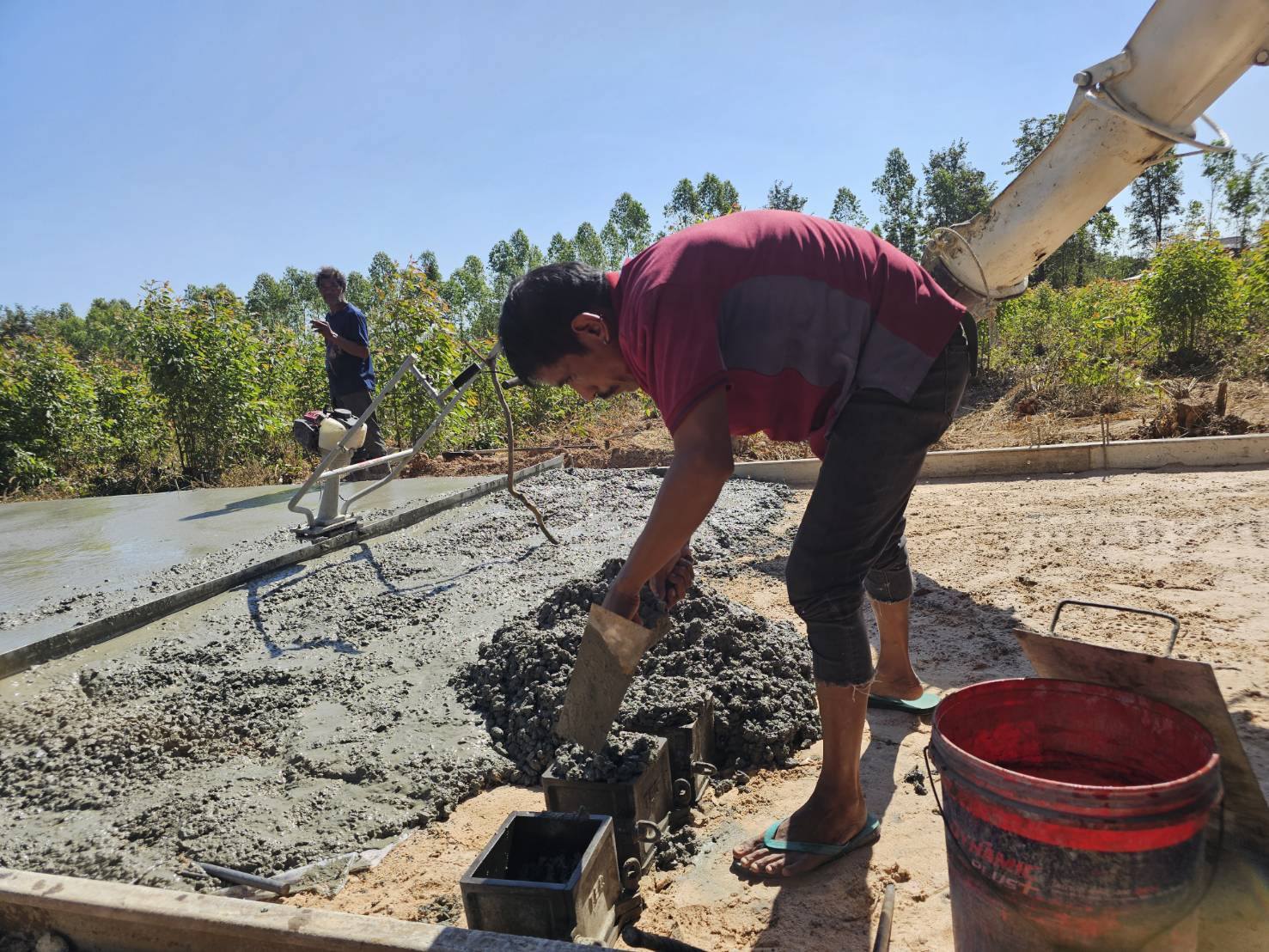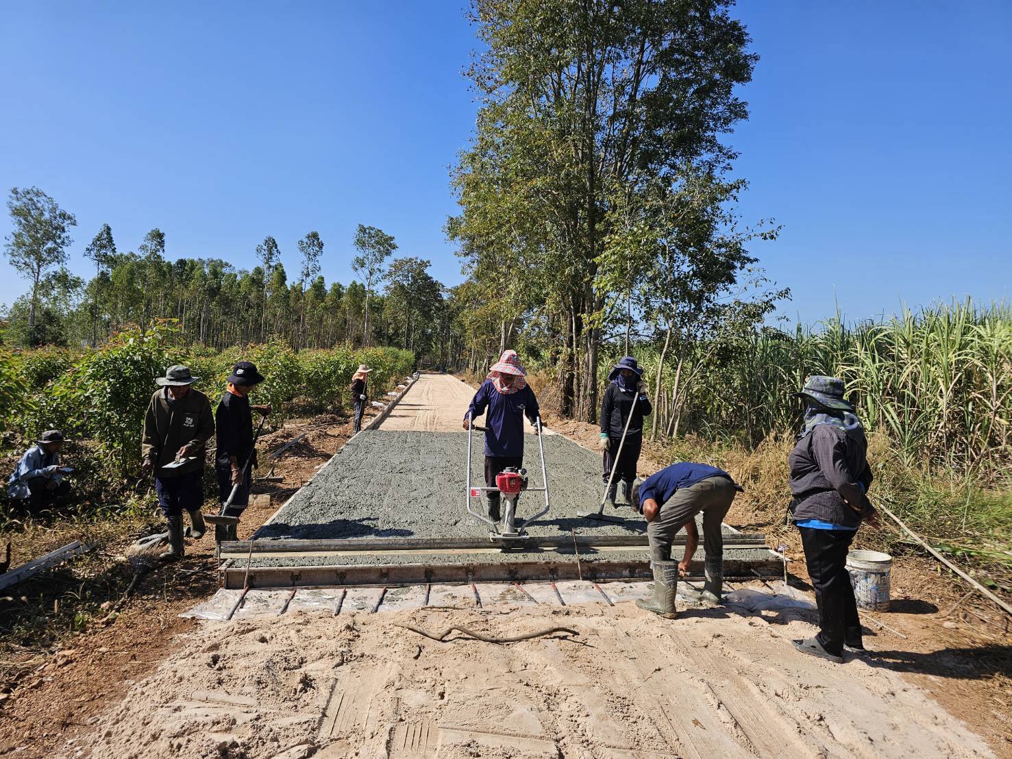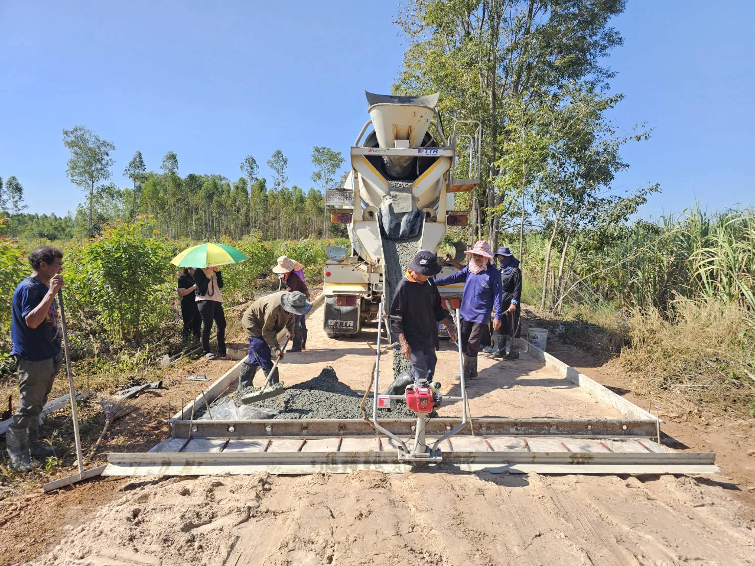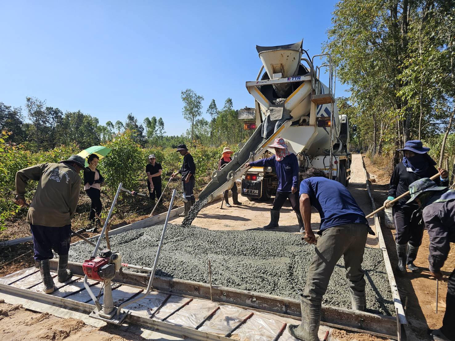 ตรวจสอบการดำเนินงาน การเทถนนคอนกรีตเสริมเหล็ก หมู่ที่ 15 บ้านทางโค้ง