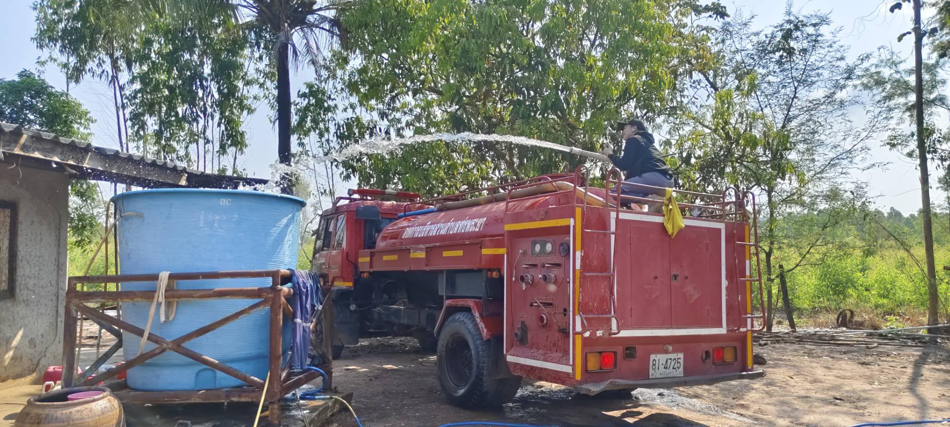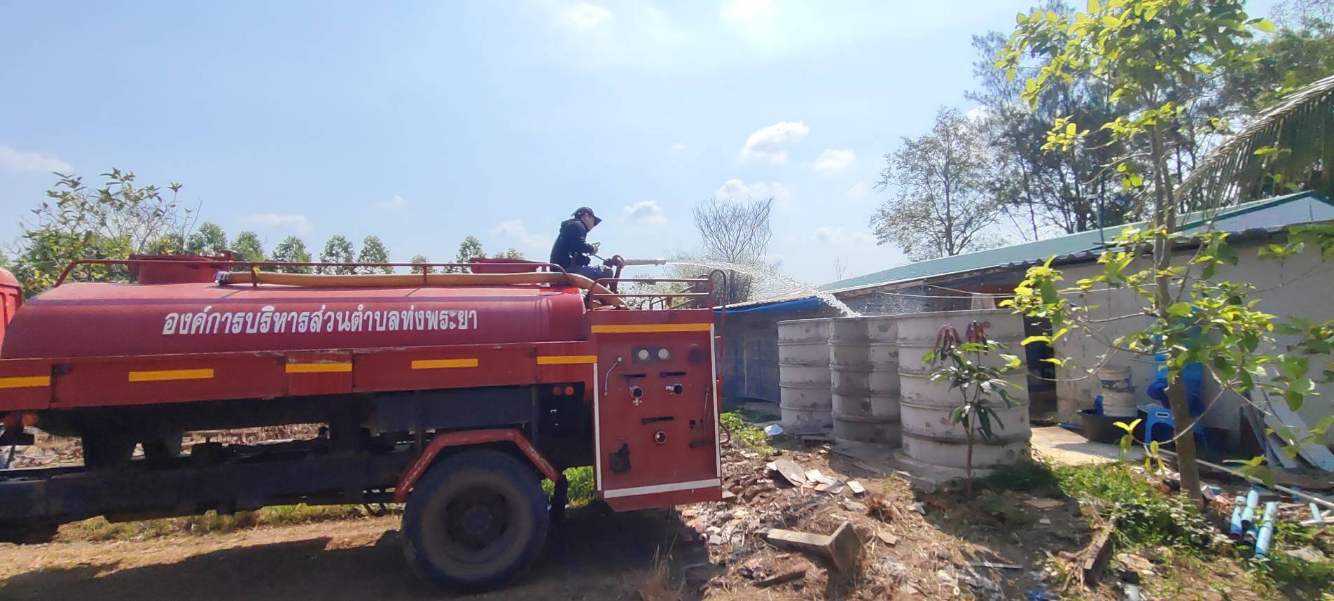 งานป้องกันและบรรเทาสาธารณภัย องค์การบริหารส่วนตำบลทุ่งพระยา ลงพื้นที่ดำเนินการส่งน้ำอุปโภค–บริโภคให้แก่ประชาชน หมู่ที่ 7 บ้านโป่งสา