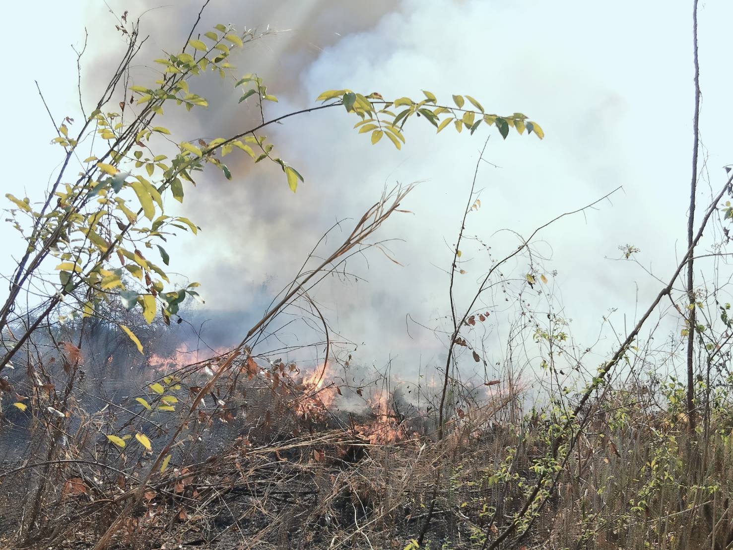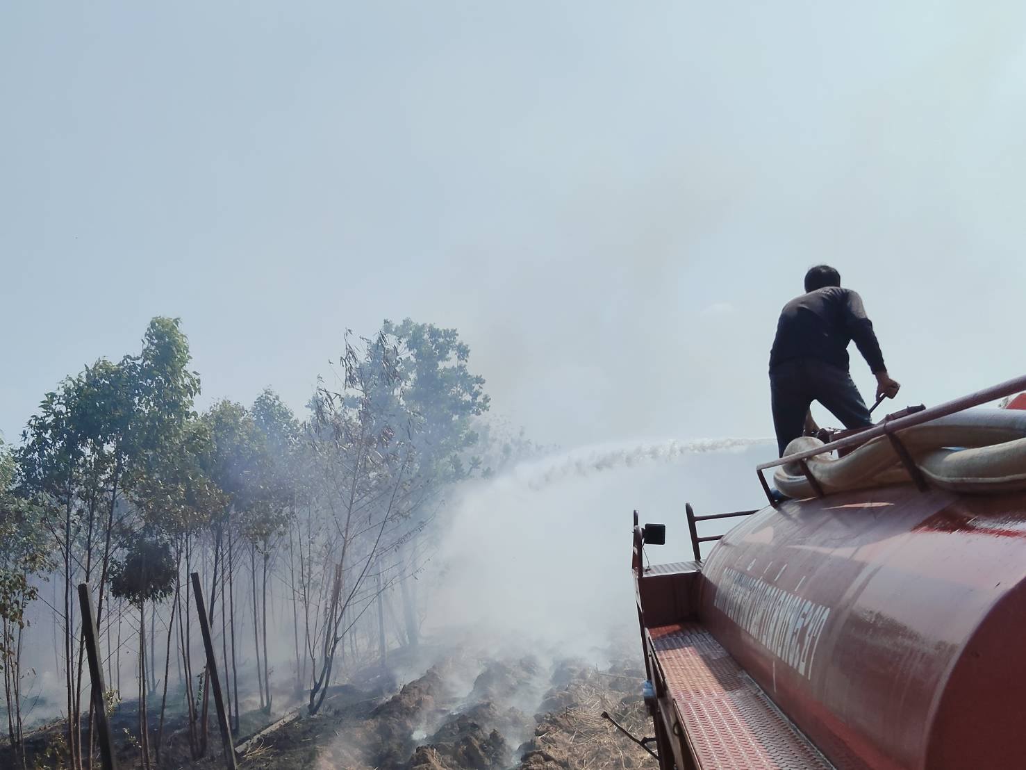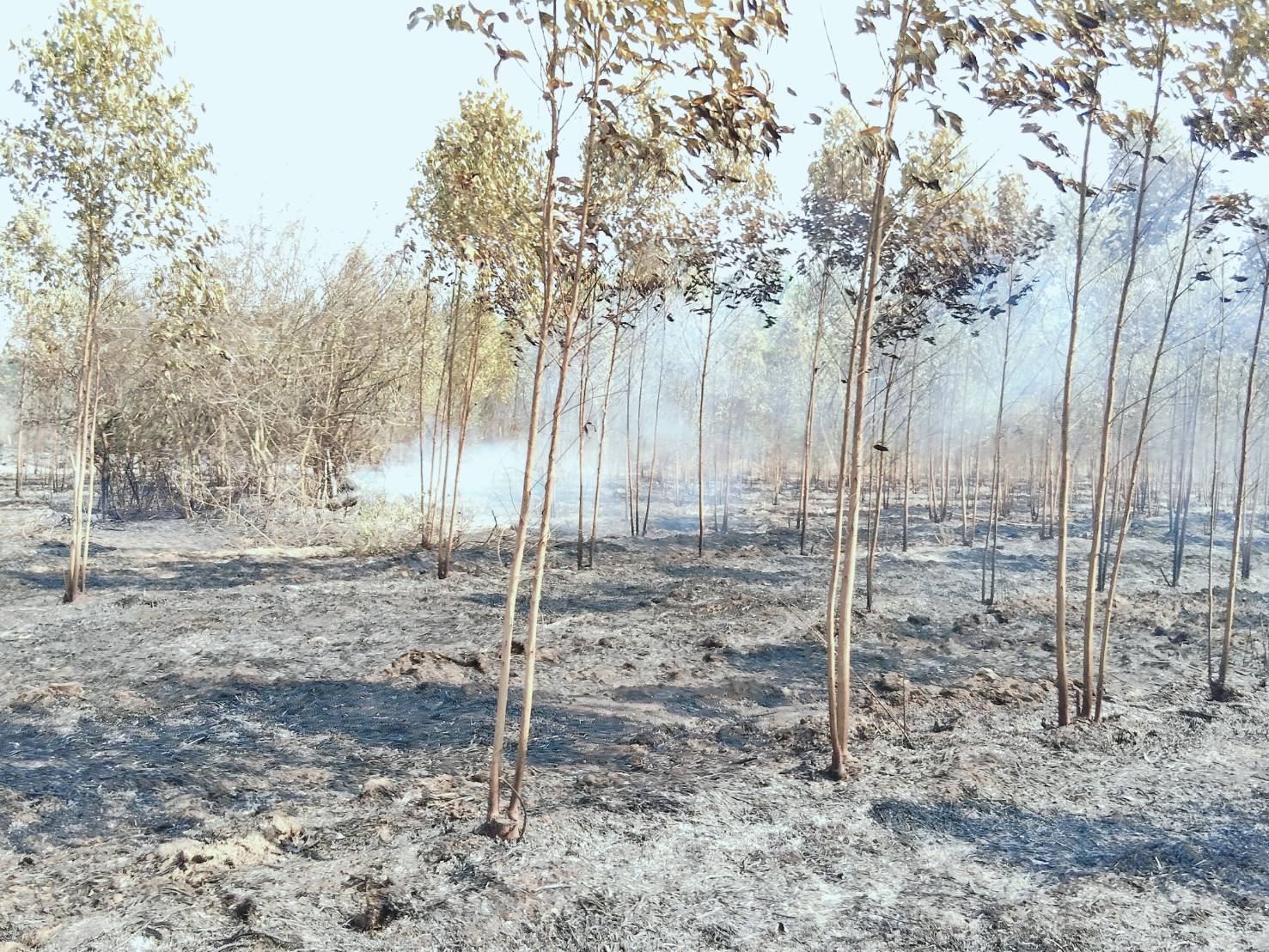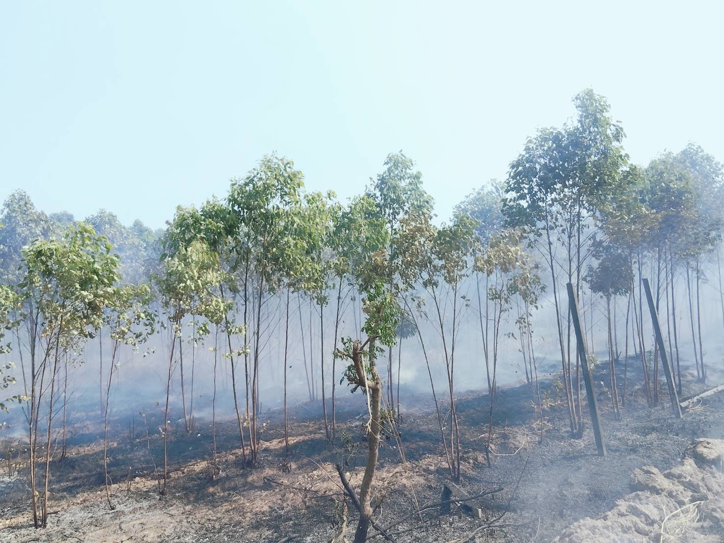 ลงพื้นที่ตรวจสอบเหตุเพลิงไหม้ หมู่ที่ 1 บ้านอ่างตะแบก จากการตรวจสอบพบเป็นเหตุเพลิงไหม้ป่ายูคาลิปตัส