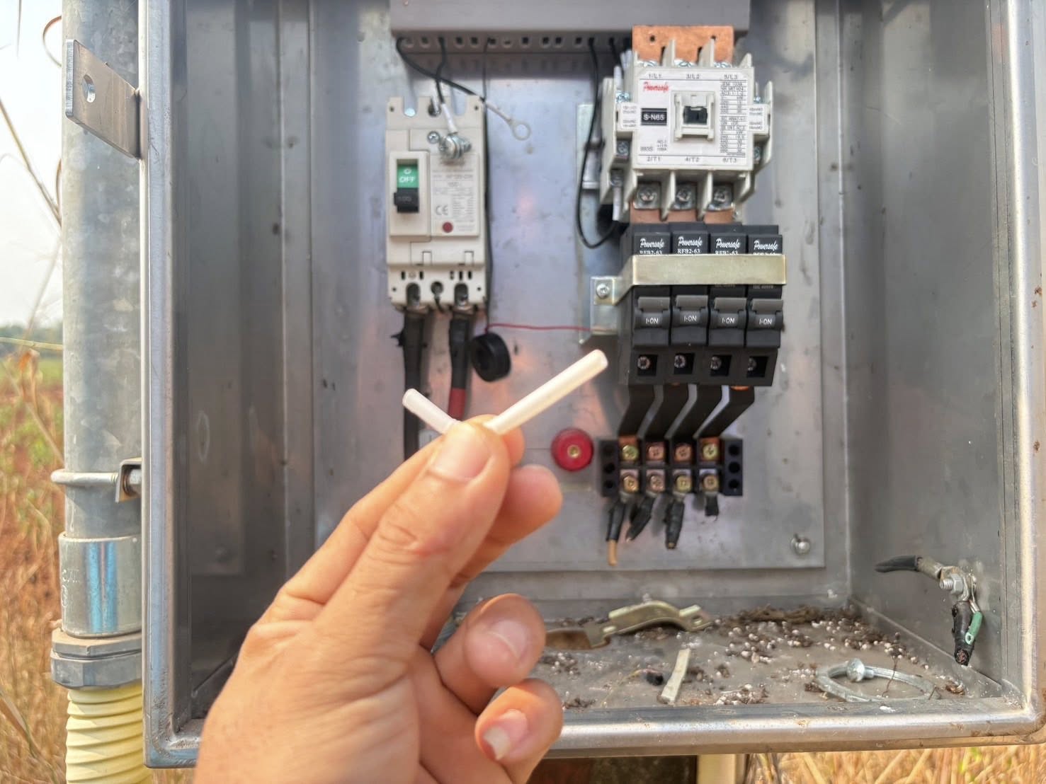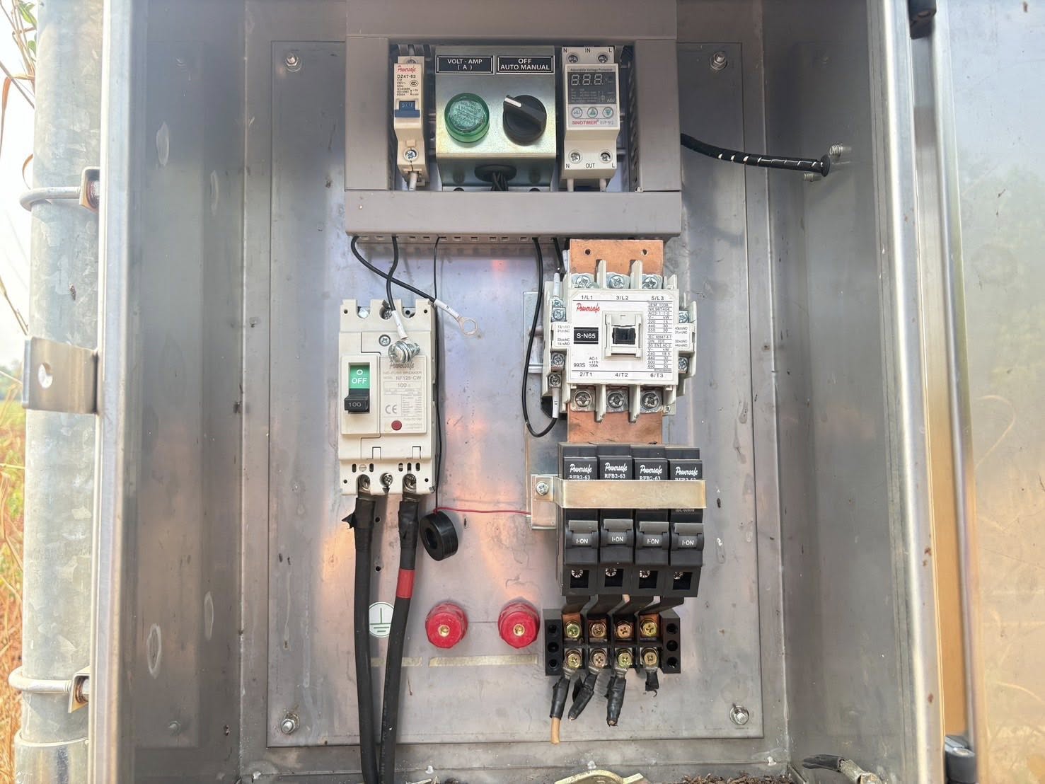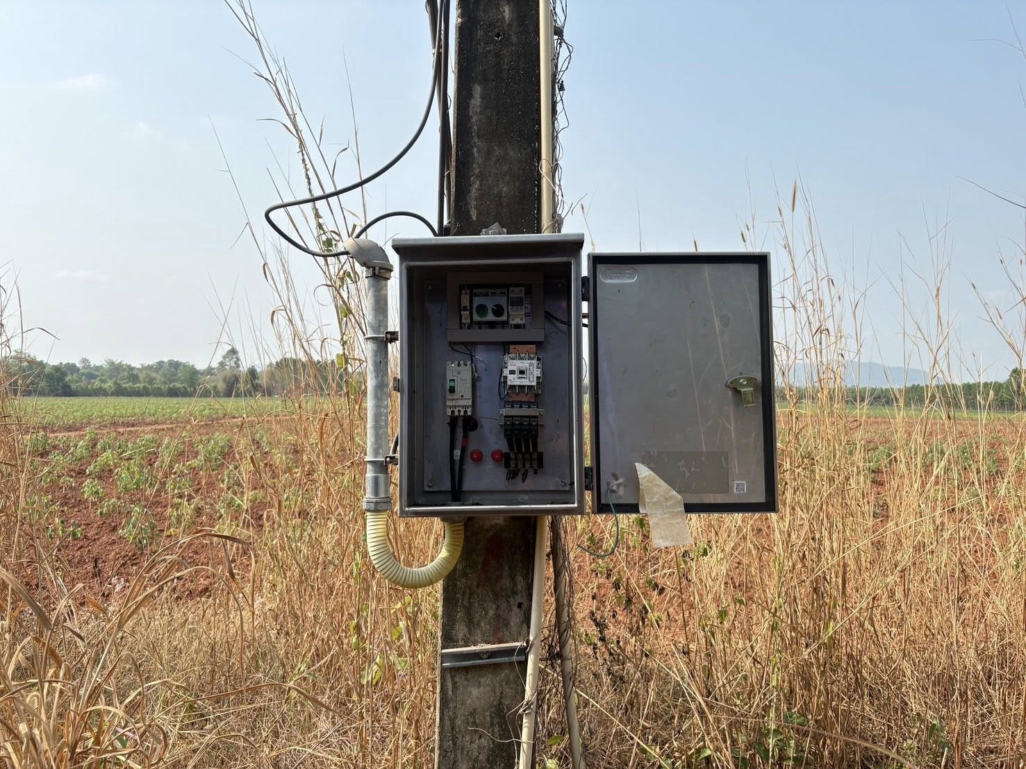ลงพื้นที่ดำเนินการซ่อมแซมไฟฟ้าส่องสว่างสาธารณะ ตรวจดูตู้ควบคุมไฟและสายไฟ
