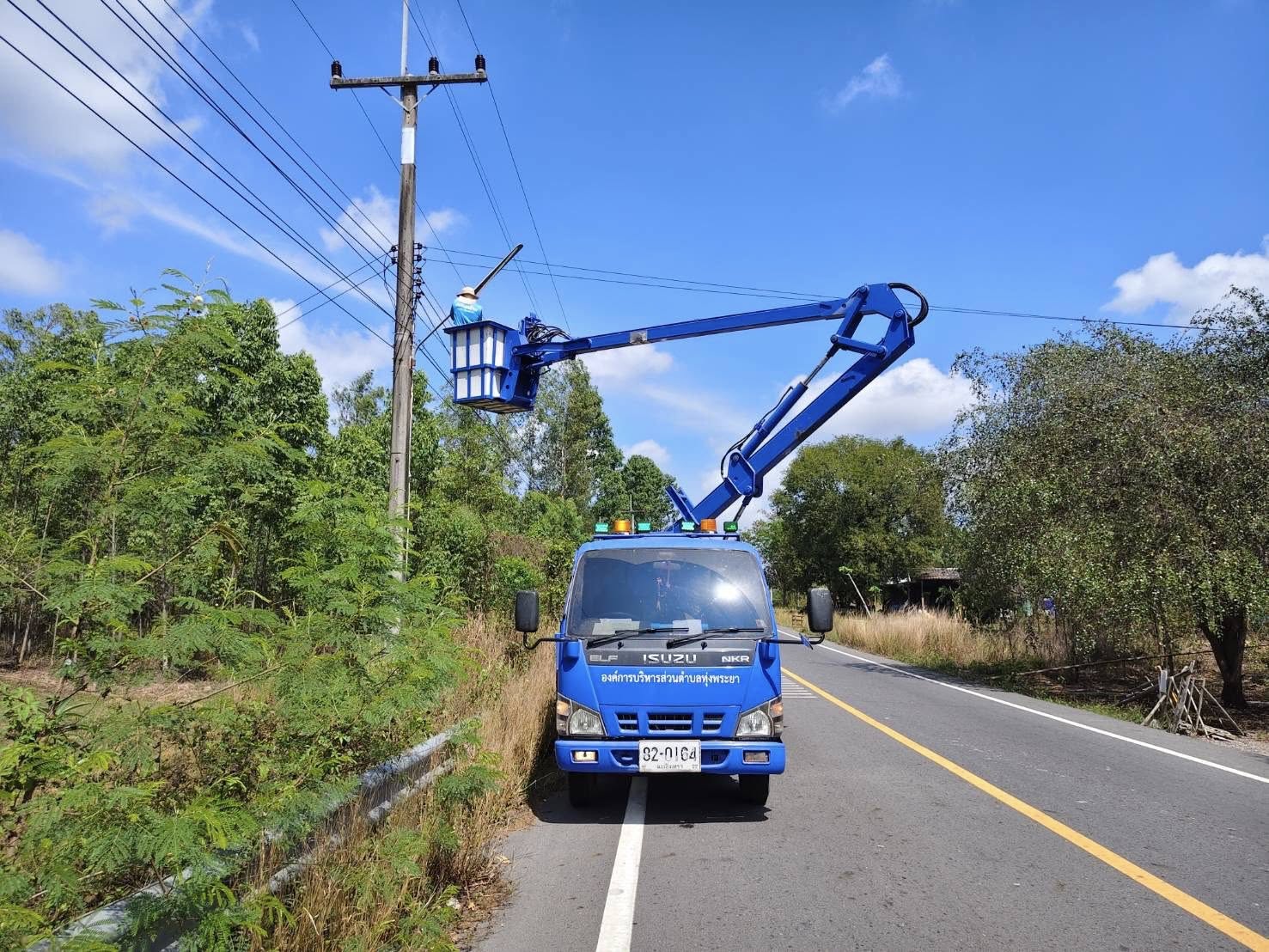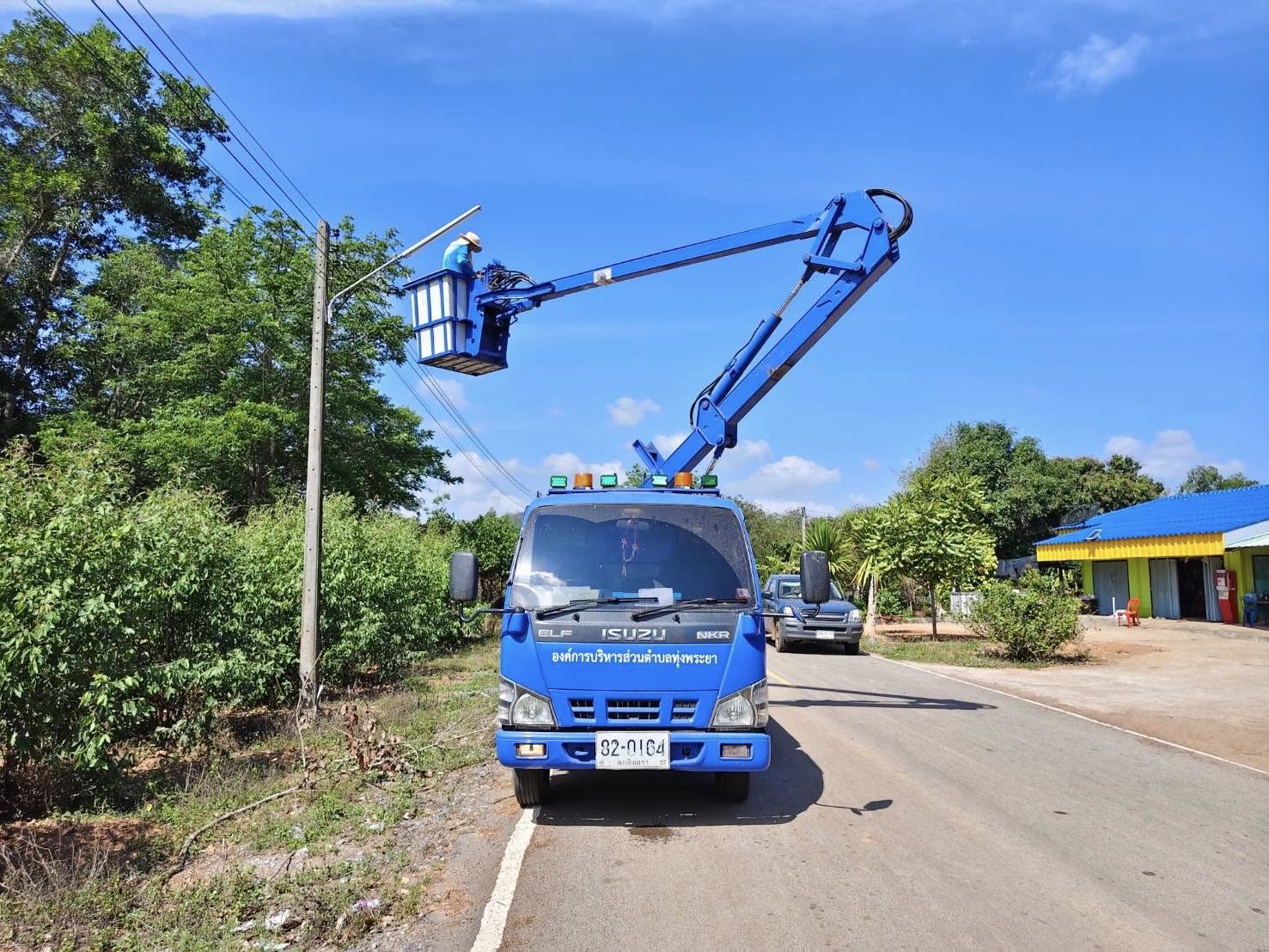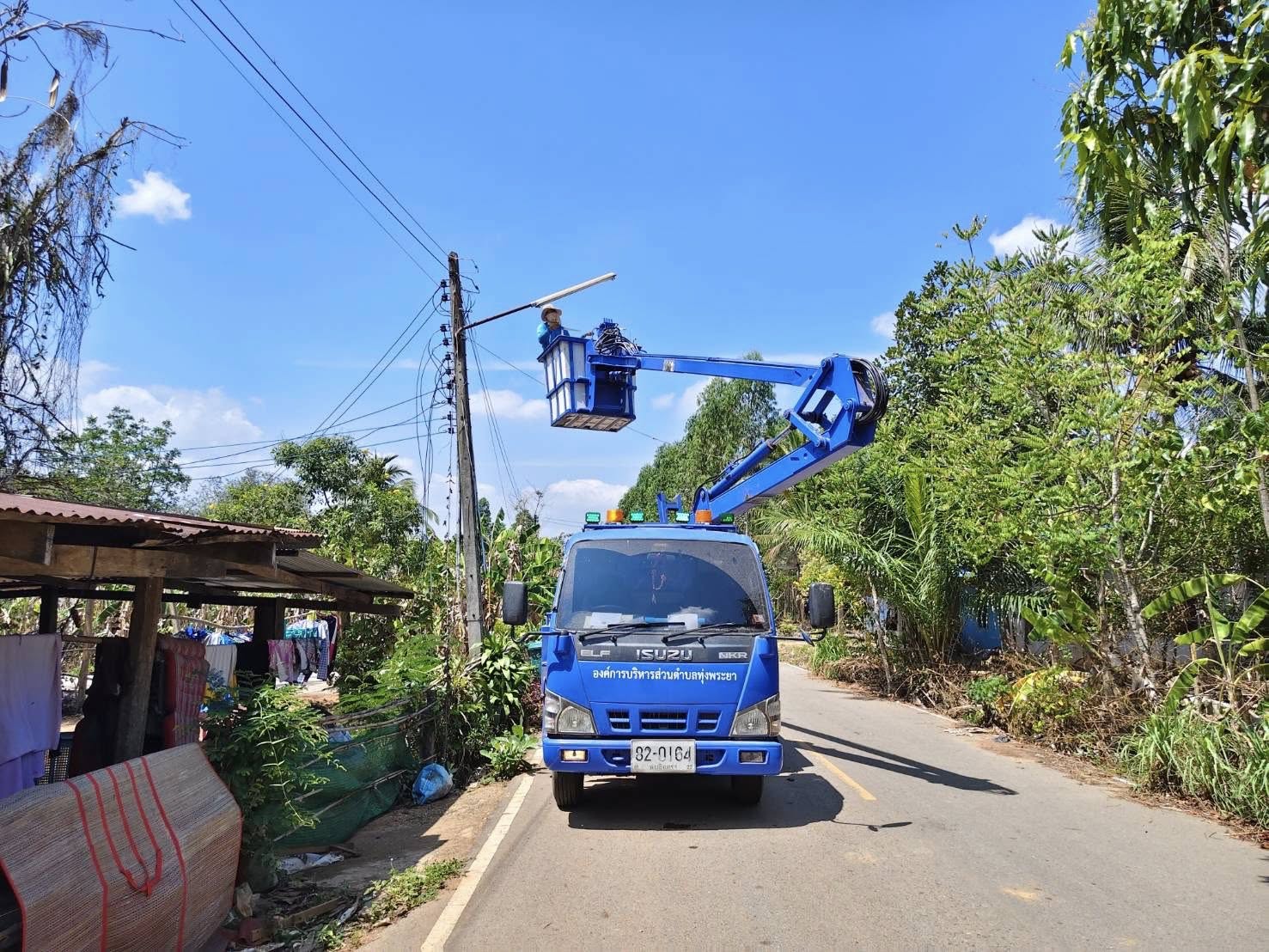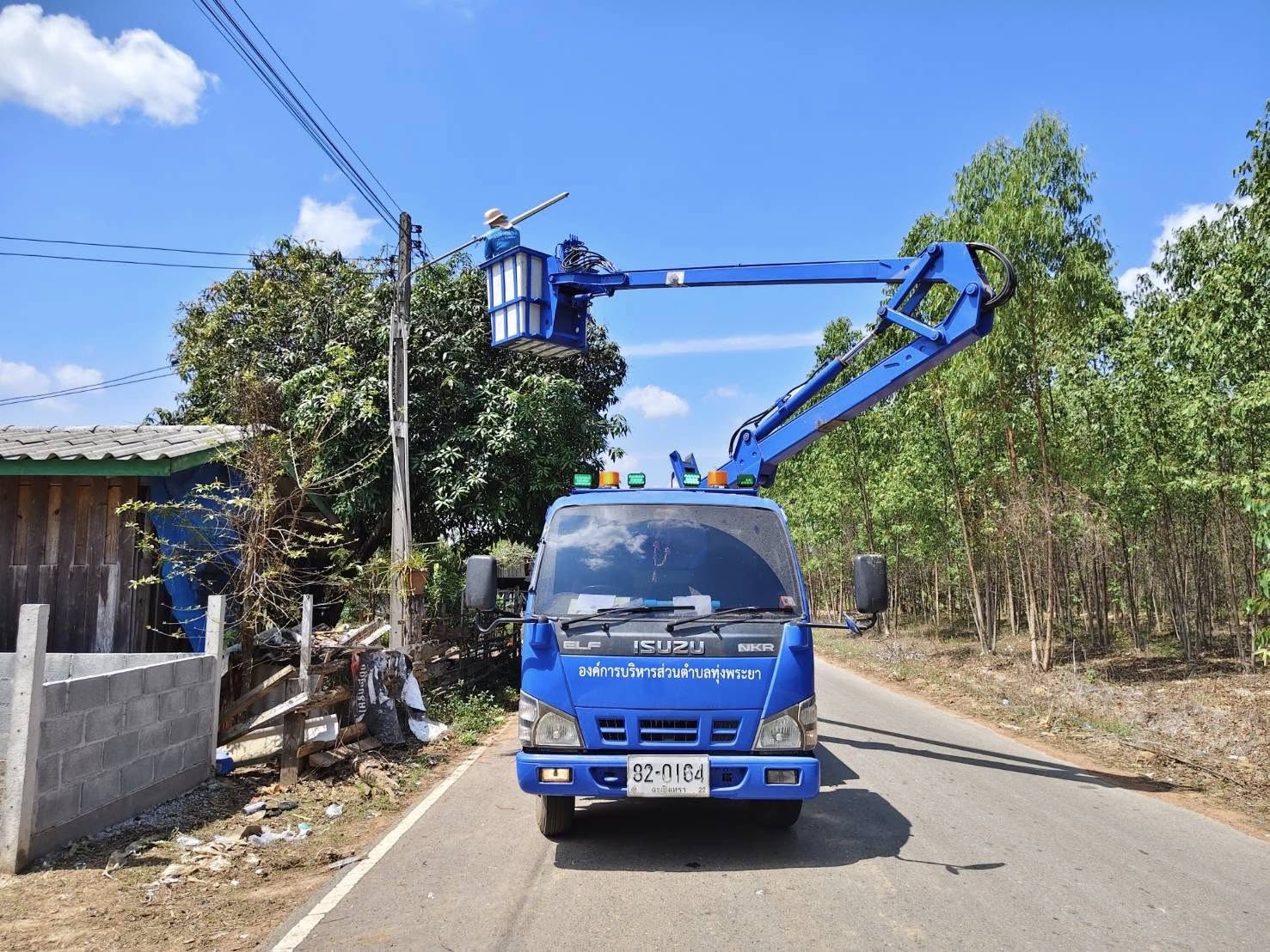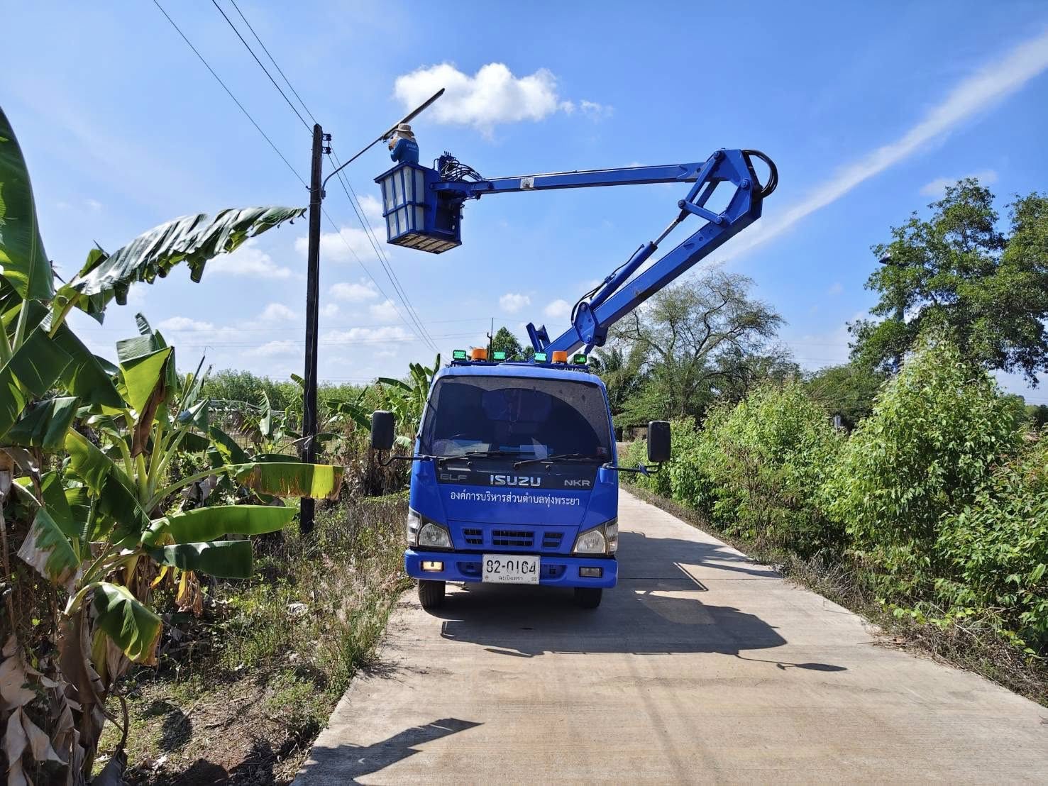 ลงพื้นที่ดำเนินการซ่อมแซมไฟฟ้าส่องสว่างสาธารณะ บริเวณพื้นที่ในตำบลทุ่งพระยา