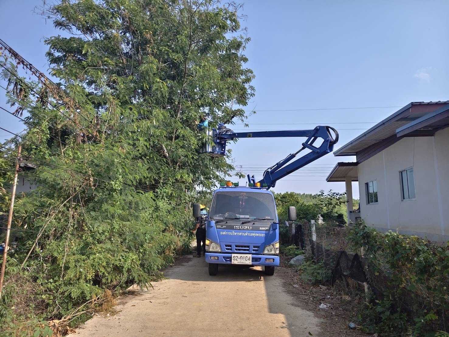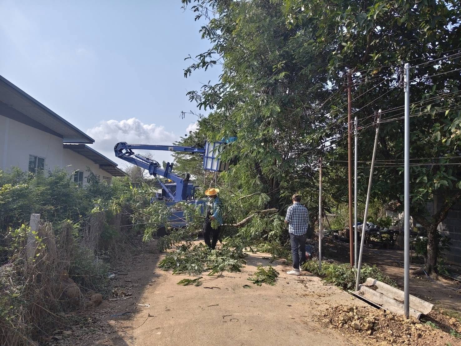 ตัดแต่งกิ่งไม้ที่กีดขวางสายไฟฟ้า