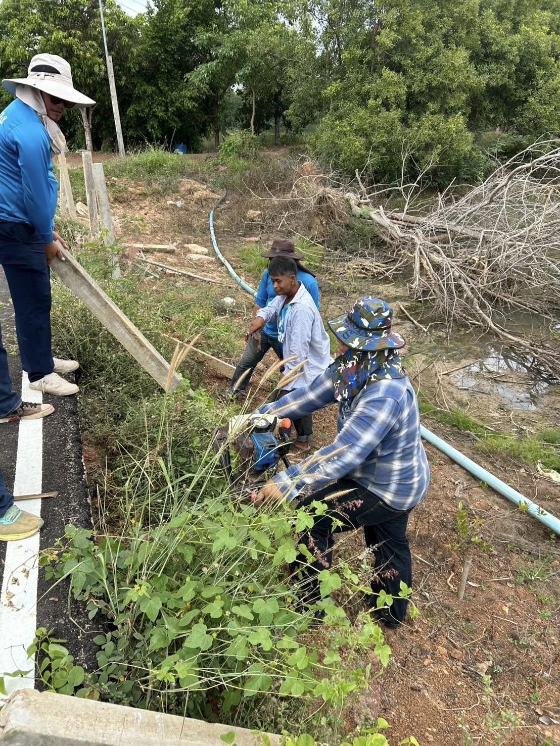 กองช่างดำเนินการปักเสาและจัดทำแนวกันตกบริเวณสะพาน
