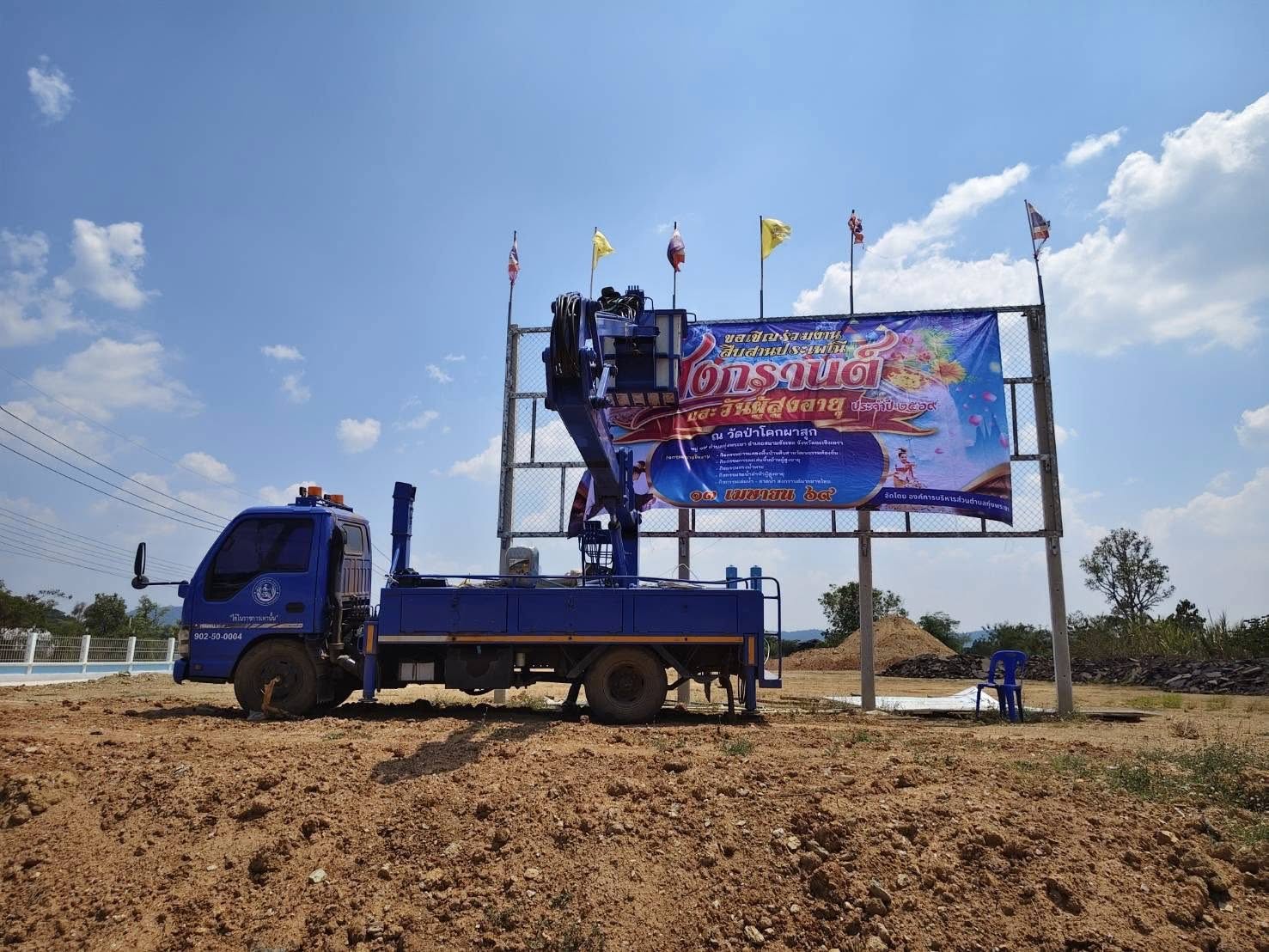 ดำเนินการติดตั้งป้ายประชาสัมพันธ์งานสืบสานประเพณีสงกรานต์และวันผู้สูงอายุ ประจำปี พ.ศ. ๒๕๖๙