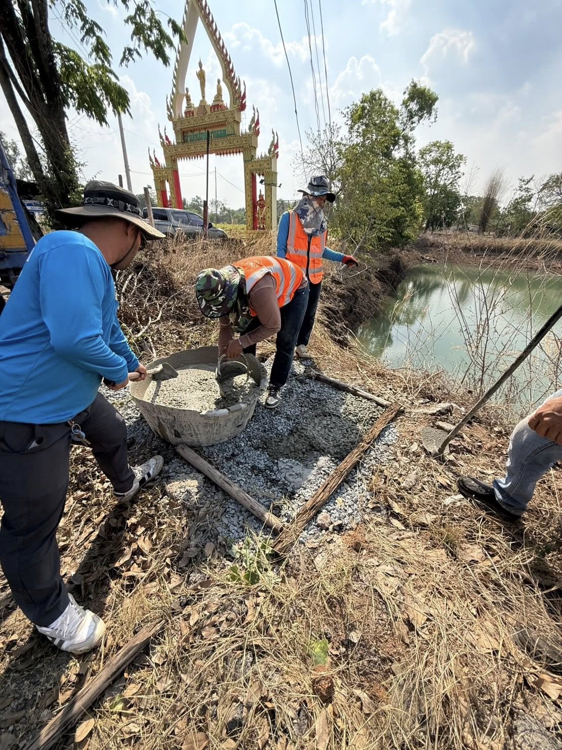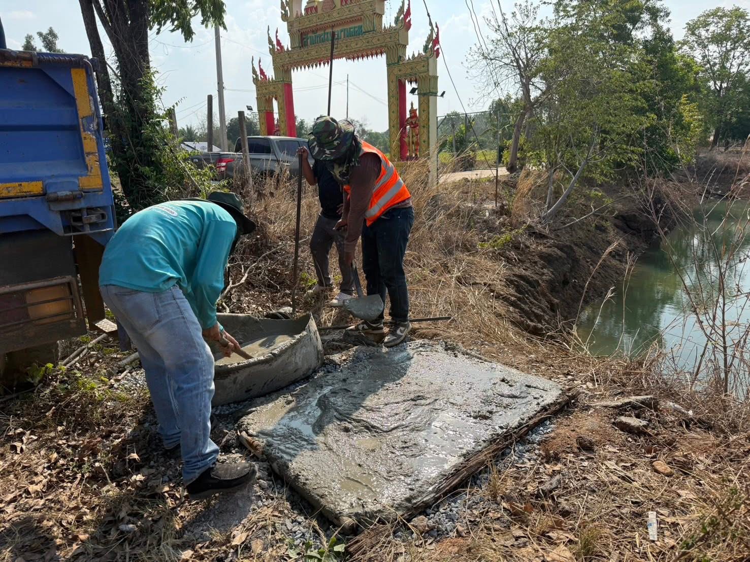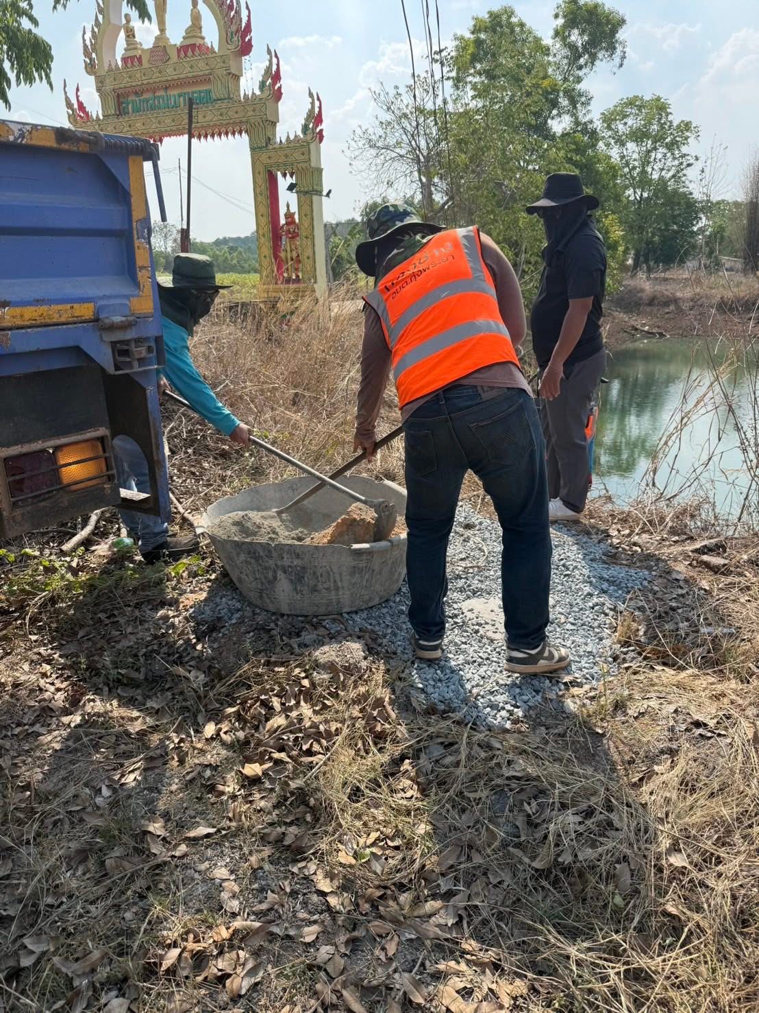ดำเนินการจัดทำฐานรองรับโรงสูบน้ำสำหรับรถบรรทุกน้ำของงานป้องกันและบรรเทาสาธารณภัย